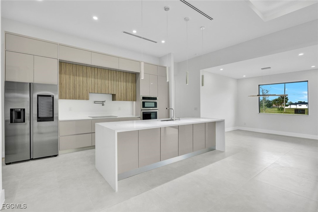 Beautiful New Construction Home in Cape Coral! This residence features 3 bedrooms, 3 bathrooms, plus a den, with a double car garage and a stylish modern outdoor kitchen perfect for entertaining. Inside, enjoy a spacious master bedroom with walk-in closets, a sleek contemporary design, and plenty of natural lighting throughout. The kitchen is highlighted with quartz countertops, while the bathrooms showcase floating cabinets for a modern touch. The home is also equipped with surround sound inside and on the lanai, creating the ideal atmosphere for relaxing or entertaining. With plenty of space to build your dream pool, this property offers both style and functionality in one of Cape Coral’s fast-growing areas.