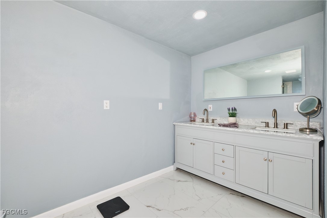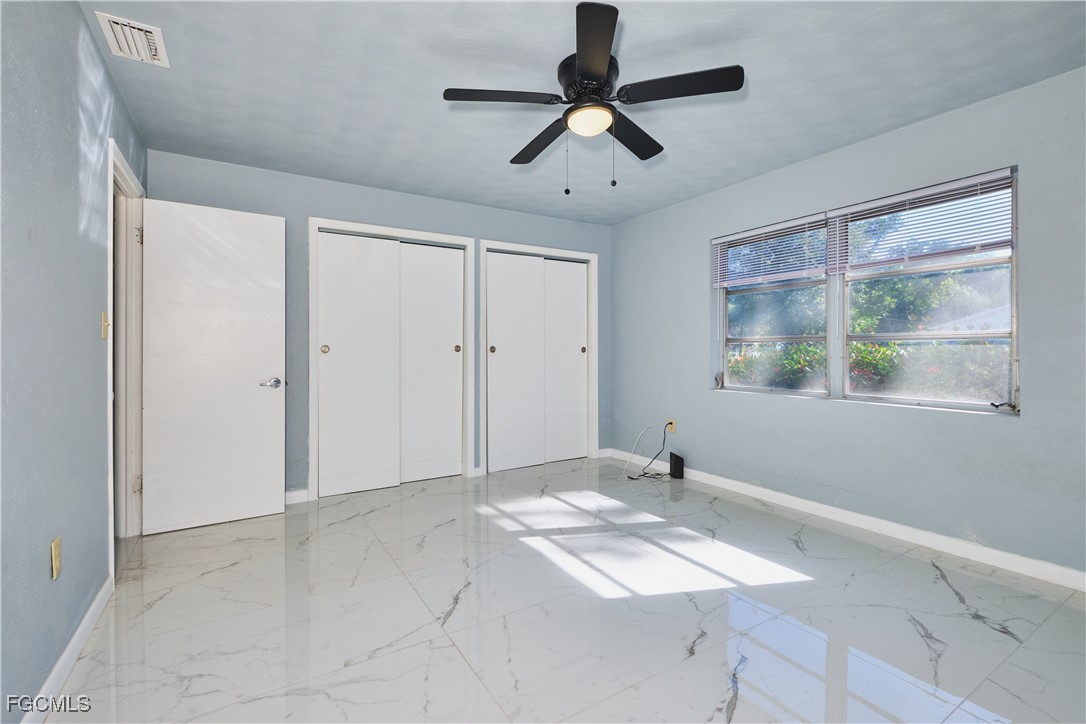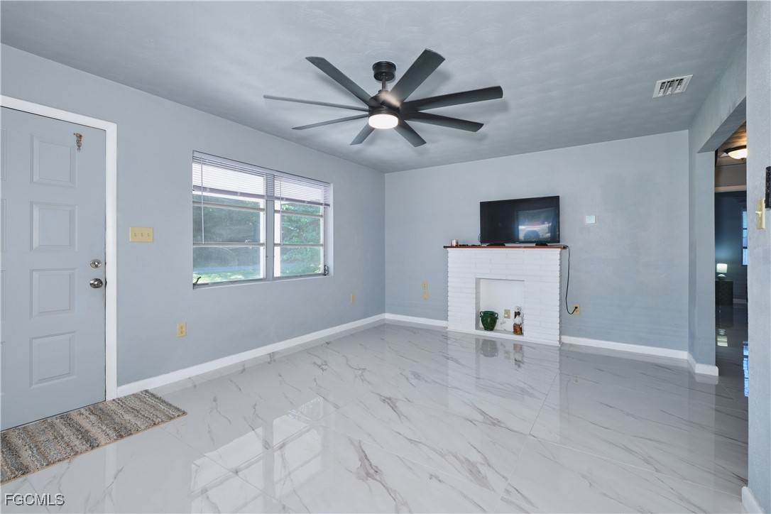 You're going to love this beautifully updated 3 bedroom, 2 bathroom, concrete block home located in Fort Myers where there's no HOA and no flood insurance required! From the time you walk in the front door, you'll appreciate all the attention to detail and many updates of this home including gorgeous large porcelain tiled floors, freshly painted interior and exterior, cute kitchen, and huge master bathroom (162 sq.ft.). The fully fenced backyard has an above-ground pool with a new liner, perfect for your children and pets. There's a laundry/storage room attached to the carport and a shed for additional storage. No rental restrictions so it's perfect for an investment property. HVAC 2022. Water Heater 2023. New lighting fixtures inside and outside. New ceiling fans throughout. Close to downtown, shopping, restaurants, and renown beaches. This home is clean, bright, and move-in ready! Schedule a showing today.