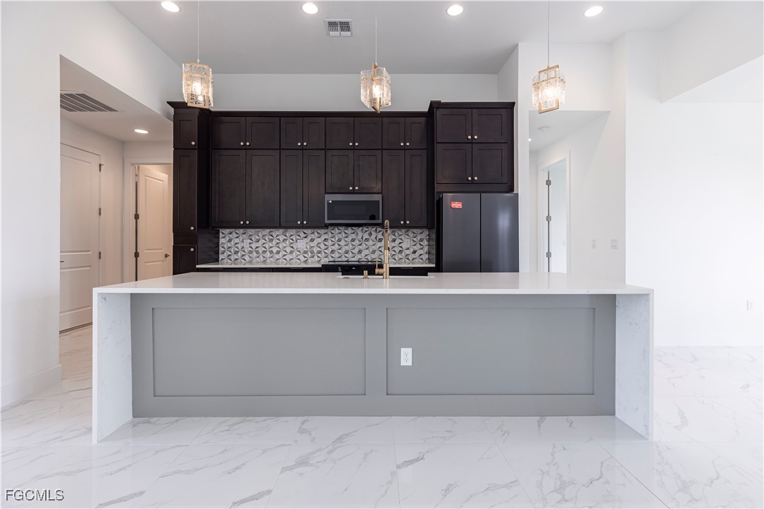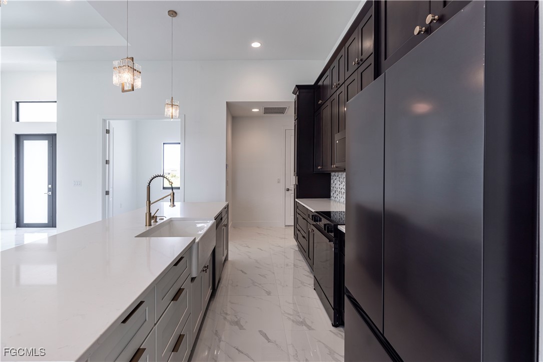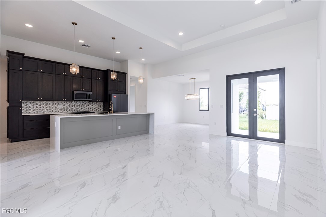 Welcome to this stunning 3-bedroom, 1-den, 2-bathroom home offering 1,732 square feet of thoughtfully designed living space. Step through impressive 8’ impact-rated double front doors into a welcoming foyer that leads into the spacious open floor plan. The bright luxurious living space is perfect for entertaining and everyday living! The kitchen boasts 9-4' Plywood cabinetry, a large center island with quartz countertops and waterfall quartz edges, complete with black on black matte finish Samsung appliances. Soaring 13’ ceilings in the great room and 9’4” to 12’ ceilings throughout the home create an open airy feel. The flexible layout includes a 4th bedroom that can easily serve as a home office. The master suite offers two walk-in closets and an en-suite bath with dual vanity sinks and a walk-in shower with multiple showerheads. At the back, 8’ impact-rated double doors lead out to a private tiled lanai ideal for entertaining, with plenty of room for a pool. Additional features include a 2-car garage with 8 ft high grade door, and large format tile flooring throughout. Don’t miss your chance to live in this stylish and functional home — schedule your visit today! SAMPLE PHOTOS*