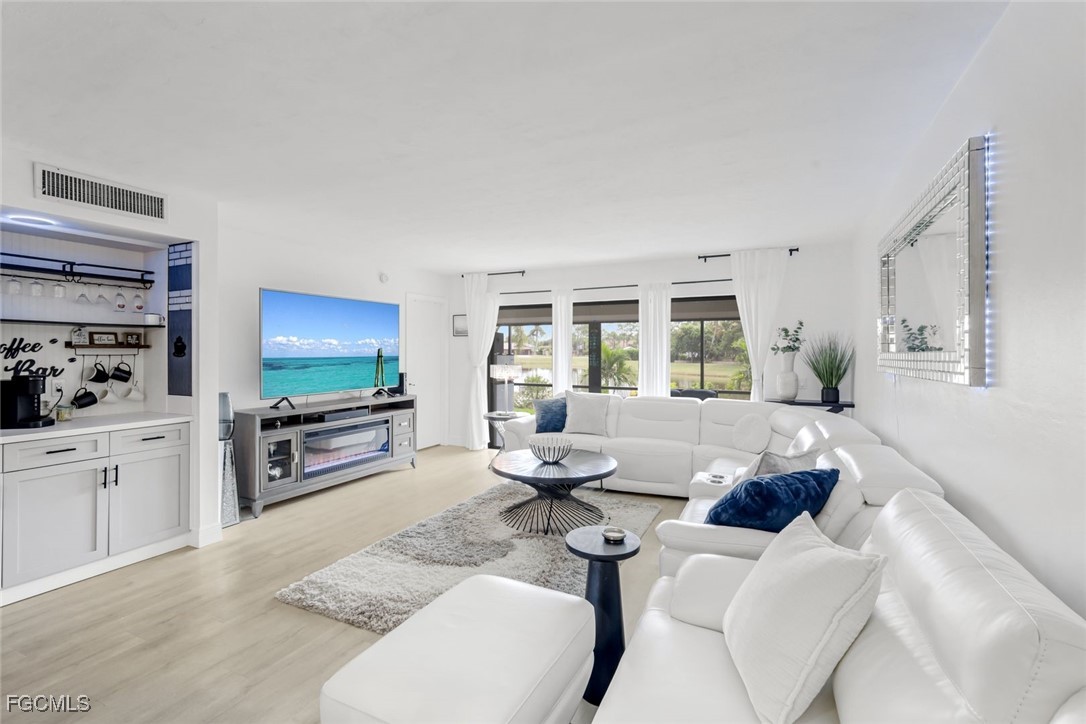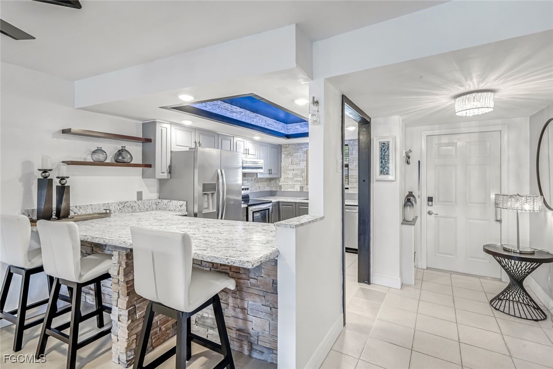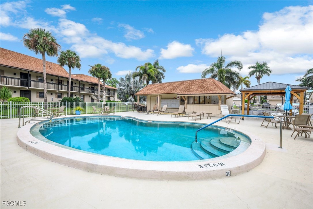 Welcome to this charming 2-bedroom, 2-bathroom condo in the heart of Bonita Springs. Designed with an open floor plan, this home offers a spacious and inviting layout that flows seamlessly from the living area to the screened-in lanai. Enjoy peaceful mornings and tranquil evenings with serene views of the beautifully manicured garden and lake just beyond your back door. The updated kitchen boasts modern finishes, abundant cabinet and counter space, and even a dedicated coffee/tea/beverage bar—perfect for entertaining or everyday convenience. Retreat to the lanai, complete with electric shutters for added storm protection, where you can relax and take in the scenery year-round. Located in a quiet 55+ community, residents enjoy access to a refreshing community pool, along with the comfort of a well-maintained neighborhood. This condo is ideally situated just minutes from shopping, dining, pristine beaches, and more, offering the best of Southwest Florida living.