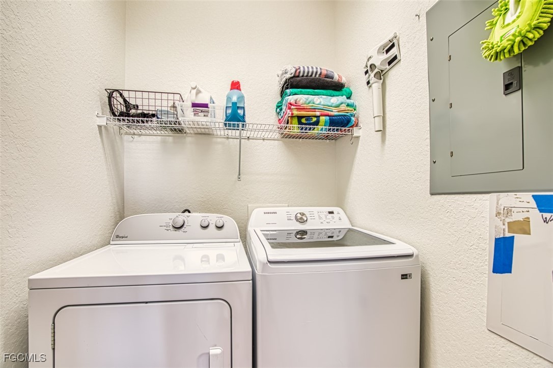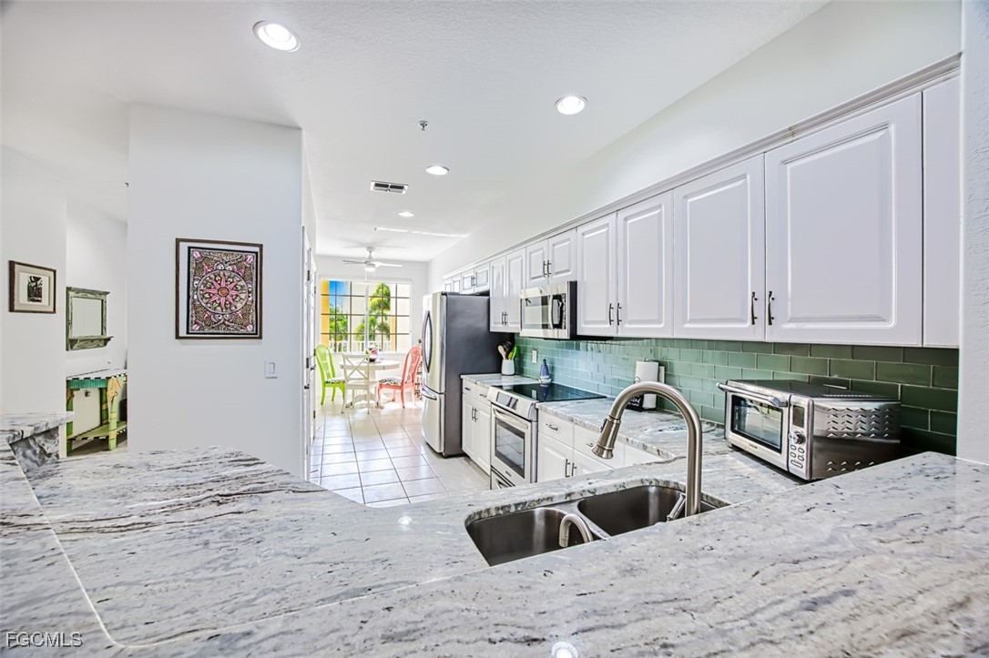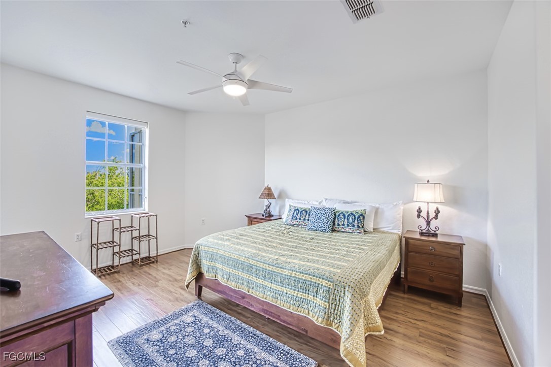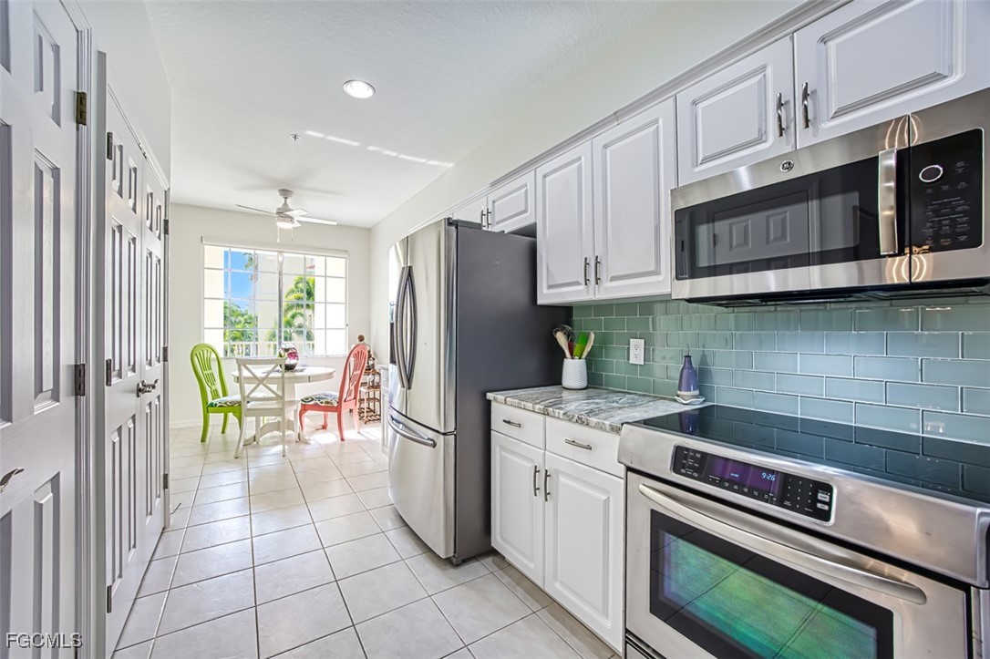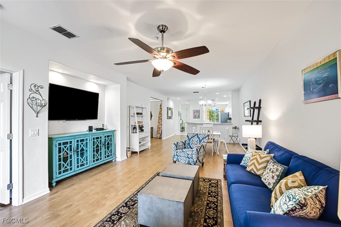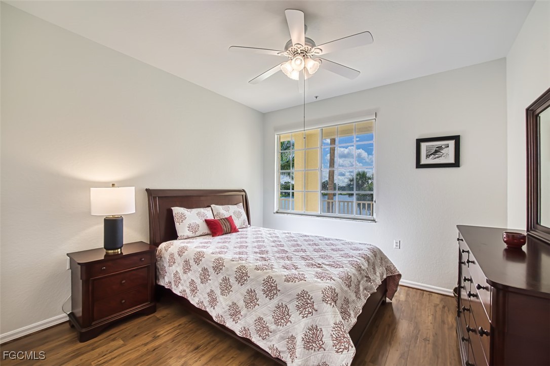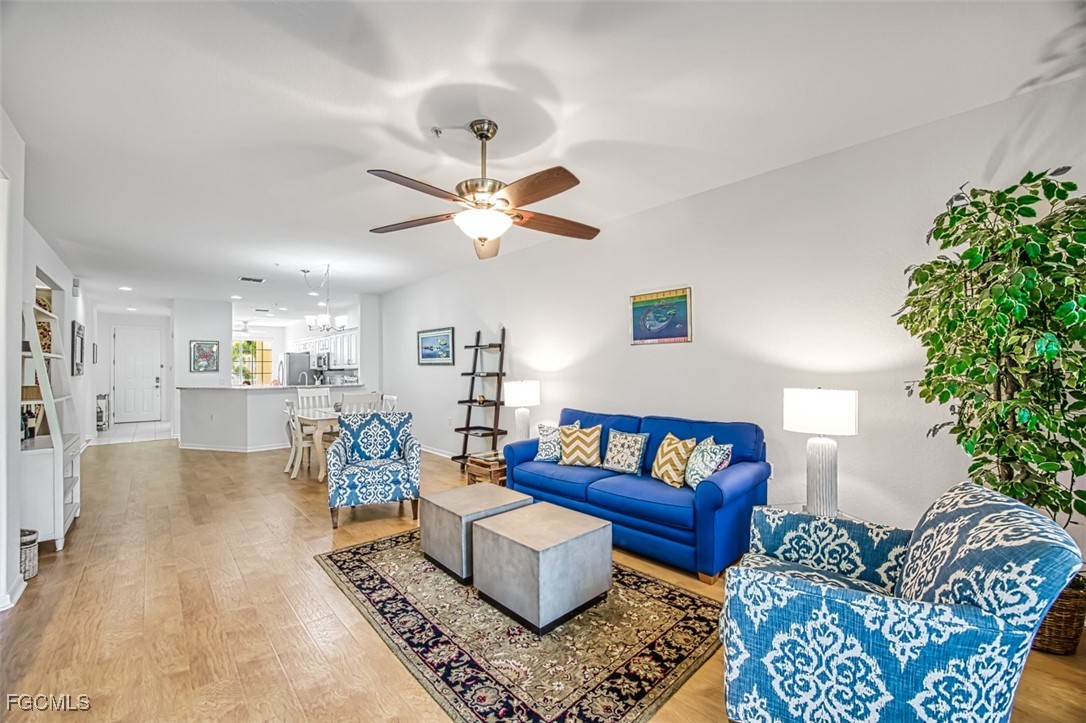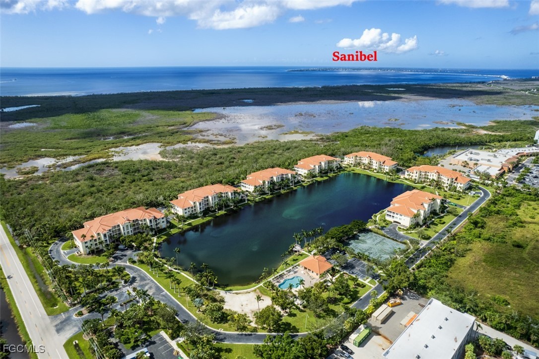 Welcome to Sanibel View, a gated community known for its resort-style amenities and unbeatable location just minutes from Sanibel, Captiva, and Fort Myers Beaches. This beautifully updated 2-bedroom plus den, 2-bath Springfield floor plan showcases brand-new impact windows throughout, providing peace of mind and abundant natural light. Step into an open, airy layout with soaring 9’+ ceilings, rich hardwood flooring in the main living areas and bedrooms, and tile in the updated kitchen and baths. Enjoy serene southwest preserve views from the all-screened lanai, perfect for sunsets and bird-watching, while the guest quarters overlook the tranquil lake and its abundant wildlife. The kitchen is a chef’s delight with granite countertops, stainless steel appliances, and a pantry, while the bathrooms feature elegant granite countertop vanities. Recent upgrades include fresh interior paint (2024), new water heater, new HVAC system, water filtration system, and new front screen doors (2025). This residence also offers a private 2-car garage under the building, elevator access, and a trash chute for everyday convenience. High-speed WiFi is included. Built by Toll Brothers, Sanibel View’s Mediterranean-inspired community surrounds a picturesque 5-acre lake and offers a heated pool, spa, fitness center, tennis and pickleball courts, bocce courts, clubhouse, library, and walking path. Bunche Beach is less than a mile away, just a short stroll down the road, perfect for boating, fishing, kayaking, or simply enjoying the sand and sea.