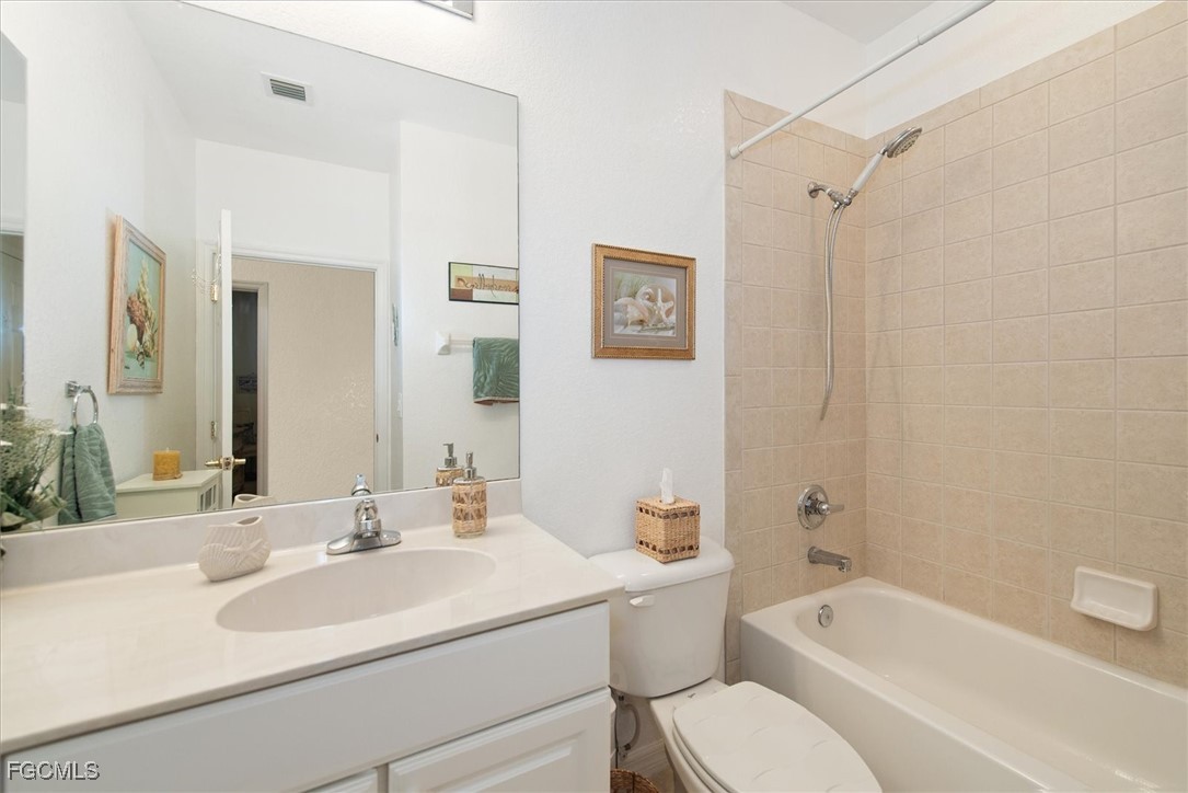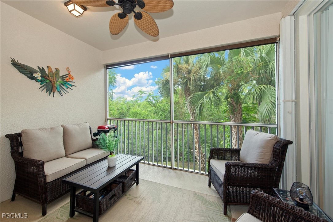 Move-in Ready Condo in Reflection Key - Close to Beaches & Lakes Park. Welcome to Reflection Key, a lushly landscapted gated community just minutes from the white-sand beaches of Sanibel and Fort Myers Beach. This beautifully maintained 2-bedroom plus den, 2-bath condo comes fully furnished with household goods, making it truly move-in ready. Step inside to a spacious open floor plan featuring tile flooring throughout the main living areas, carpeted berooms, a kitchen with backsplash, and hurricane ready with impact-rated windows for peace of mind. Enjoy tranquil views of the wooded preserve from your private screened lanai. Recent updates include new roofs in 2023 and freshly painted buildings in 2023. A covered carport is included. Reflection Key offers resort-style amenities including a clubhouse with pool and spa, billiards, exercise room, library, tennis and pickleball courts, play area, and private gated access to Lakes Park with walking trails, bike rentals, boat rentals, mini train and more. A friendly, active community, Reflection Key enjoys morning coffee on Thursdays, monthly luncheons and other activities during season. Conveniently located near shopping, dining, and entertainment, this home is the perfect blend of comfort, convenience, and Florida lifestyle.