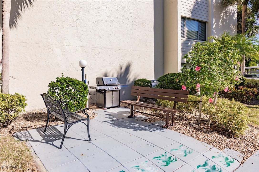 Elevate your active lifestyle with included amenities! Nicely updated 2-bed, 2-bath ground floor unit in pet-friendly Windjammer Village at The Landings Yacht Golf & Tennis Club! Tiled throughout, new white shaker cabinets with granite counters, glass backsplash, and newer stainless appliances including a wine fridge. The living area is expanded to the walk-out lanai. French doors into the bedroom. Upgraded fans and doors. Nicely tiled baths, granite-topped vanities and a walk-in frameless-glass master shower. Newer washer & dryer. Walk-through this unit with the virtual tour link! Bright morning eastern light in your kitchen, and a lake and fountain view from the living area with sunset color to the west. Common gas grill close by for your evening bar-b-q’s. Carport included just a few steps from the door. The Landings Yacht Golf & Tennis Club is a highly active, non-age restricted, gated community. Your monthly club fee INCLUDES AMENITIES of 18-hole golf, World-class tennis on Har-Tru courts, pickle ball, marina slip for up to 65' boat, waterfront picnic area & restaurant, clubhouse w/tavern, fitness center, heated lap pool & more. See why The Landings (on the banks of the Okeechobee Waterway to the Gulf via no bridges) is SW FL's best kept secret!