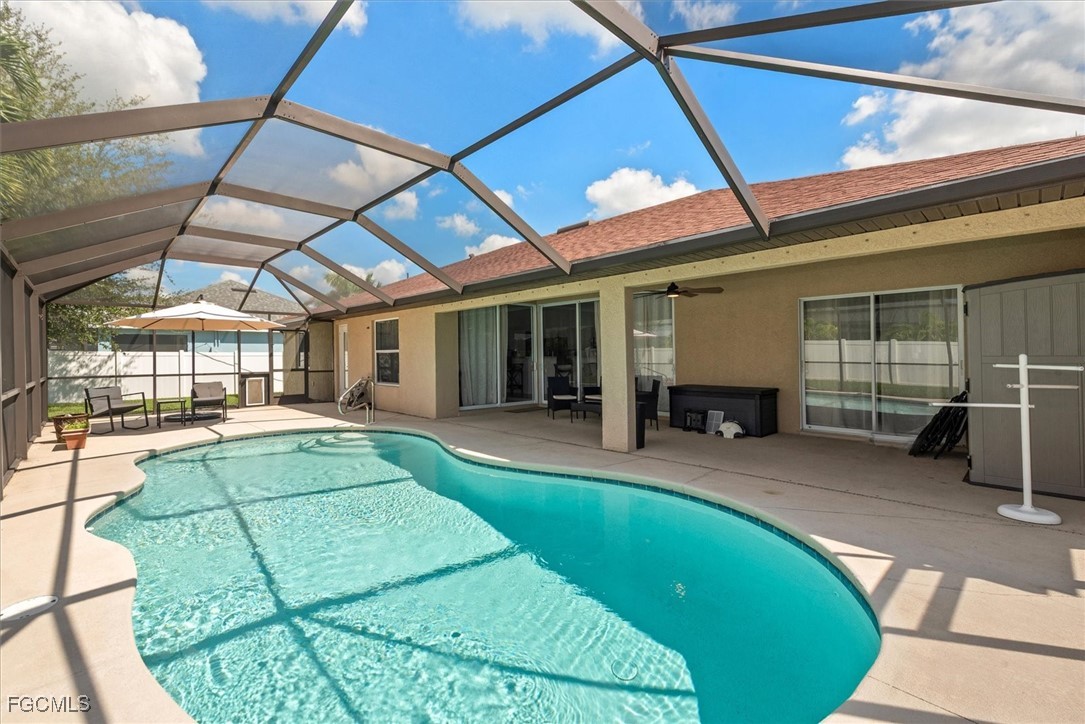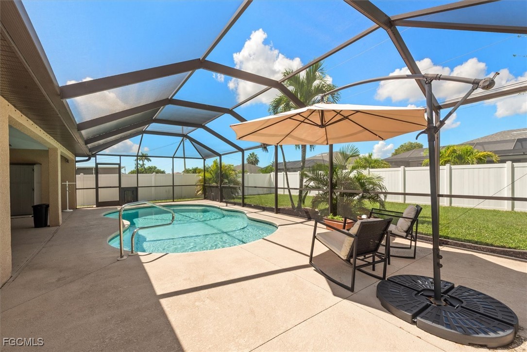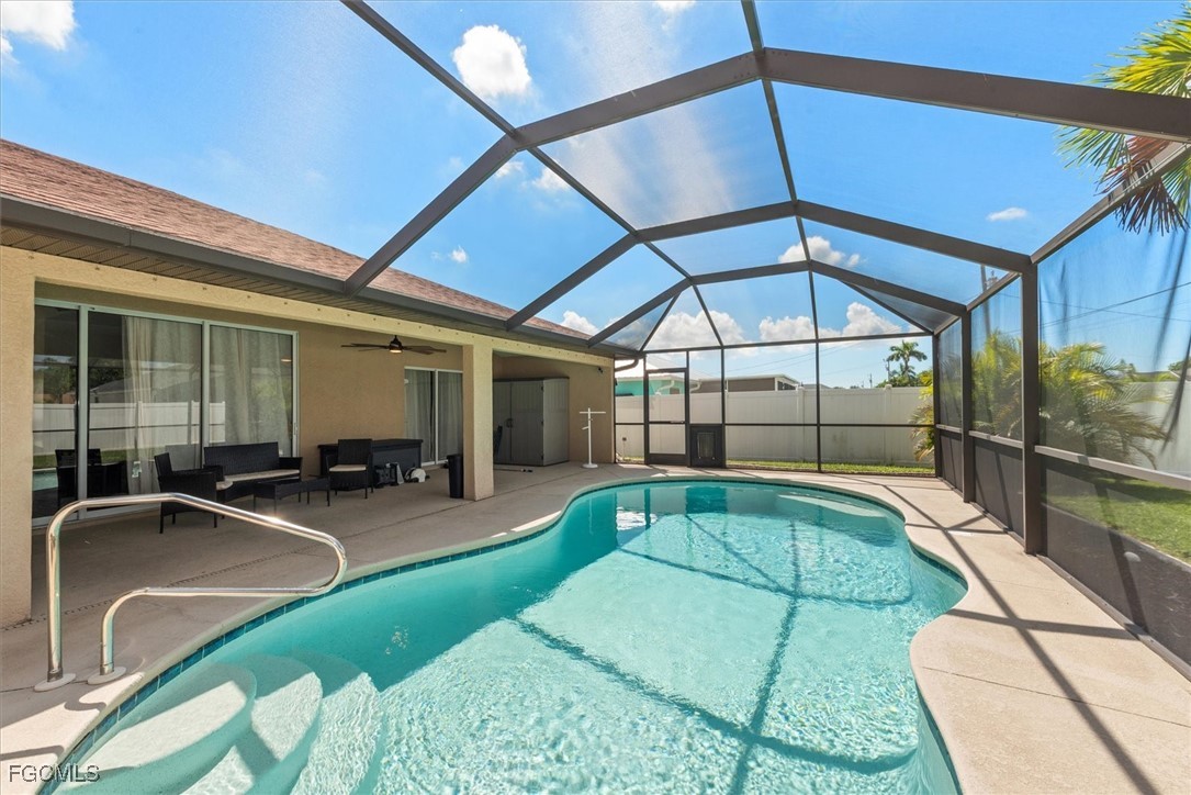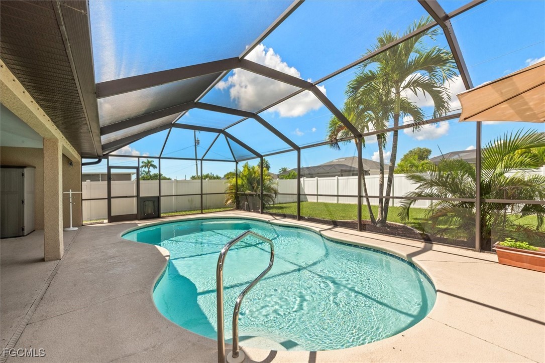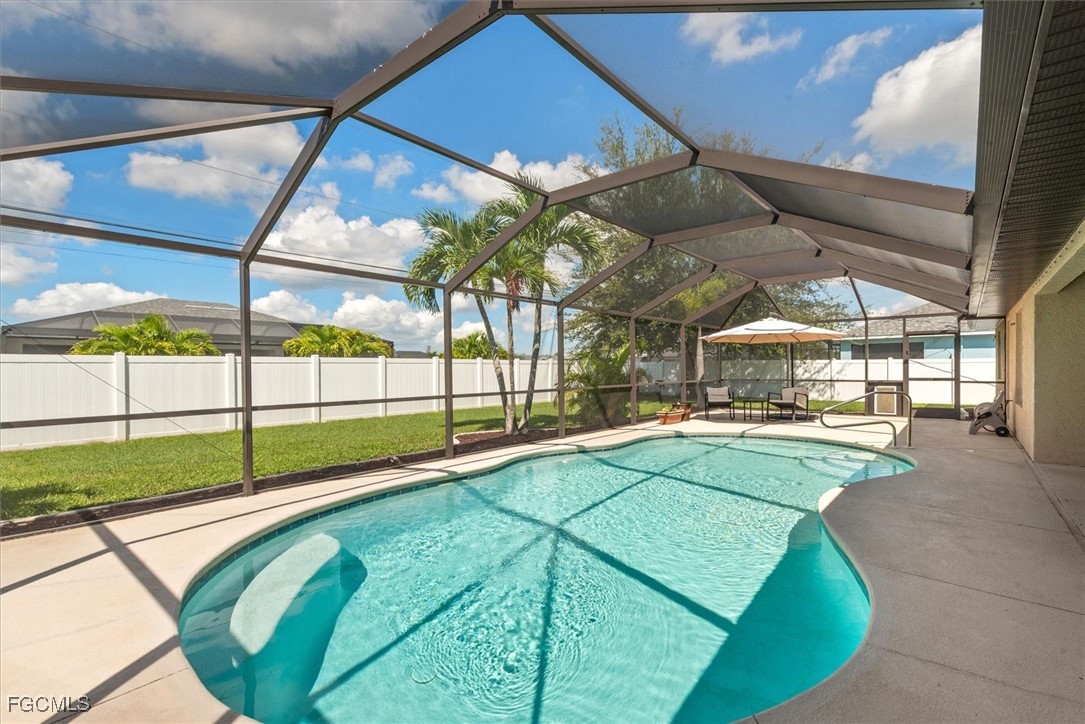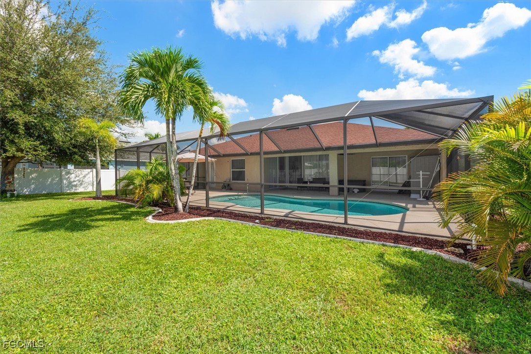 This move-in-ready home offers 3 bedrooms plus a versatile den and 2 bathrooms in one of Cape Coral’s most desirable SW locations — and it’s not in a flood zone. You’ll immediately notice the excellent curb appeal and pride of ownership throughout. Inside, there’s no carpet, fresh interior paint , updated lighting and fans, and stylish touches such as barn doors in the primary suite. Major updates include a newer roof, a fully fenced yard, new gutters, and a remodeled hall bath shower. The kitchen boasts newer stainless steel appliances, and the garage features a durable epoxy floor. The pool has been converted to saltwater for easy maintenance, and the home is equipped with modern comforts like a smart thermostat and an alarm system. Enjoy Florida living at its best with your private screened pool, spacious lanai, and beautifully maintained yard. Conveniently located near shopping, dining, and top-rated schools — this home checks all the boxes!
