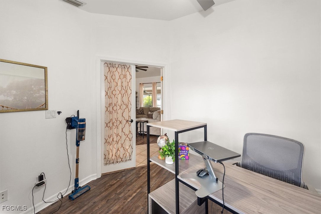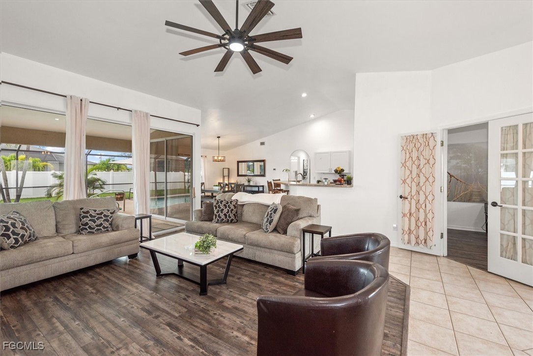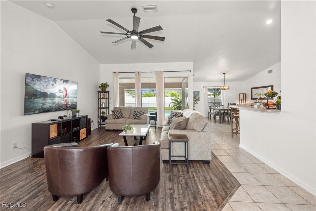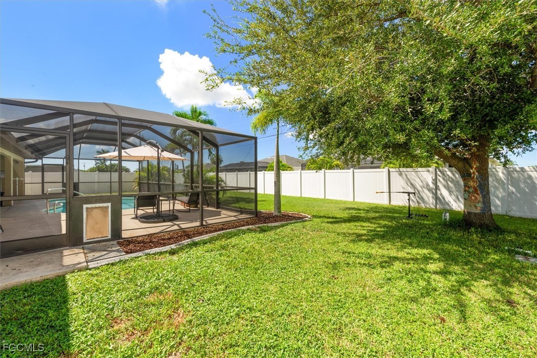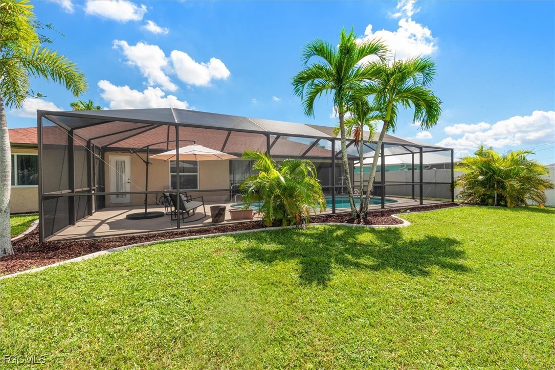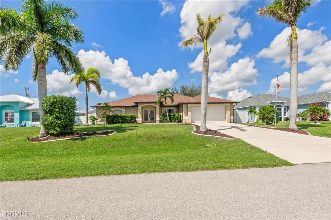 This move-in-ready home offers 3 bedrooms plus a versatile den and 2 bathrooms in one of Cape Coral’s most desirable SW locations — and it’s not in a flood zone. You’ll immediately notice the excellent curb appeal and pride of ownership throughout. Inside, there’s no carpet, fresh interior paint , updated lighting and fans, and stylish touches such as barn doors in the primary suite. Major updates include a newer roof, a fully fenced yard, new gutters, and a remodeled hall bath shower. The kitchen boasts newer stainless steel appliances, and the garage features a durable epoxy floor. The pool has been converted to saltwater for easy maintenance, and the home is equipped with modern comforts like a smart thermostat and an alarm system. Enjoy Florida living at its best with your private screened pool, spacious lanai, and beautifully maintained yard. Conveniently located near shopping, dining, and top-rated schools — this home checks all the boxes!