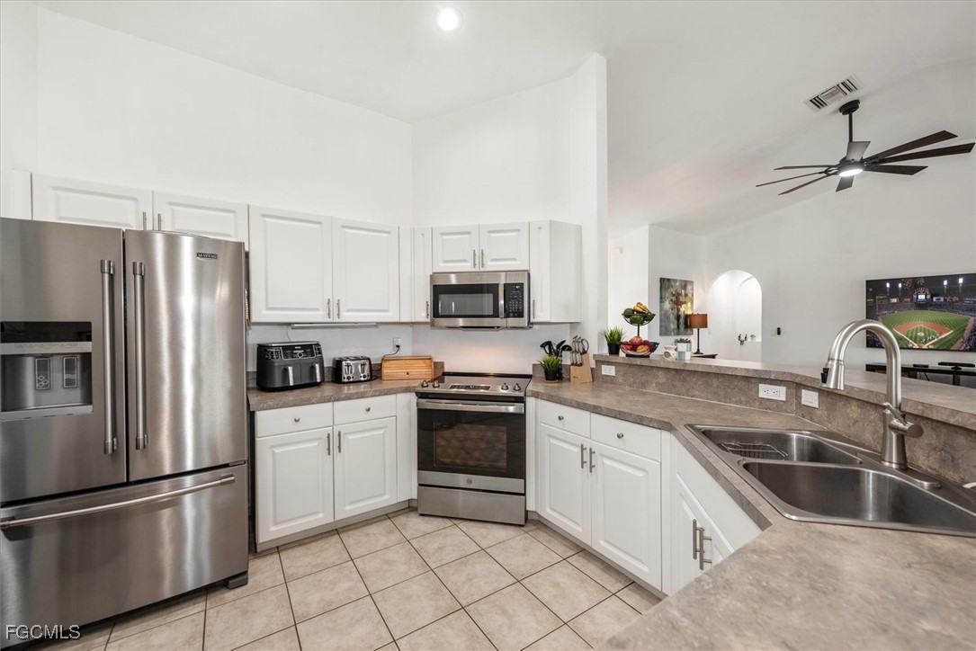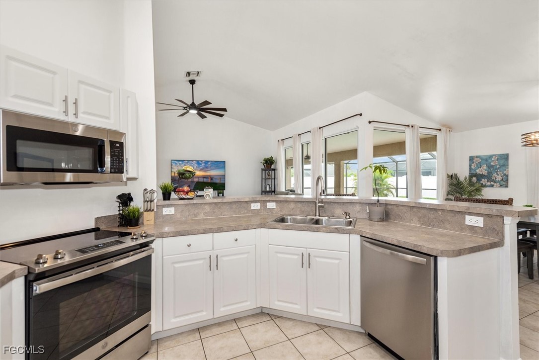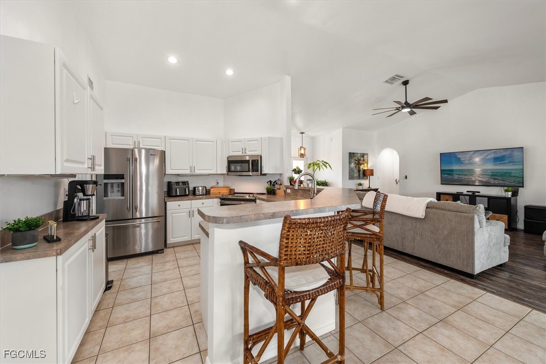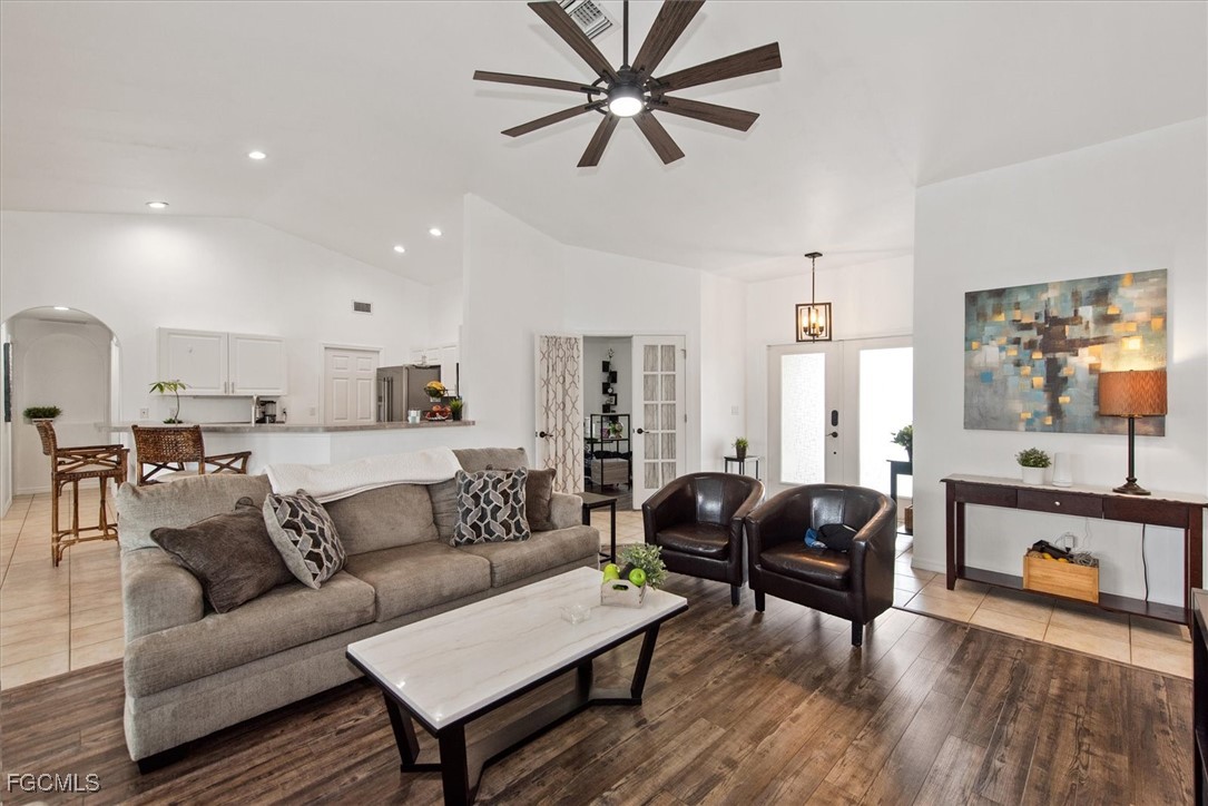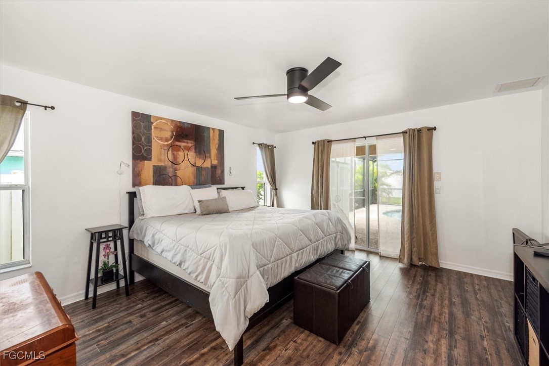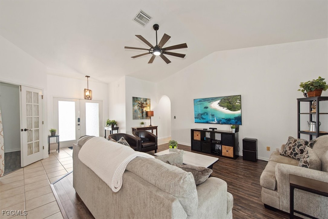 This move-in-ready home offers 3 bedrooms plus a versatile den and 2 bathrooms in one of Cape Coral’s most desirable SW locations — and it’s not in a flood zone. You’ll immediately notice the excellent curb appeal and pride of ownership throughout. Inside, there’s no carpet, fresh interior paint , updated lighting and fans, and stylish touches such as barn doors in the primary suite. Major updates include a newer roof, a fully fenced yard, new gutters, and a remodeled hall bath shower. The kitchen boasts newer stainless steel appliances, and the garage features a durable epoxy floor. The pool has been converted to saltwater for easy maintenance, and the home is equipped with modern comforts like a smart thermostat and an alarm system. Enjoy Florida living at its best with your private screened pool, spacious lanai, and beautifully maintained yard. Conveniently located near shopping, dining, and top-rated schools — this home checks all the boxes!