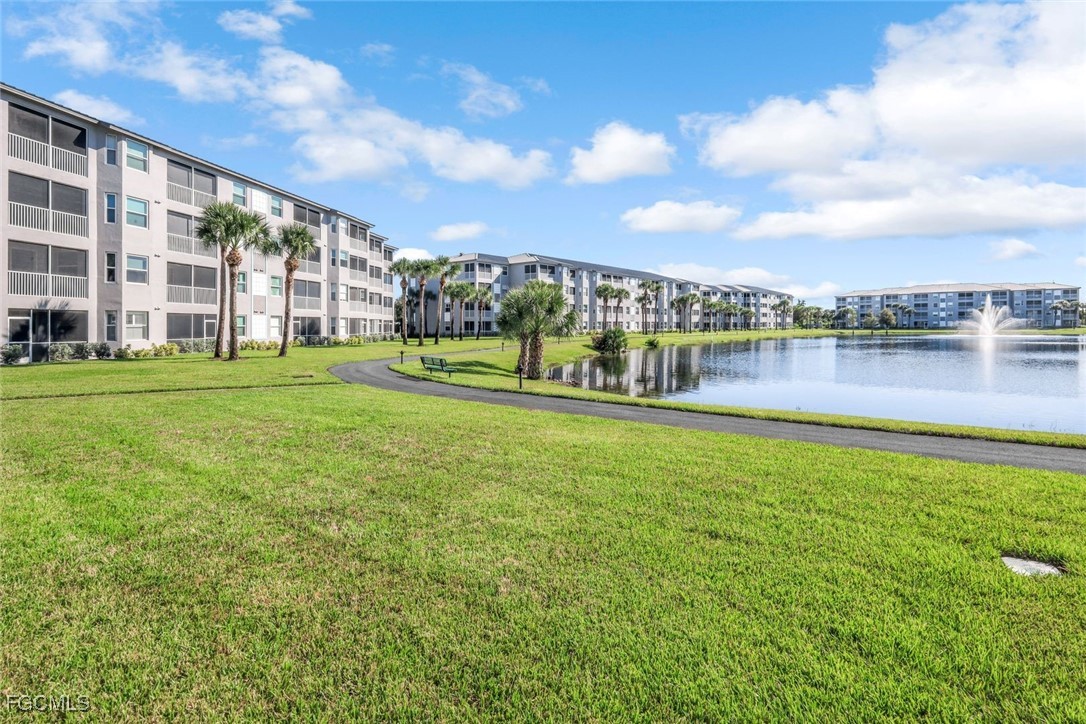 OFFERING A RARE OPPORTUNITY TO OWN a highly sought-after DOGWOOD model in the incredibly popular, tropically landscaped, Heritage Pointe community in South Ft Myers. ENJOY the expansive WATER VIEW from this recently renovated, 2 BEDROOM + DEN / 2 BATH condo, which offers 1400+ square feet of living area, a tiled entryway, and an exceptionally large, tiled lanai. Offered unfurnished, the split floor plan provides privacy for owners/guests and many unique upgrades and convenient features that you will not find elsewhere. The main living area includes tile flooring, crown molding, and a unique shiplap wall, plus an elegant plantation shutter window treatment for the sliding glass door to the lanai. The large kitchen boasts distinctive quartz countertops, a unique backsplash, and lots of cabinet space with pullout drawers in the lower cabinets. The traditional breakfast area has been converted into more functional space with desks, drawers, and cabinetry that is suitable for work, craft/hobby activities, or as a coffee nook. In addition, a small bar area has been incorporated into the kitchen. The sizeable primary bedroom has three bay windows, with accordion blinds, that overlook the lake and offer an abundance of natural light. Below the windows is a cushioned window seat over hidden storage. The elegant primary bathroom offers an updated shower and quartz-topped vanity with pullout drawers. Also quite functional, the study/den features a beautiful CUSTOM Queen-Size MURPHY BED, shelves, desk, and file cabinets. The guest bedroom also contains a rare but useful feature, an in-the-wall safe. In addition to the unique & custom features, all appliances and mechanicals are newer including a complete HVAC system (2.5 ton/16 SEER) installed in late 2022, Ruud water heater (2023), all new kitchen appliances (2023), and Maytag washer & dryer (2023). Also Included is a deeded extra storage unit located just steps from the front door & covered parking. High-definition fiber-optic based TV & Internet, water/sewer, and much more are included in the comparably low maintenance fee. Heritage Pointe is a financially sound, pet-friendly community located close to the beaches, near Wakahatchee Park & Recreation Center with tennis & pickleball courts, Health Park Medical complex, several pharmacies & grocery stores, shopping, restaurants, and a variety of entertainment venues. Community amenities include a recently renovated clubhouse, resort-style heated pool & spa, fitness room, library, walking path, plus a new community gathering area featuring gas grills, bocce ball, cornhole, putting green. The community offers an extensive social calendar of activities & events. DON’T HESITATE – Book a SHOWING TODAY.