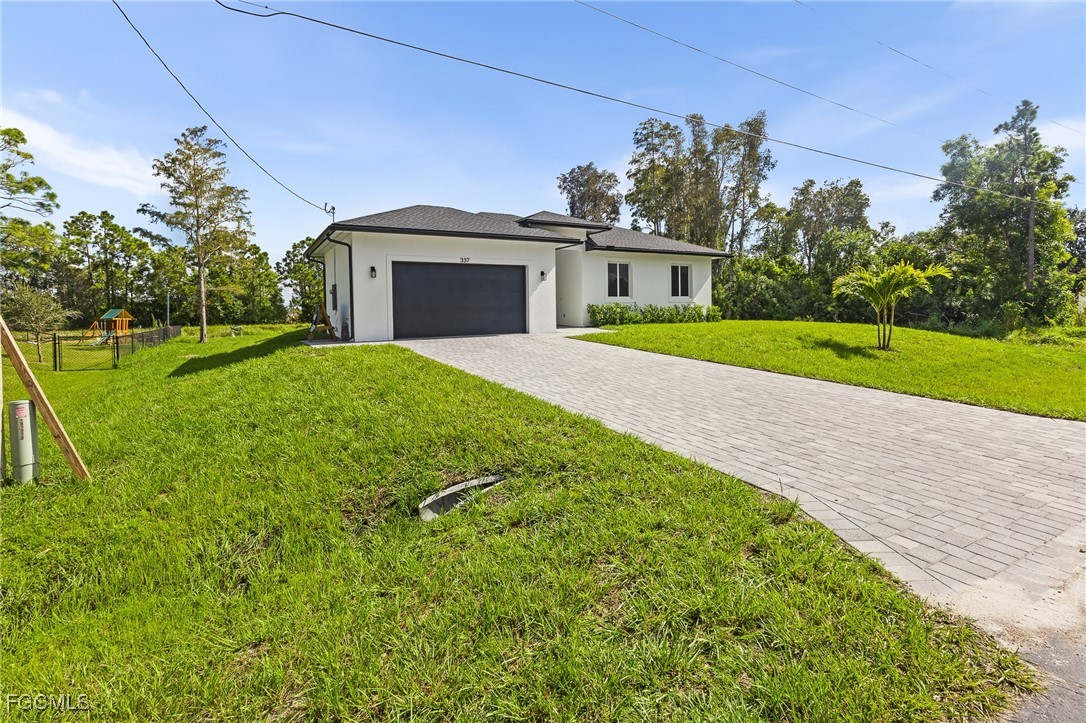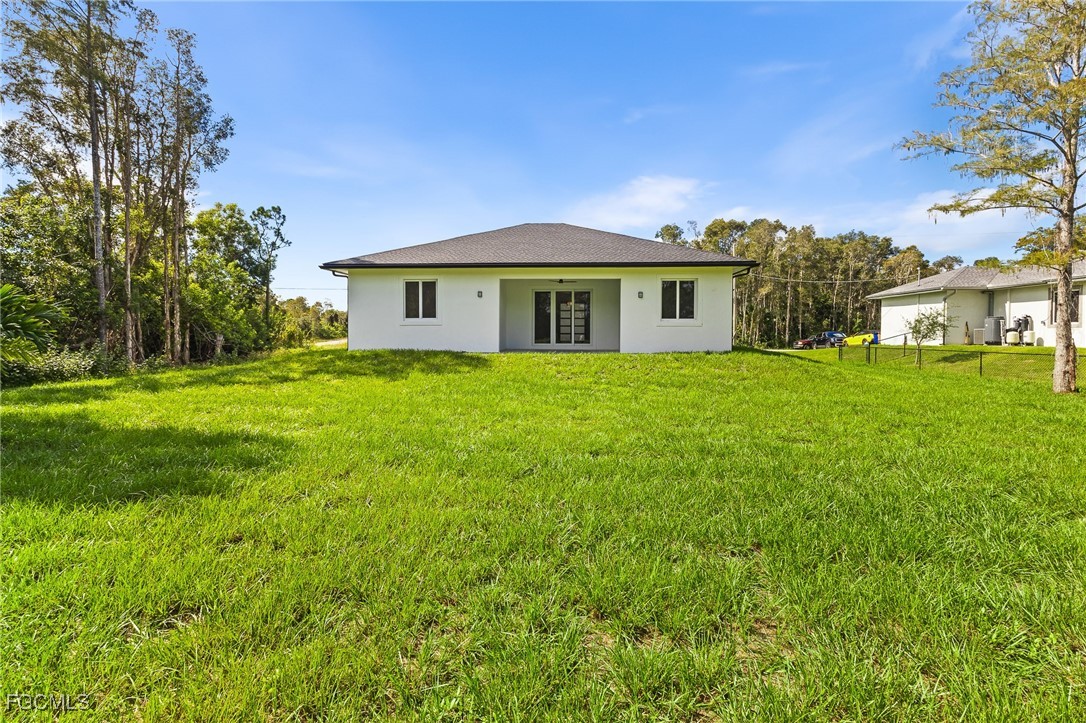 Beautiful new construction single-family home located in a central area of Lehigh Acres, close to shopping centers, restaurants, and schools. This modern Grenada Model offers 4 bedrooms, 2 full bathrooms, and 1 half bathroom with a total of 1867 sq. ft.living area. Interior features include a spacious kitchen with island and glass cooktop, stainless steel appliances (dishwasher, side-by-side refrigerator, built-in microwave, oven), porcelain tile bathrooms with shower glass, 10 ft ceilings, LED lighting, and light texture wall finishes. The home is equipped with central air (4 tons), impact glass windows and doors, and asphalt shingle roofing.