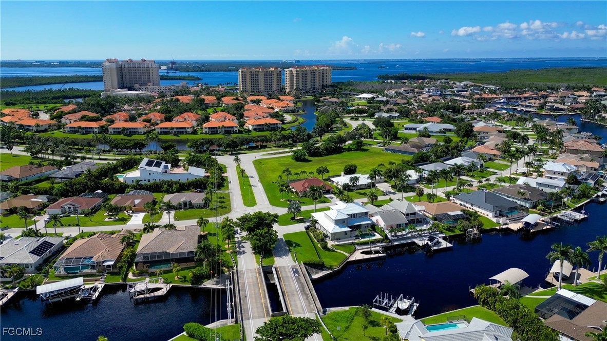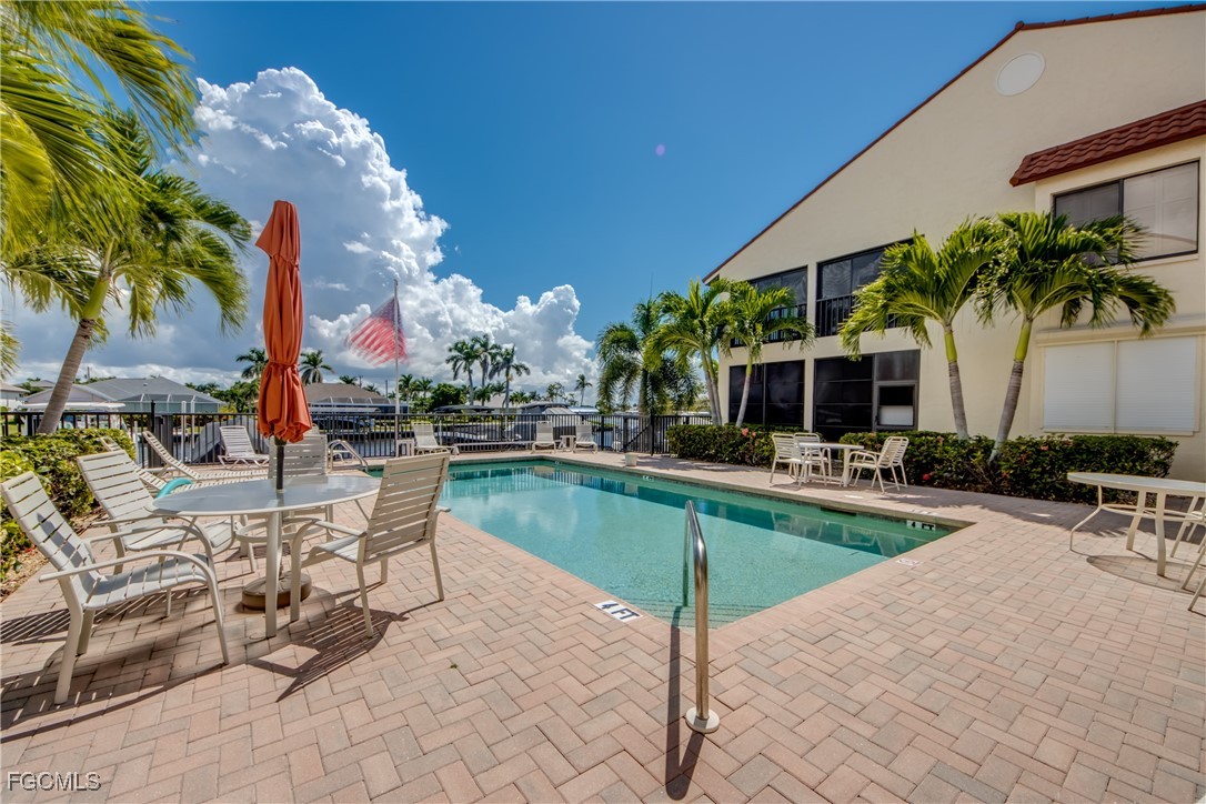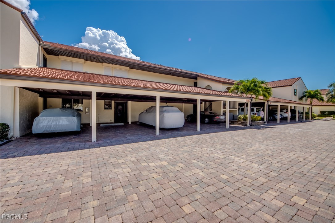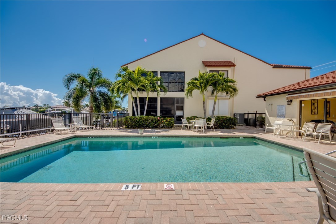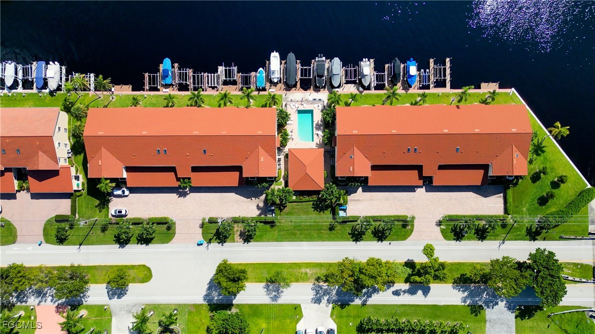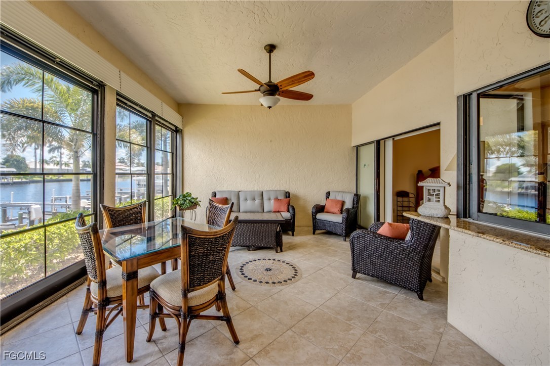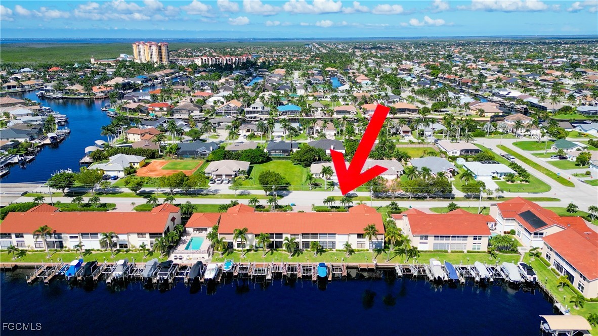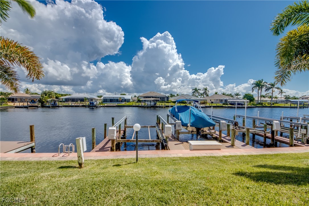 From dawn to dusk, THIS WATERFRONT living carries a TIMELESS CALM—mornings begin with sunrises and coffee on the lanai, afternoons drift by with a book you can’t put down, and evenings bring a cocktail before a leisurely cruise to dinner by boat. Life at Capstan Condos is all about the waterfront lifestyle on a stunning 200’ WIDE CANAL. Open the door to this spacious two-bedroom, two-bath retreat with covered parking and you’ll immediately notice what sets it apart. Soaring VOLUME CEILINGS and oversized windows flood the home with golden light, creating an airy, welcoming atmosphere that feels both grand and inviting. This isn’t your typical condo—it was BUILT AHEADS OF ITS TIME, with a UNIQUE DESIGN that makes the kitchen the heart of the home while still giving privacy to both the guest suite and the master retreat. The kitchen is tastefully designed with 36” wood cabinets accented by glass doors, crown and rope molding, soft close pull out drawers, granite counters, backsplash and pantry. Entertain with ease as the pass-through opens to the lanai, so you never miss the conversation—or the view. The greatroom flows effortlessly to the oversized lanai, where pocketing sliders dissolve the boundary between indoors and out. The master suite is a peaceful retreat on the water, complete with walk-in closet and a spacious bath featuring dual granite vanities with soft-close features. Guests enjoy their own private space on the opposite side of the home, ensuring comfort and privacy. This condo comes with its own ASSIGNED BOAT DOCK AND 6K LB LIFT (and new dock boards) perched on the 200’ wide Bronco Canal just around the corner from TARPON POINT and CAPE HARBOR. With only one bridge out, you’ll be enjoying the Gulf of America in no time at all. Imagine days spent cruising to Sanibel and Captiva, stopping for lunch at waterfront restaurants, fishing off your dock or simply enjoying the sight of dolphins and manatee playing in your backyard. Dinner by boat isn’t just possible—it’s YOUR NEW NORMAL. Peace of mind comes standard here!. The building has a BRAND-NEW ROOF, storm-ready doors and windows with a mix of ELECTRIC AND MANUAL ROLL DOWN SHUTTERS. NO water intrusion with any storm. Flood insurance won’t keep you up at night, with a TRANSFERABLE POLICY at just $734/year (subject to insurance co. approval). Capstan is a 55+ community known for its BEAUTIFULLY MAINTAINED GROUNDS AND WELCOMING ATMOSPHERE. Residents enjoy a heated saltwater pool, clubhouse, BBQ area, fish cleaning station, exterior storage, covered carports and pavered parking lot. Tucked among million-dollar waterfront homes, the location is as desirable as it is convenient—close to shopping, dining, marinas and just minutes out to the Caloosahatchee River & beyond. This isn’t just a condo, it’s your well-earned escape—sun-drenched mornings, barefoot boating afternoons and evenings where neighbors become friends and every sunrise feels like a celebration. SUNRISE TO SUNSET, PURE PARADISE!
