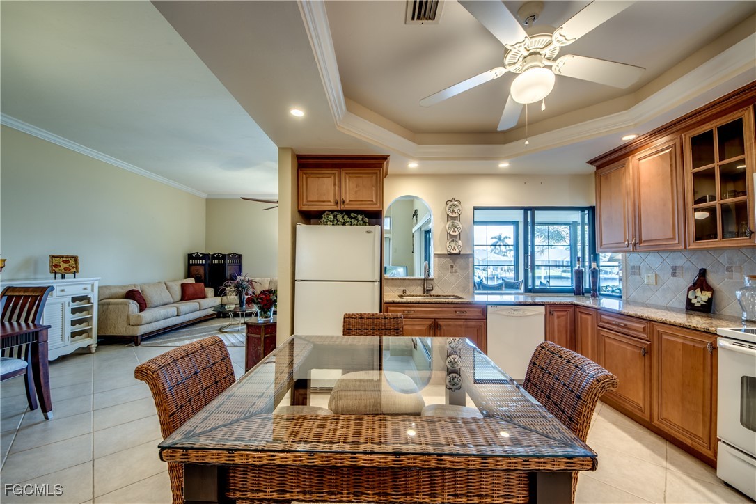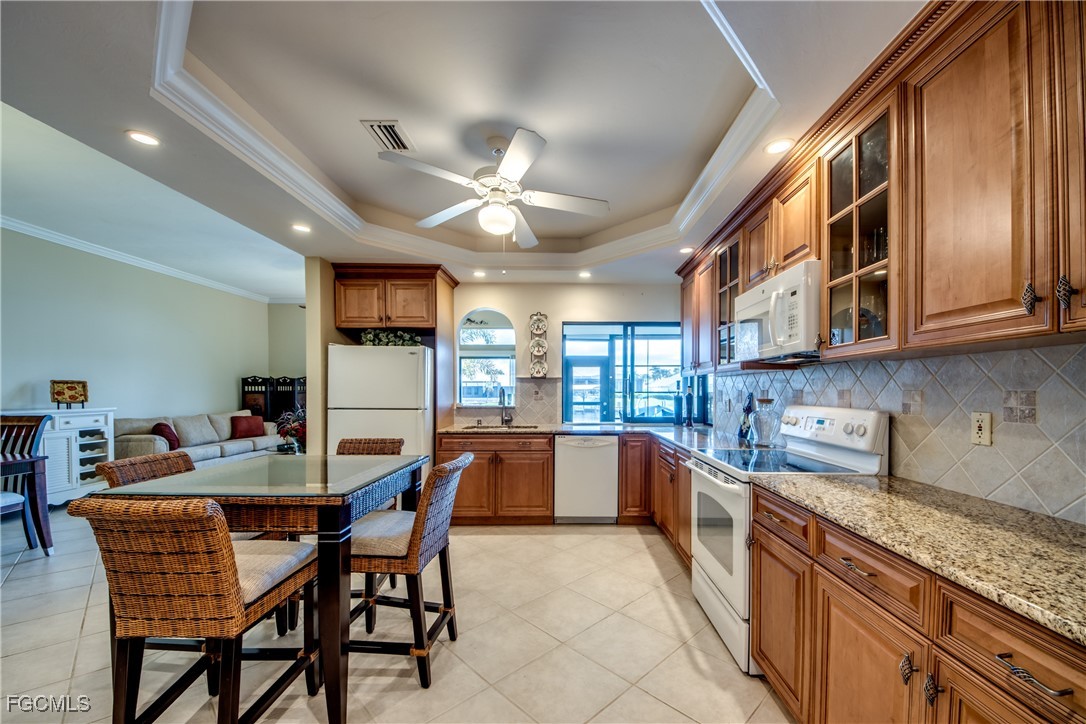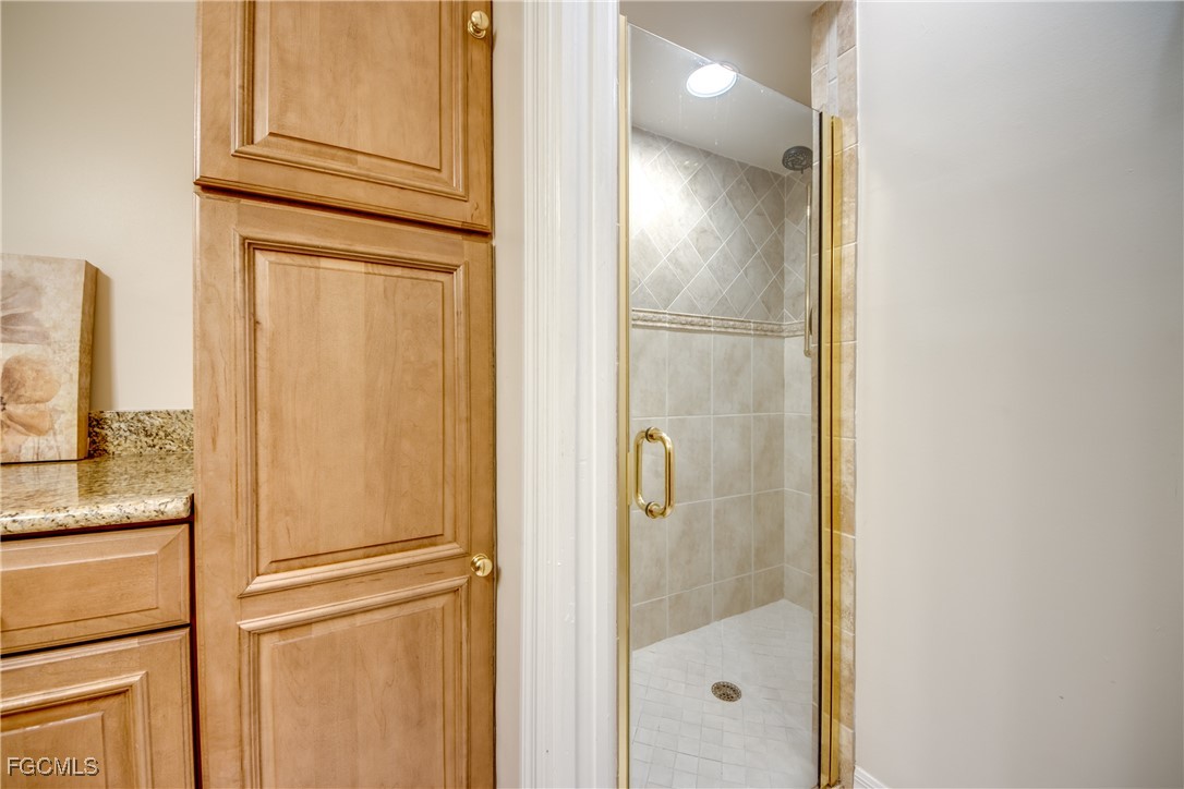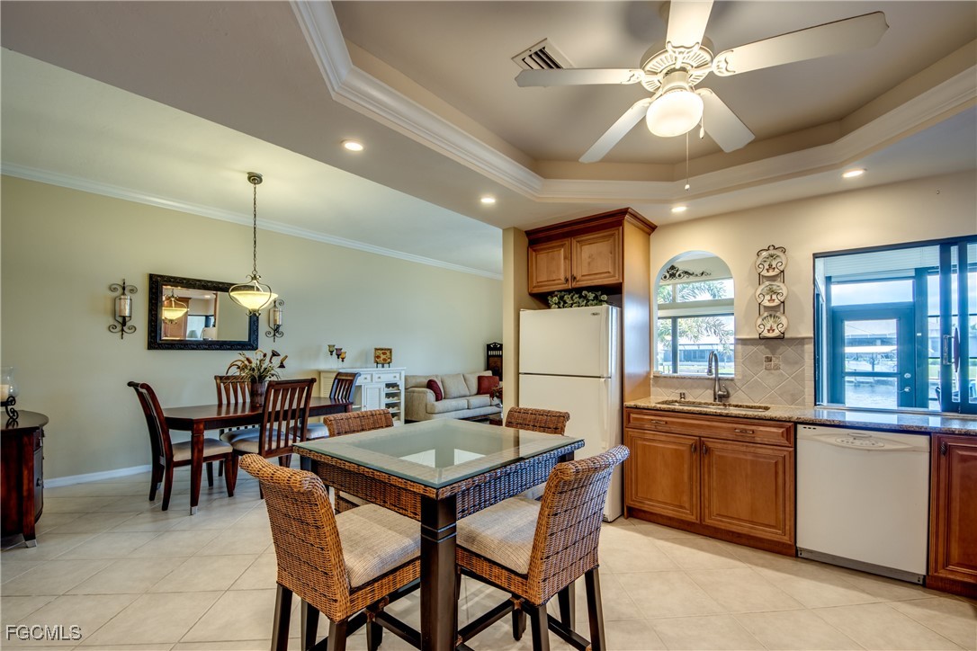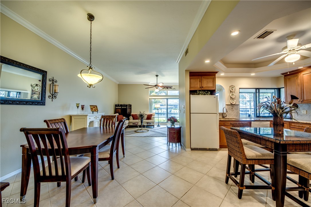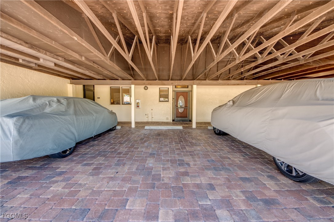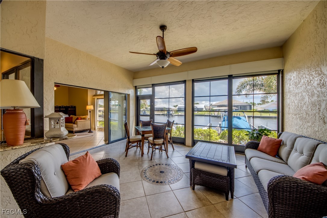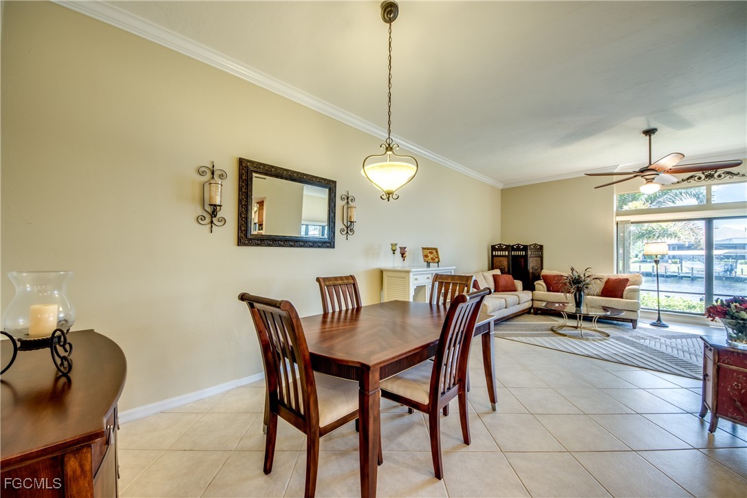 From dawn to dusk, THIS WATERFRONT living carries a TIMELESS CALM—mornings begin with sunrises and coffee on the lanai, afternoons drift by with a book you can’t put down, and evenings bring a cocktail before a leisurely cruise to dinner by boat. Life at Capstan Condos is all about the waterfront lifestyle on a stunning 200’ WIDE CANAL. Open the door to this spacious two-bedroom, two-bath retreat with covered parking and you’ll immediately notice what sets it apart. Soaring VOLUME CEILINGS and oversized windows flood the home with golden light, creating an airy, welcoming atmosphere that feels both grand and inviting. This isn’t your typical condo—it was BUILT AHEADS OF ITS TIME, with a UNIQUE DESIGN that makes the kitchen the heart of the home while still giving privacy to both the guest suite and the master retreat. The kitchen is tastefully designed with 36” wood cabinets accented by glass doors, crown and rope molding, soft close pull out drawers, granite counters, backsplash and pantry. Entertain with ease as the pass-through opens to the lanai, so you never miss the conversation—or the view. The greatroom flows effortlessly to the oversized lanai, where pocketing sliders dissolve the boundary between indoors and out. The master suite is a peaceful retreat on the water, complete with walk-in closet and a spacious bath featuring dual granite vanities with soft-close features. Guests enjoy their own private space on the opposite side of the home, ensuring comfort and privacy. This condo comes with its own ASSIGNED BOAT DOCK AND 6K LB LIFT (and new dock boards) perched on the 200’ wide Bronco Canal just around the corner from TARPON POINT and CAPE HARBOR. With only one bridge out, you’ll be enjoying the Gulf of America in no time at all. Imagine days spent cruising to Sanibel and Captiva, stopping for lunch at waterfront restaurants, fishing off your dock or simply enjoying the sight of dolphins and manatee playing in your backyard. Dinner by boat isn’t just possible—it’s YOUR NEW NORMAL. Peace of mind comes standard here!. The building has a BRAND-NEW ROOF, storm-ready doors and windows with a mix of ELECTRIC AND MANUAL ROLL DOWN SHUTTERS. NO water intrusion with any storm. Flood insurance won’t keep you up at night, with a TRANSFERABLE POLICY at just $734/year (subject to insurance co. approval). Capstan is a 55+ community known for its BEAUTIFULLY MAINTAINED GROUNDS AND WELCOMING ATMOSPHERE. Residents enjoy a heated saltwater pool, clubhouse, BBQ area, fish cleaning station, exterior storage, covered carports and pavered parking lot. Tucked among million-dollar waterfront homes, the location is as desirable as it is convenient—close to shopping, dining, marinas and just minutes out to the Caloosahatchee River & beyond. This isn’t just a condo, it’s your well-earned escape—sun-drenched mornings, barefoot boating afternoons and evenings where neighbors become friends and every sunrise feels like a celebration. SUNRISE TO SUNSET, PURE PARADISE!