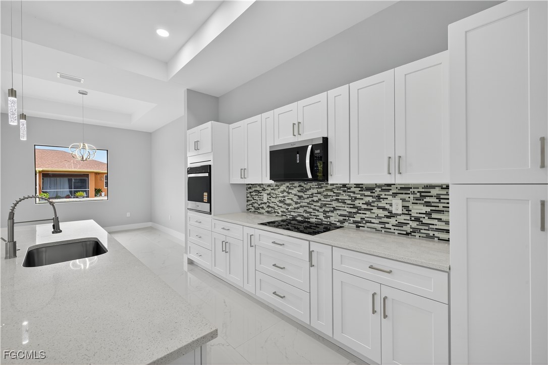 Practical features include a dedicated laundry room and a 2-car garage, adding ease and convenience to your daily routine. Step outside to a spacious backyard complete with a built-in outdoor kitchen, ideal for weekend cookouts or entertaining guests while enjoying serene water views.