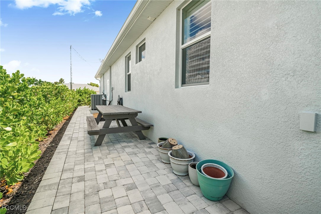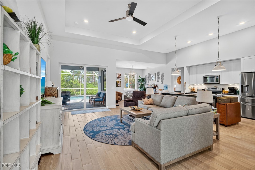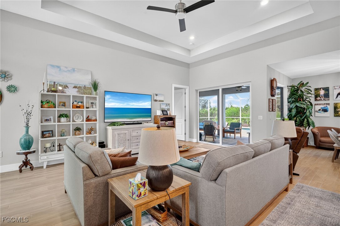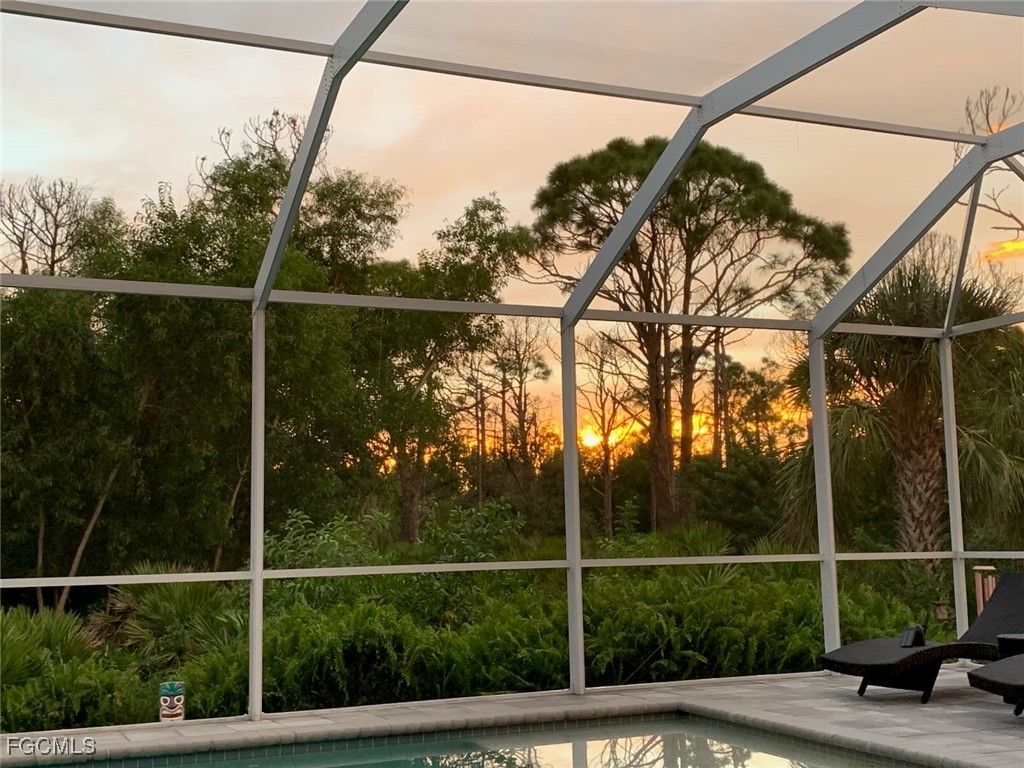Impeccably maintained 3BR+Den, 3 Bath Pool Home in highly sought after Surfside area of SW Cape Coral. You will be wowed by the curb appeal of this 2020 built home with it’s lush mature landscaping, pavered driveway, and soaring entryway with double frosted glass doors. As you enter the home, you are awed by towering 11 foot tray ceilings and modern open concept great room with beautiful island chefs kitchen with granite waterfall counters, white shaker soft close cabinets, pantry, and high end stainless steel appliances. You will love entertaining as the large glass sliders open up to the best feature of the home. Your backyard private oasis includes a covered lanai with outdoor kitchen, full bathroom, and a heated saltwater pool with tanning/soaking ledge. Outside of the caged pool area is a large pavered patio with a fire pit to enjoy beautiful sunsets. Beyond the completely private backyard is a wooded nature preserve where you can often see soaring eagles, Blue Jays, and other wildlife. In addition to spectacular sunsets, the southwest exposure provides sun on your pool area all day in winter. Other features include plank tile floors throughout, louvered shutters on the windows, duel walk-in closets in the owner’s suite, lots of extra storage space with overhead racks in the garage, impact windows and doors for peace of mind, and low-cost transferable flood policy. The home has never flooded from any storm, and may qualify for a LOMA to eliminate the flood insurance requirement. Schedule a showing today before this beautiful home is gone.
