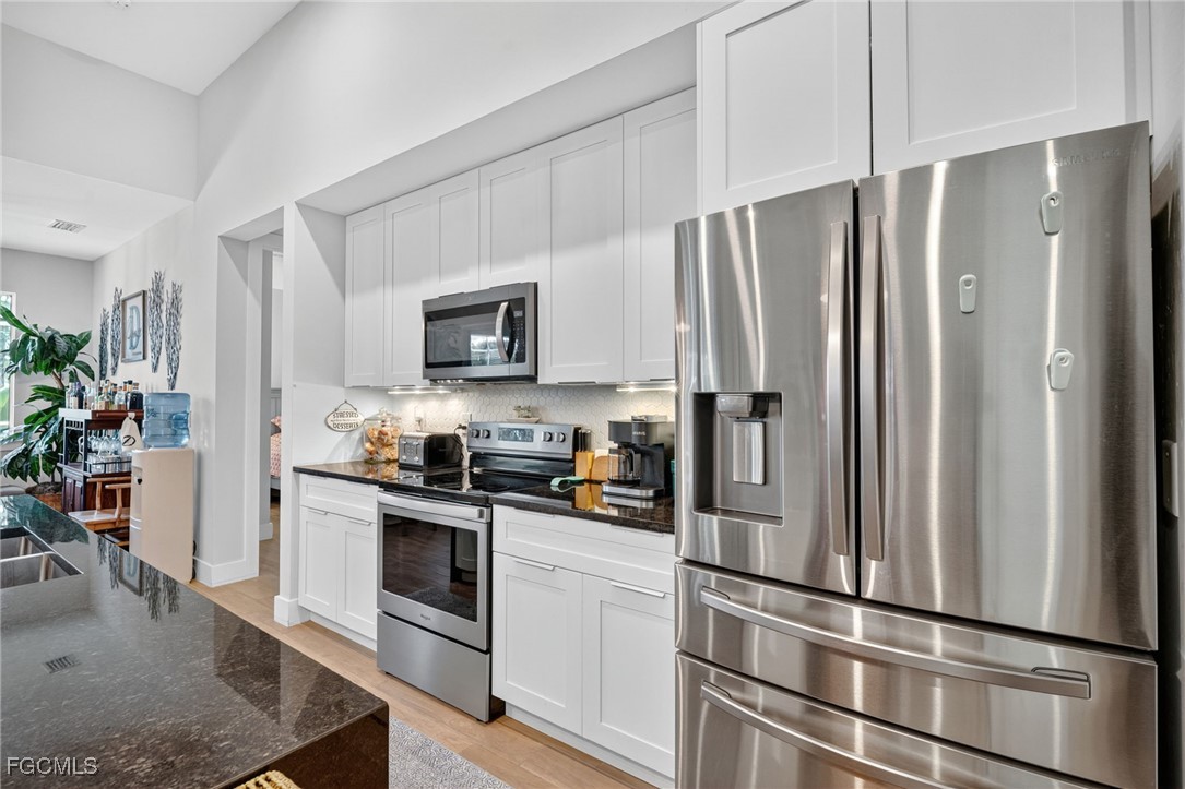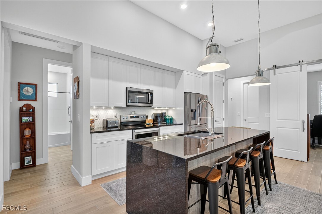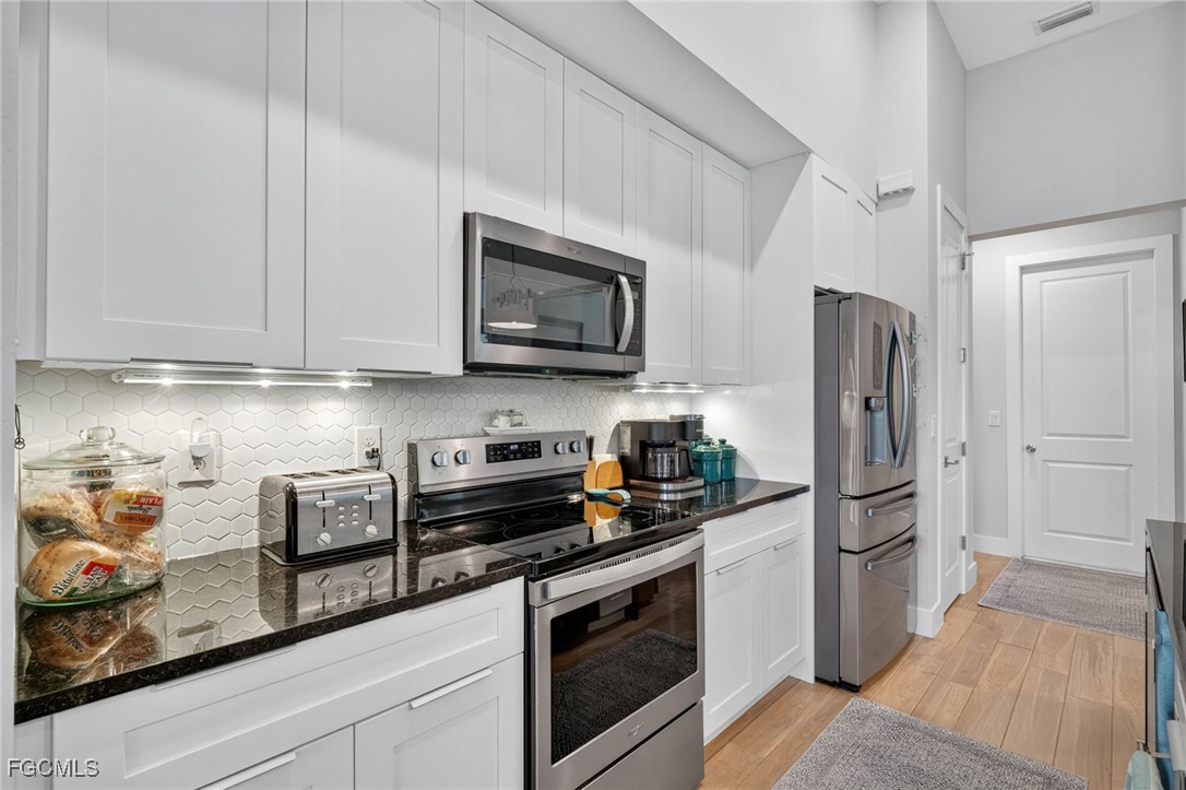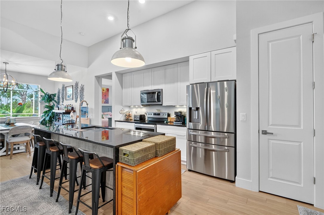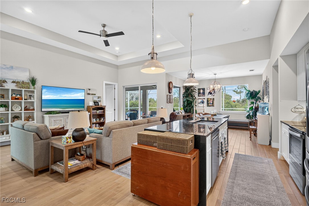 Impeccably maintained 3BR+Den, 3 Bath Pool Home in highly sought after Surfside area of SW Cape Coral. You will be wowed by the curb appeal of this 2020 built home with it’s lush mature landscaping, pavered driveway, and soaring entryway with double frosted glass doors. As you enter the home, you are awed by towering 11 foot tray ceilings and modern open concept great room with beautiful island chefs kitchen with granite waterfall counters, white shaker soft close cabinets, pantry, and high end stainless steel appliances. You will love entertaining as the large glass sliders open up to the best feature of the home. Your backyard private oasis includes a covered lanai with outdoor kitchen, full bathroom, and a heated saltwater pool with tanning/soaking ledge. Outside of the caged pool area is a large pavered patio with a fire pit to enjoy beautiful sunsets. Beyond the completely private backyard is a wooded nature preserve where you can often see soaring eagles, Blue Jays, and other wildlife. In addition to spectacular sunsets, the southwest exposure provides sun on your pool area all day in winter. Other features include plank tile floors throughout, louvered shutters on the windows, duel walk-in closets in the owner’s suite, lots of extra storage space with overhead racks in the garage, impact windows and doors for peace of mind, and low-cost transferable flood policy. The home has never flooded from any storm, and may qualify for a LOMA to eliminate the flood insurance requirement. Schedule a showing today before this beautiful home is gone.