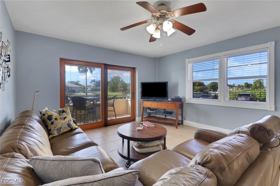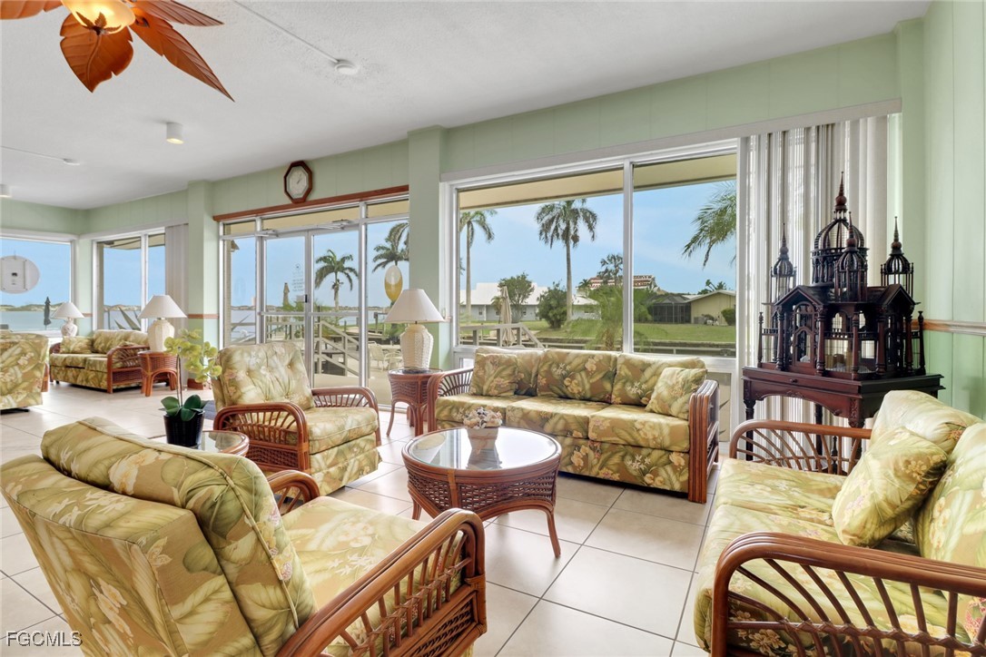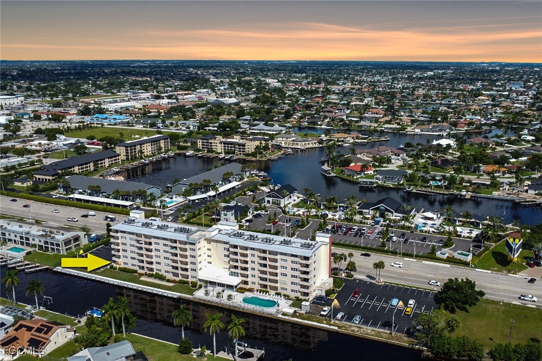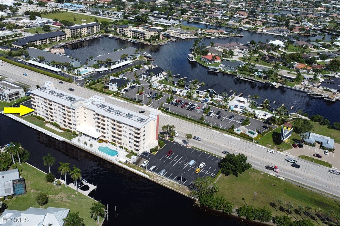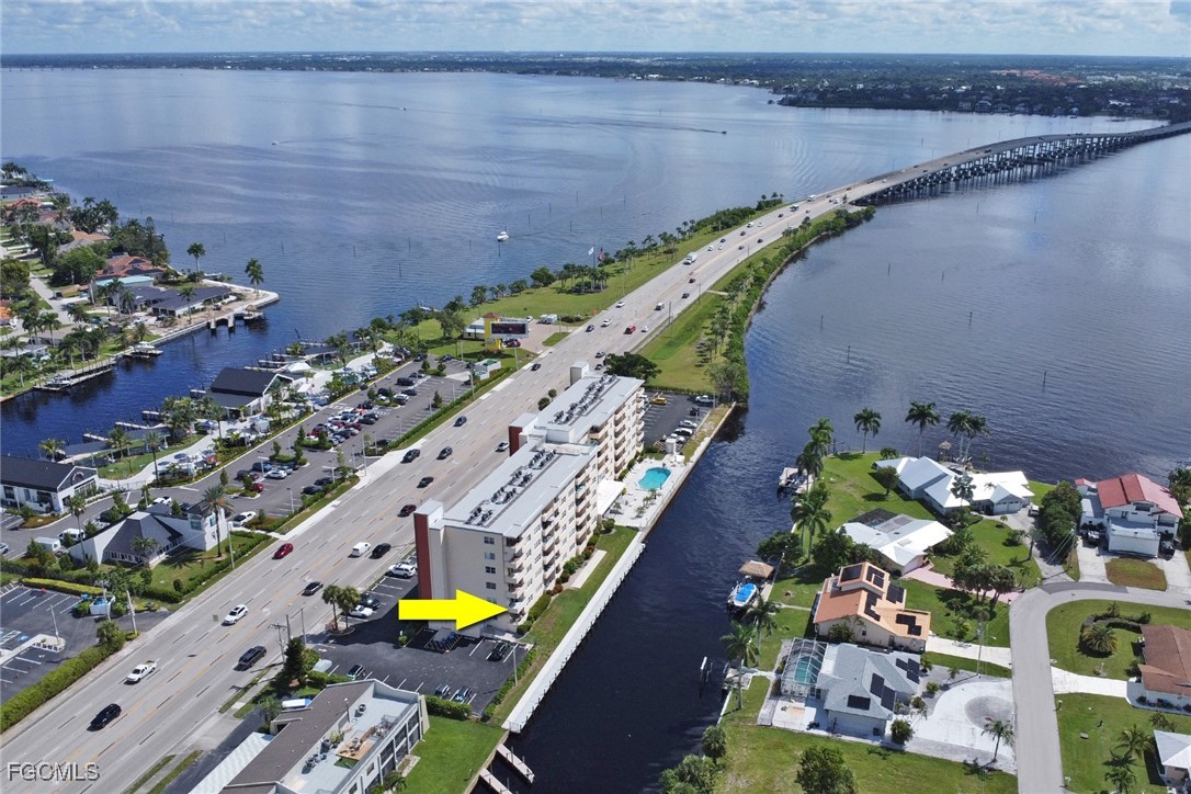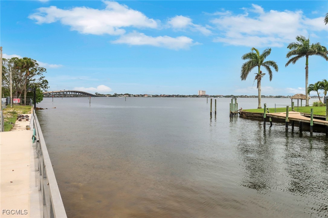 Experience Florida living at its best in this beautifully remodeled, furnished condo. Located on the first floor as a desirable end-unit, you'll enjoy extra natural light and the ultimate convenience: walking directly from your best parking space to your door with no elevator required. The unit features a brand-new water heater and new air conditioning that was installed in September 2025. Relax on your balcony or at the community's heated pool, both offering spectacular, south-facing views of the Caloosahatchee River and canal, providing incredible sunrises and sunsets. The building boasts a low condo fee, a community room, exercise room, billiards, shuffleboard, and new app-operated laundry machines on every floor, plus available boat docks and your own storage locker. The location is perfect, minutes from downtown Cape Coral, Fort Myers, about 20-30 minutes to Fort Myers Beach, and the “Slipaway Food Truck Park & Marina” is right across the street. For peace of mind, the state-mandated structural Milestone Inspection Report was successfully completed and submitted in 2024. Schedule your showing today!