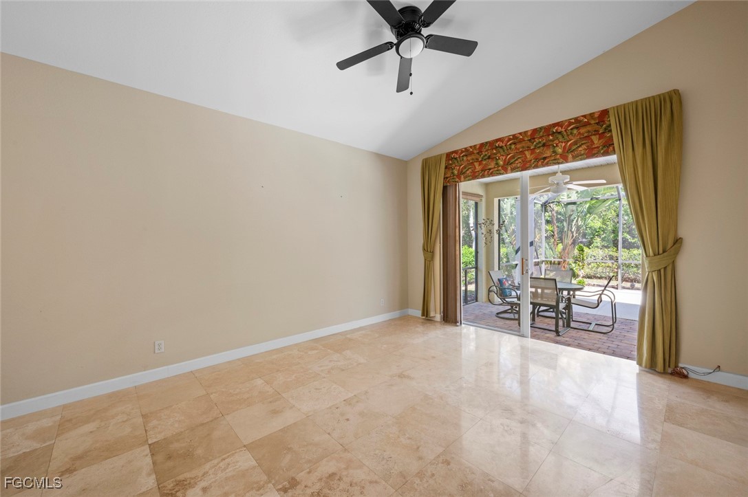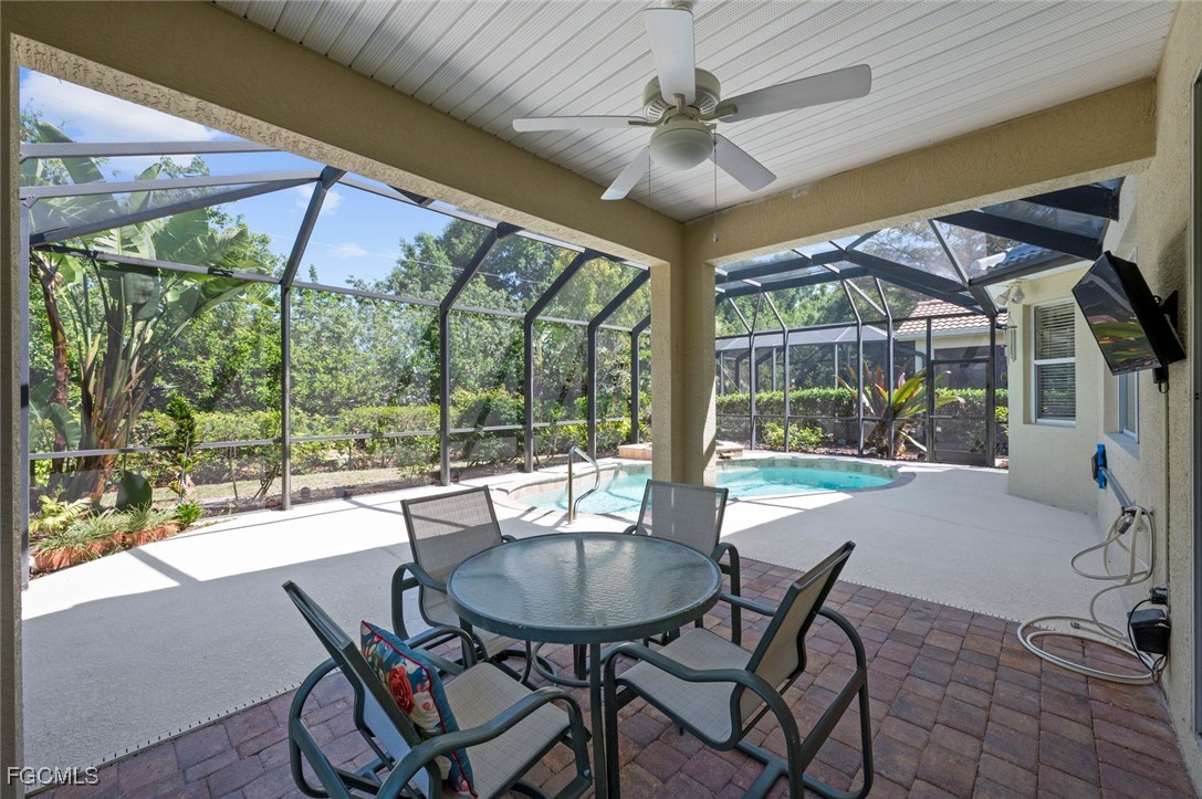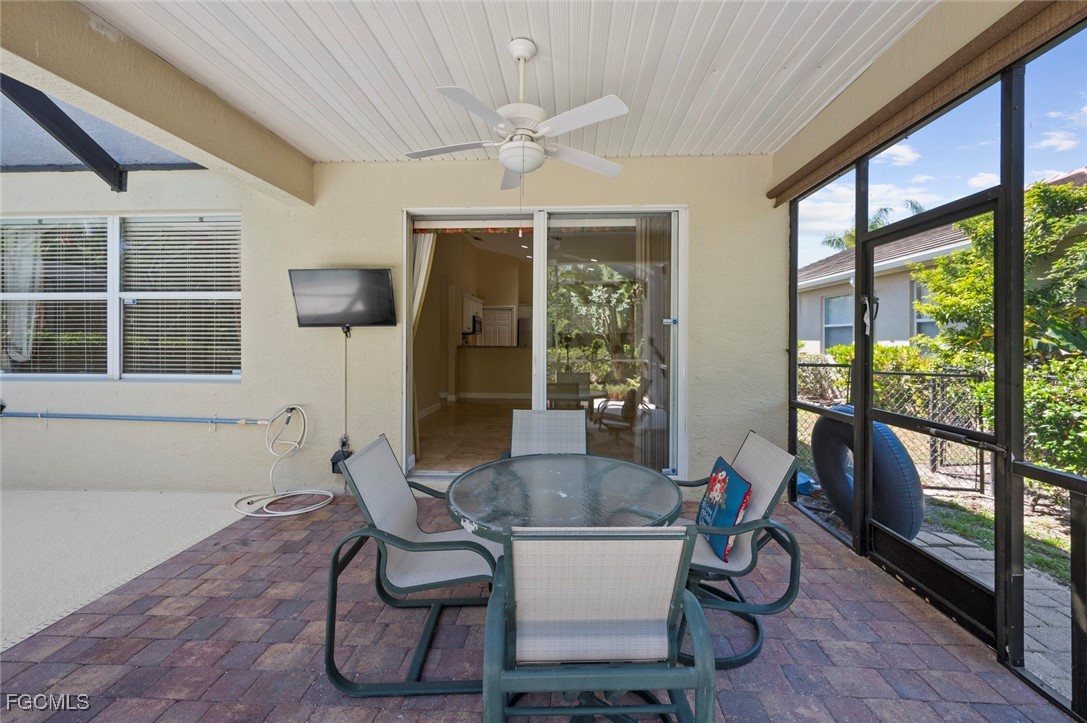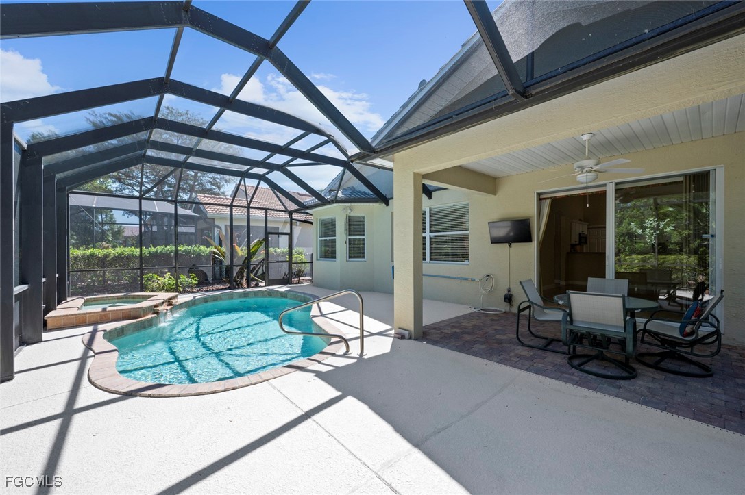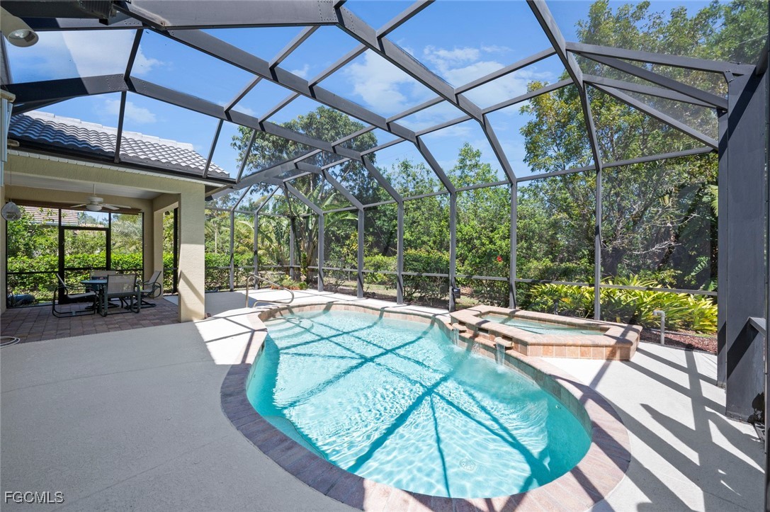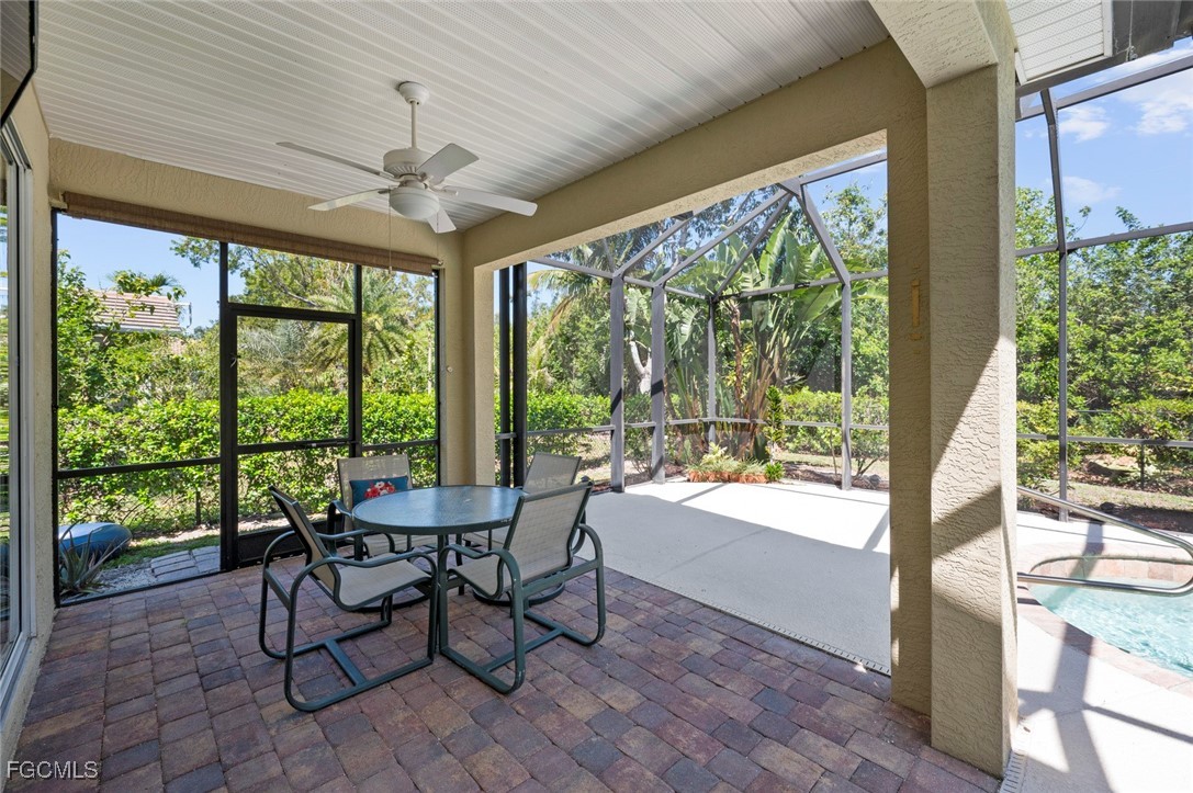 Step into Florida living at its best! This 3 bedroom + 2 bath pool and spa home is tucked away in the sought-after, gated community of Plantation Preserve - a hidden gem right along the lively Daniels Corridor. With its unbeatable location, you’ll be just minutes from dining, shopping, Twins Spring Training, I-75, RSW Airport, and all the best that Fort Myers has to offer. From the moment you arrive, this home makes a statement with its paver driveway, lush tropical landscaping, and brand-new tile roof. Inside, elegance meets comfort with travertine floors, crown molding, tray ceilings, and a wide-open split bedroom floor plan perfect for everyday living and entertaining. The kitchen is a chef’s delight with granite countertops, a breakfast bar, and brand-new stainless appliances. The primary suite is pure relaxation with his-and-hers closets, a charming custom window seat with built-in storage, and a spa-style bathroom featuring a garden tub, dual sinks, and a walk-in shower. Step outside and fall in love with your own private oasis: a screened lanai with sparkling pool and spa, framed by serene preserve views. Whether it’s morning coffee, an evening glass of wine, or hosting friends, this is the ultimate Florida backdrop. Other highlights include hurricane shutters, beautifully irrigated landscaping, and thoughtful details throughout. Plantation Preserve makes life easy with low HOA fees ($180/month) covering lawn care, gated access, and a community pool. Sidewalks and a nearby linear park make it perfect for biking, jogging, or evening strolls. Plus - a NO flood zone! This home is more than a place to live - it’s a lifestyle. Don’t miss your chance to make it yours!
