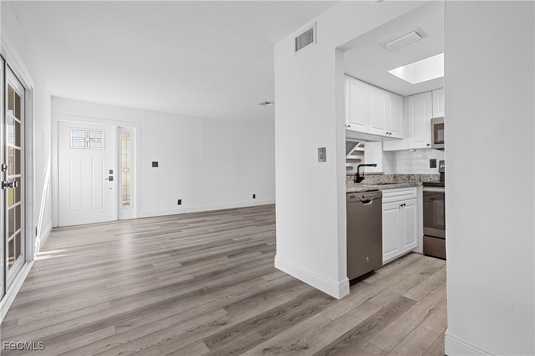 Price Reduced! Welcome to this charming 2 bedroom, 1.5 bath townhouse located in a highly sought-after 24/7 gated community just minutes from Cape Coral, downtown Fort Myers and the beaches. This home offers comfort, upgrades, and an unbeatable lifestyle with an abundance of amenities. Step inside to find a bright living space with a decorative feature wall, upgraded laundry, and a convenient pass-through from the kitchen to the dining and living areas. New LVP flooring flows on the main level of the home, while upstairs you’ll find two spacious bedrooms, including the primary bedroom with a striking accent wall. The screened lanai, updated with beautiful double doors, faces north for comfort and protection—this property has experienced no hurricane damage. Roof was replaced by the HOA in 2023. Enjoy a flexible lifestyle with year-round rental opportunities (30-day minimum), low HOA, low utility costs, and affordable homeowner’s insurance covering homeowner's contents and the lanai, as the HOA maintains the roof, exterior, garage walls, lawn care, and trash. A dedicated garage parking space with keypad access and additional storage adds convenience. This amenity-rich community offers 2 swimming pools, 3 tennis/pickleball courts, shuffleboard, and an on-site office. The main pool sits just behind this home with a sidewalk from your garage area. Ideally located near restaurants, shopping, medical offices, Fort Myers Beach, Barbara B. Mann Performing Arts Hall, and FSU, this home is perfect for first-time buyers, seasonal residents, college students or investors seeking strong short-term/long-term rental potential. No pets allowed (service animals permitted) Come see this well cared for community nestled on 36 acres today!