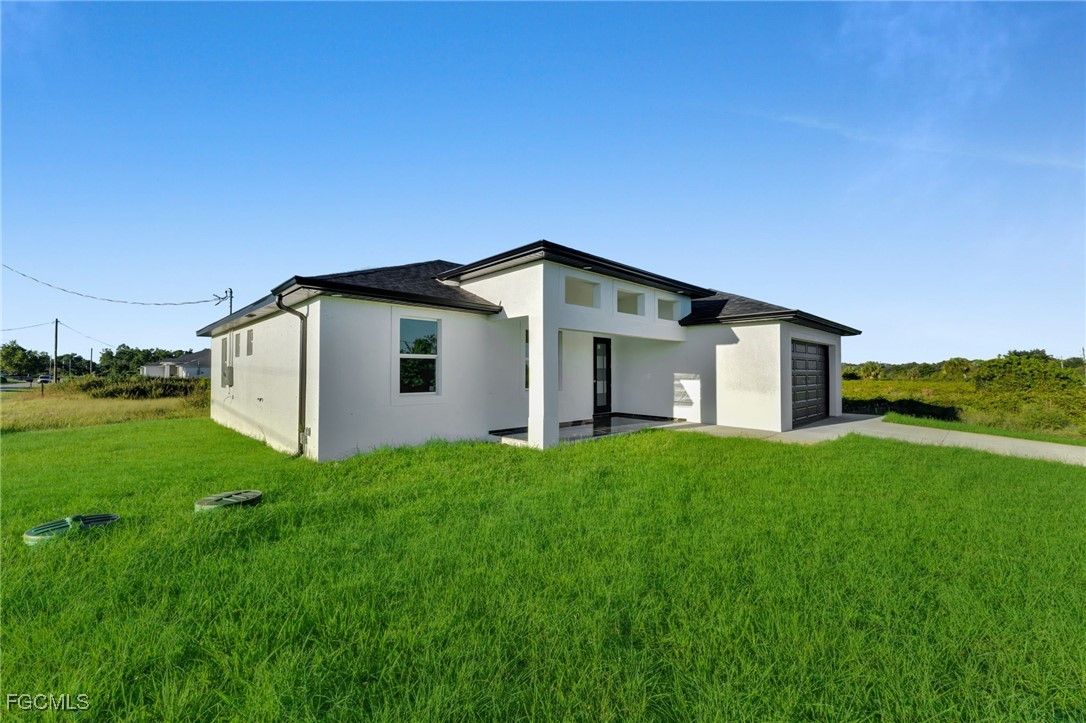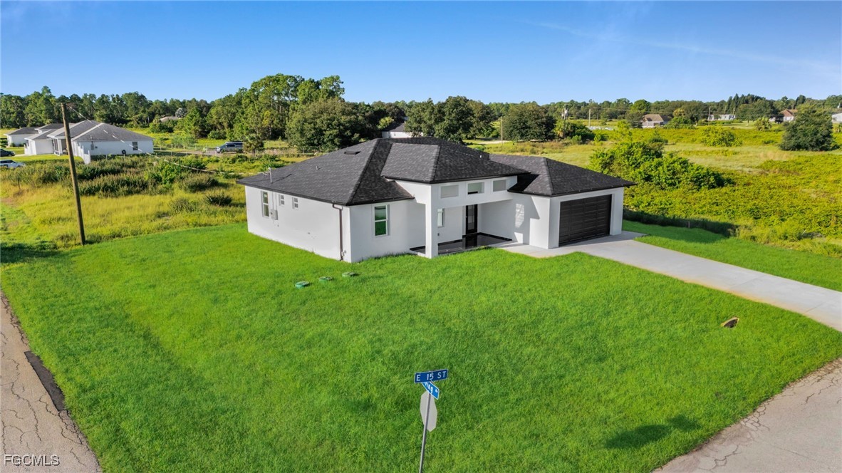 Brand-new 4BR/3BA with a modern open layout on a quiet Lehigh Acres street! The “1714 Model” centers around an airy great room with 10’4” tray ceiling flowing into a chef-ready kitchen and dining area—perfect for hosting. Split bedroom plan places the private primary suite (tray ceiling, walk-in closet, double-vanity bath) opposite two guest bedrooms plus a versatile 4th bedroom/den. Enjoy morning coffee on the covered lanai and the convenience of an indoor laundry and a true 2-car garage. Engineered for Florida living with impact features and 160-mph wind design, shingle roof with ventilation, and 200-amp service. Minutes to everyday amenities. Builder Incentives Through the Month of October!