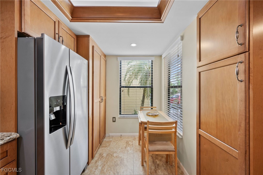 First-floor, beautifully updated FURNISHED TURNKEY condo at Parkside! The kitchen features newer KraftMaid ginger maple cabinetry, granite countertops, and stainless steel appliances (2023). Both bathrooms have been refreshed with newer cabinetry, and the primary ensuite includes a frameless glass shower and a walk-in closet with an organizational system. This 2-bedroom, 2-bath condo offers a spacious layout, an extra storage closet just outside the front door, and peace of mind with a brand-new roof (2025) and newer HVAC (2023) and full size, front-load GE washer and dryer (2019). Enjoy the ease of first-floor living and relax on the screened balcony overlooking peaceful greenery. Community amenities include a pool, tennis, pickleball, kayak/boat storage with docks to Hendry Creek and the Gulf, plus freshly paved roads. Walk or bike to Lakes Park for the farmer’s market, trails, playgrounds, and more—or take a short drive to SWFL’s beautiful beaches, shopping, dining, and entertainment. Health Park Hospital is also conveniently close. With nature, convenience, and modern updates all under $200,000, this home is an excellent value—ideal as a primary residence or rental investment!