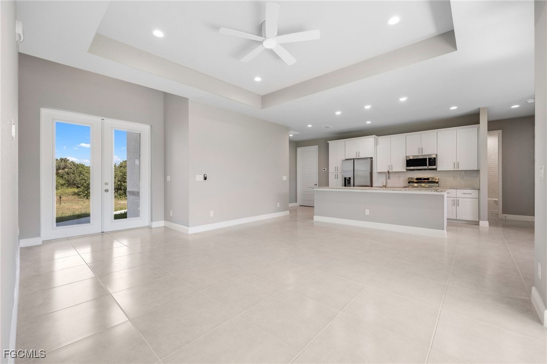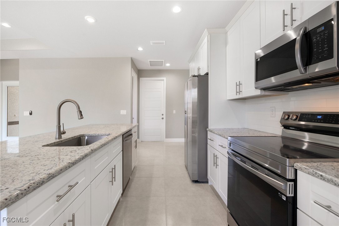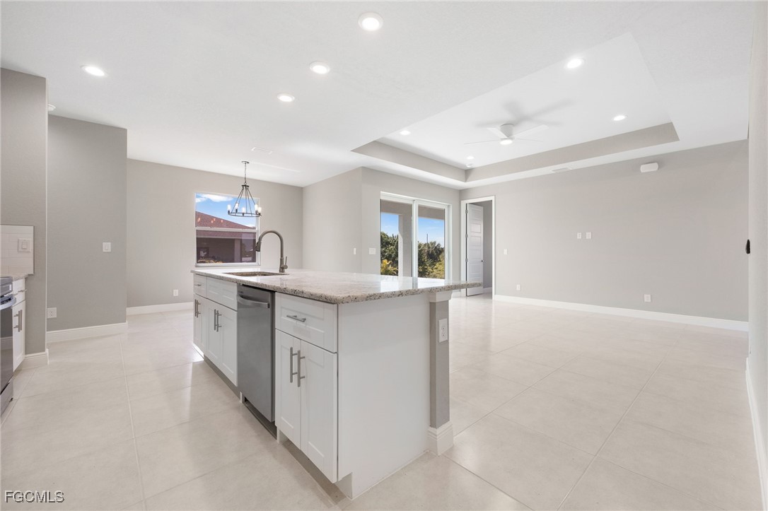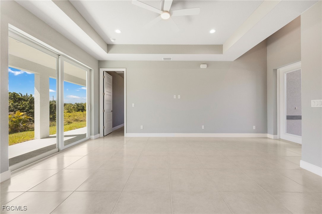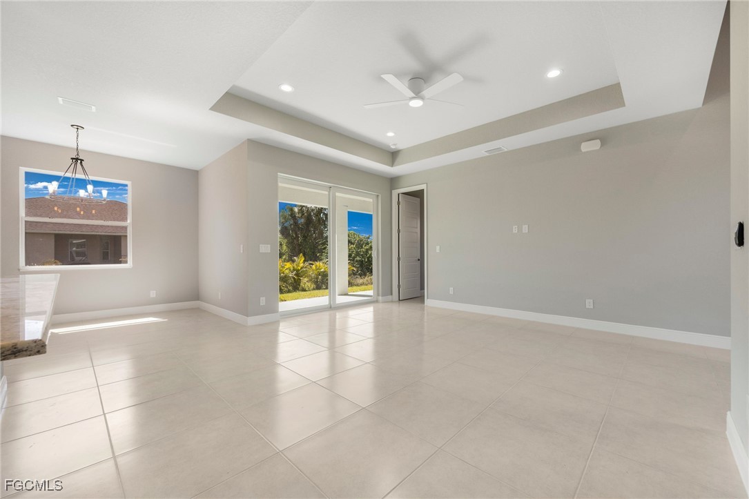 Welcome to this exquisite new construction home, where modern design meets ultimate comfort! Boasting 4 spacious bedrooms and 2 luxurious bathrooms, this home is a perfect blend of style and functionality. Step inside through the impressive double glass doors and be greeted by elegant tray ceilings and impact-resistant doors and windows that ensure both beauty and safety. The all-tile flooring throughout adds a touch of sophistication, while the floor-to-ceiling tiled master shower promises a spa-like experience every day. The interior is designed with 8' doors and an impressive 9'4" ceiling height, creating an open and airy atmosphere. The kitchen is a chef's dream, featuring stainless steel appliances, level 2 granite countertops, a large charming island, and soft-close cabinets. Dining in style is easy with a beautiful chandelier above the dining room. The master suite is a sanctuary, offering his and her walk-in closets, a large master shower, and double sinks in the master bathroom. Convenience is key with an automatic garage door opener, ceiling fans in the bedrooms and great room, an irrigation system, and front gutters. The laundry room with a sink near the garage adds practicality to daily living. Relax and entertain on the large lanai under trusses, perfect for Florida living. And don't forget, this home comes with a FREE 10-YEAR HOME WARRANTY for your peace of mind! ()The fourth bedroom is a versatile large office, perfect for working from home or creating your dream workspace. Don't miss out on this stunning new home!
