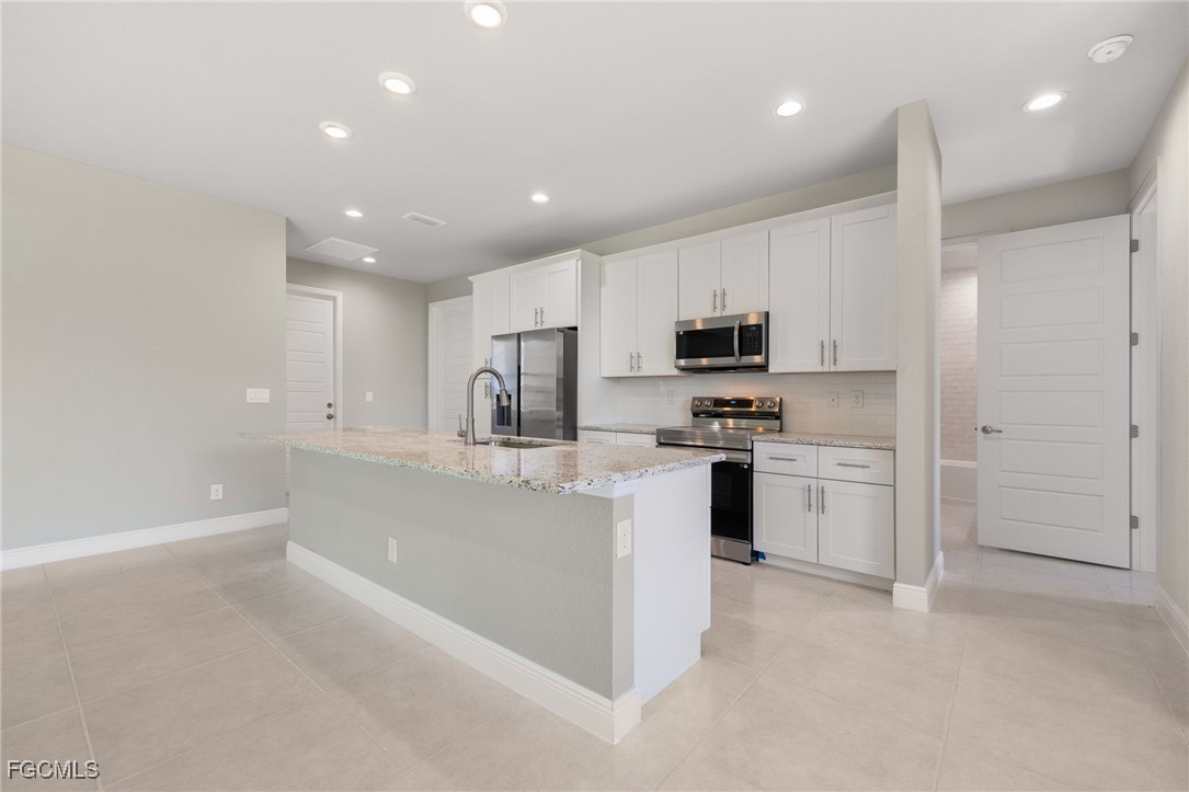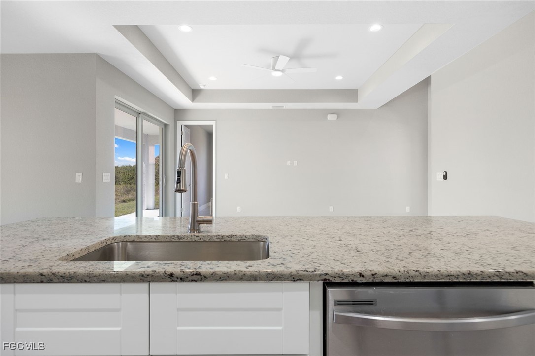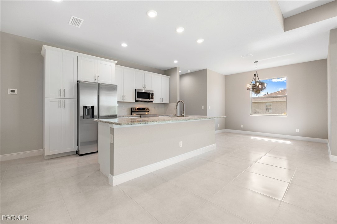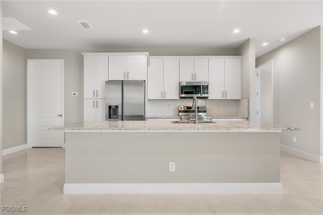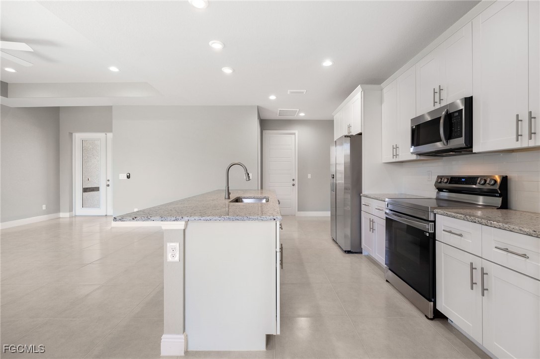 Welcome to this exquisite new construction home, where modern design meets ultimate comfort! Boasting 4 spacious bedrooms and 2 luxurious bathrooms, this home is a perfect blend of style and functionality. Step inside through the impressive double glass doors and be greeted by elegant tray ceilings and impact-resistant doors and windows that ensure both beauty and safety. The all-tile flooring throughout adds a touch of sophistication, while the floor-to-ceiling tiled master shower promises a spa-like experience every day. The interior is designed with 8' doors and an impressive 9'4" ceiling height, creating an open and airy atmosphere. The kitchen is a chef's dream, featuring stainless steel appliances, level 2 granite countertops, a large charming island, and soft-close cabinets. Dining in style is easy with a beautiful chandelier above the dining room. The master suite is a sanctuary, offering his and her walk-in closets, a large master shower, and double sinks in the master bathroom. Convenience is key with an automatic garage door opener, ceiling fans in the bedrooms and great room, an irrigation system, and front gutters. The laundry room with a sink near the garage adds practicality to daily living. Relax and entertain on the large lanai under trusses, perfect for Florida living. And don't forget, this home comes with a FREE 10-YEAR HOME WARRANTY for your peace of mind! ()The fourth bedroom is a versatile large office, perfect for working from home or creating your dream workspace. Don't miss out on this stunning new home!