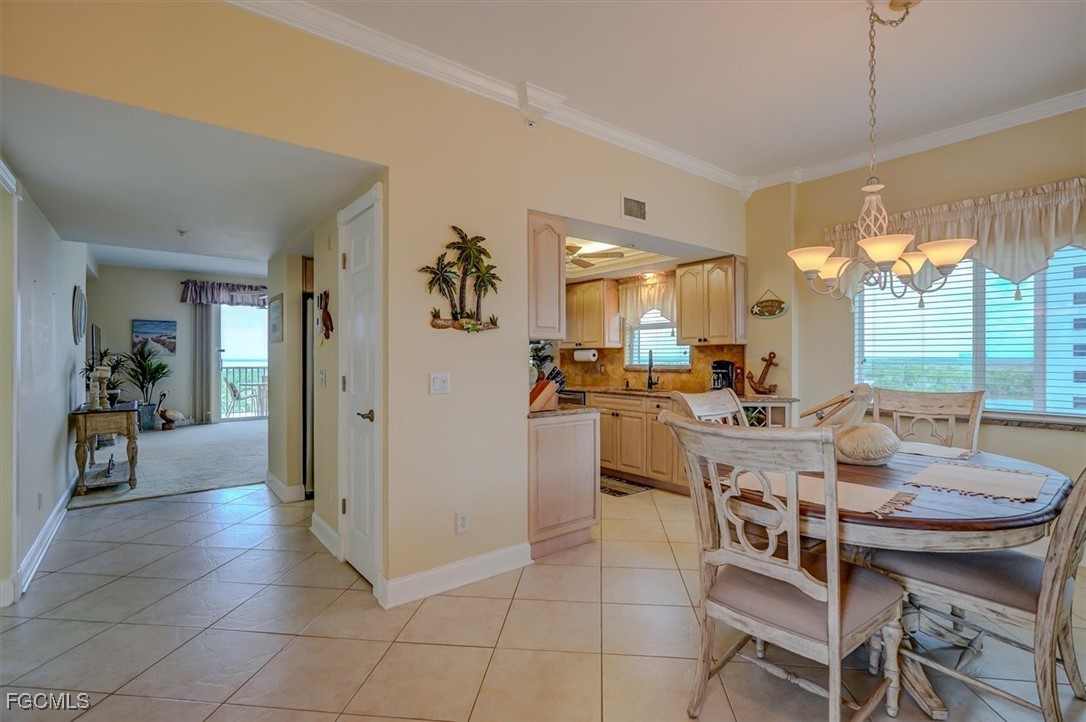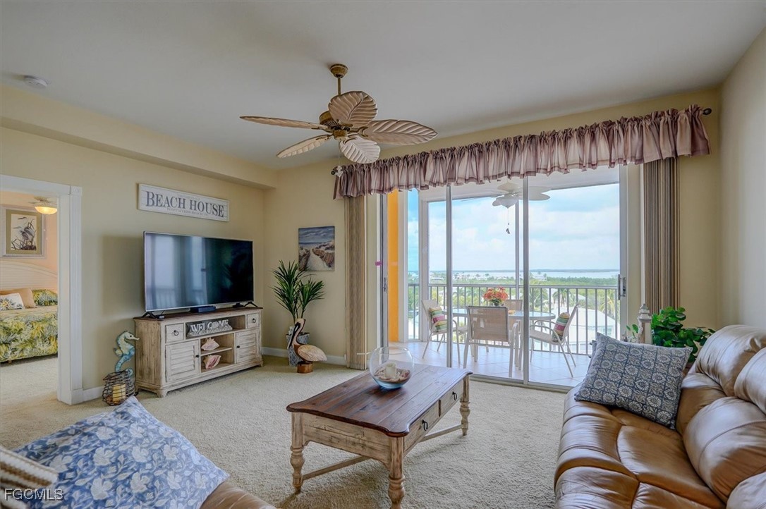 Catch all the waterfront action from this turnkey furnished CORNER, PENTHOUSE (6th floor) Casa Marina condo with UNDER-BUILDING PARKING! Estero Bay and main/intersecting canal views. Watch for dolphins and manatees and be entertained by the boating parade.