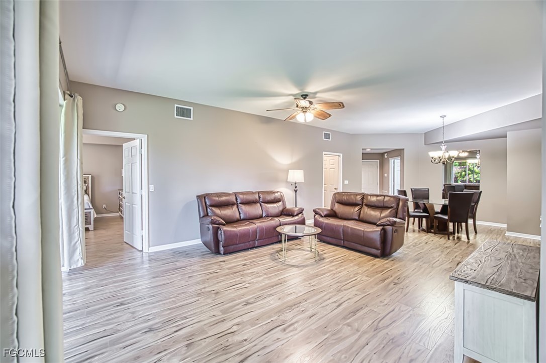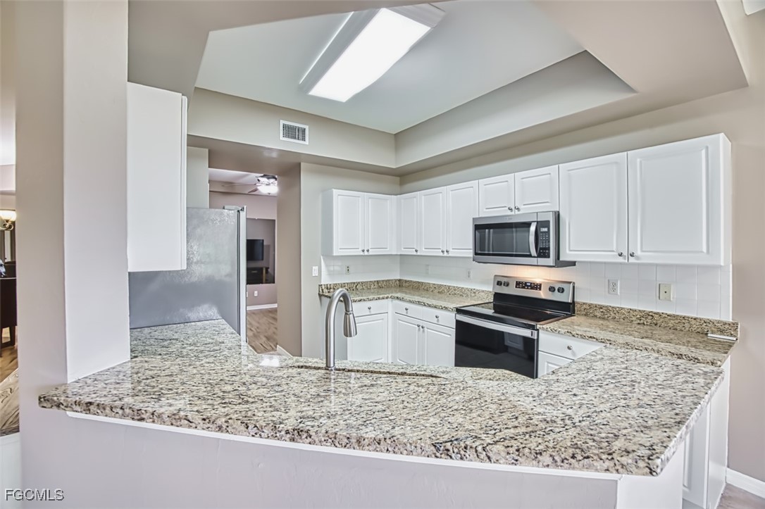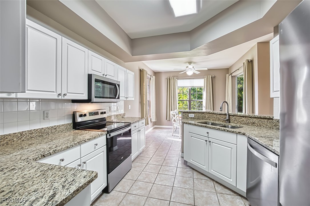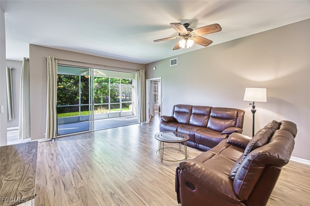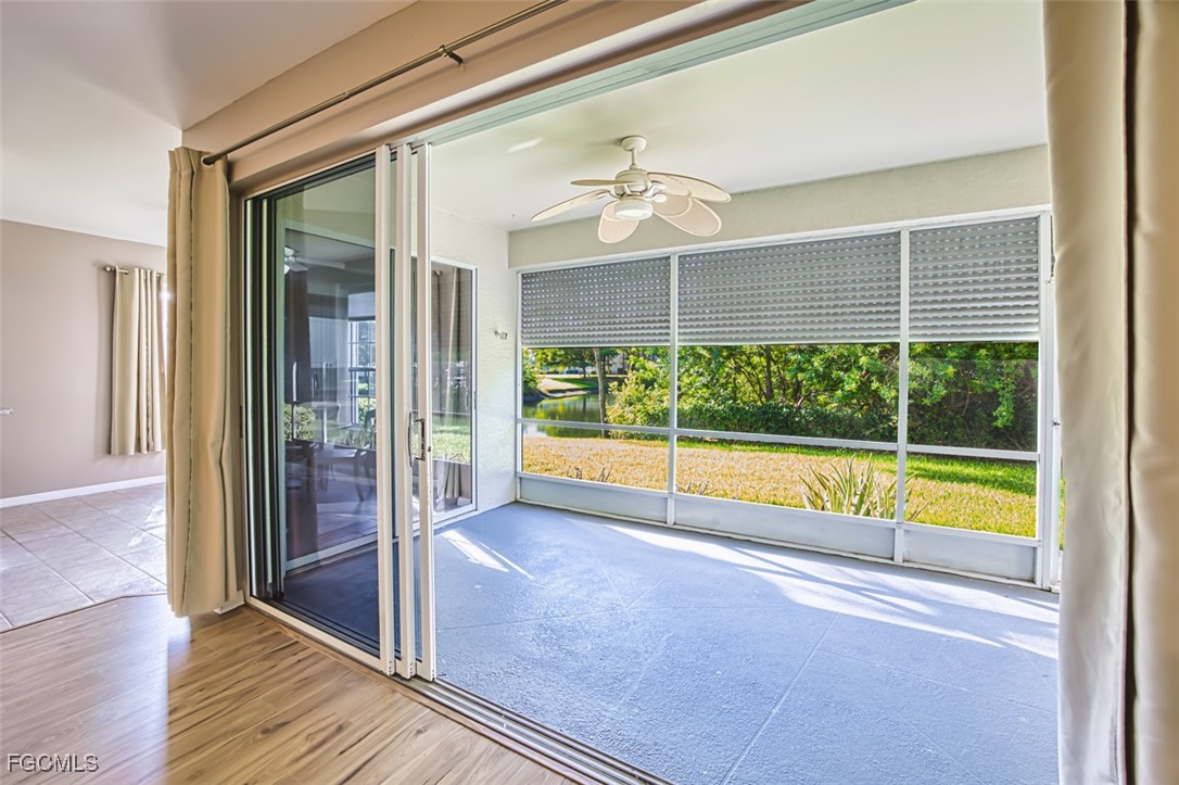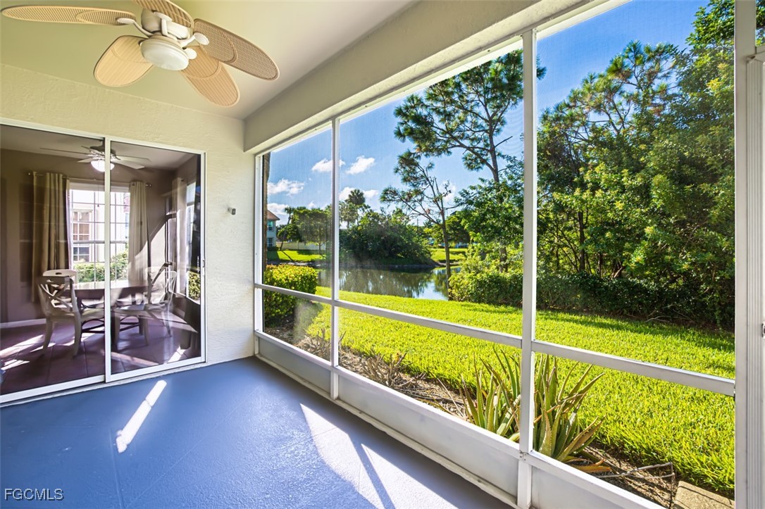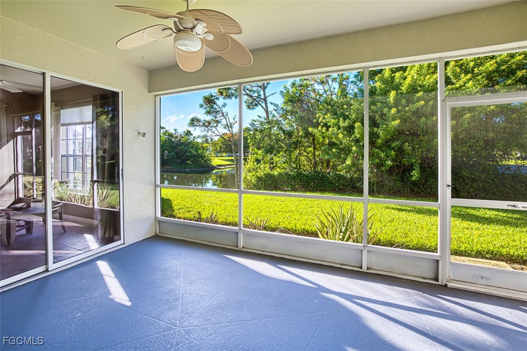 First-Floor Carriage Home in Avalon Bay – Minutes from the Beaches! Ideally situated just off Summerlin Road, this spacious and inviting 2 car garage home offers the perfect blend of comfort, convenience, and coastal living. With no stairs and an end-unit location, natural light fills the space from windows on the East, South and North sides. Featuring a 2-bedroom, 2-bath split floor plan plus a versatile flex room, this home offers both privacy and flexibility. The flex room—perfect for a home office, guest room, or workout space—can be easily closed off with pocket doors for added privacy. Relax and unwind on the large screened lanai with peaceful water views, protected by electric roll-down and accordion storm shutters. The 2-car garage includes extra space for your beach, biking, or fishing gear. Both bedrooms offer ensuite baths for ultimate comfort and convenience, with dual sinks and a soaking tub and shower in the master. Recent updates include New AC and lines (2024), Granite countertops, sink, and lower kitchen cabinets (2024), New laminate flooring (2025). Freshly painted, this clean, move-in-ready home is perfect for seasonal or year-round living. Avalon Bay is a beautifully maintained community that had No Flooding, no-CDD, No City Tax, and replaced all roofs in 2021. Just a short stroll to the clubhouse pool residents enjoy access to tennis courts, spa, fitness center, billiards room, and more. Live minutes from Sanibel and Fort Myers beaches, Lakes Park, HealthPark Medical Center, Golisano Children’s Hospital, the public library, farmers markets, top restaurants, and Lee County’s extensive bike trail system.