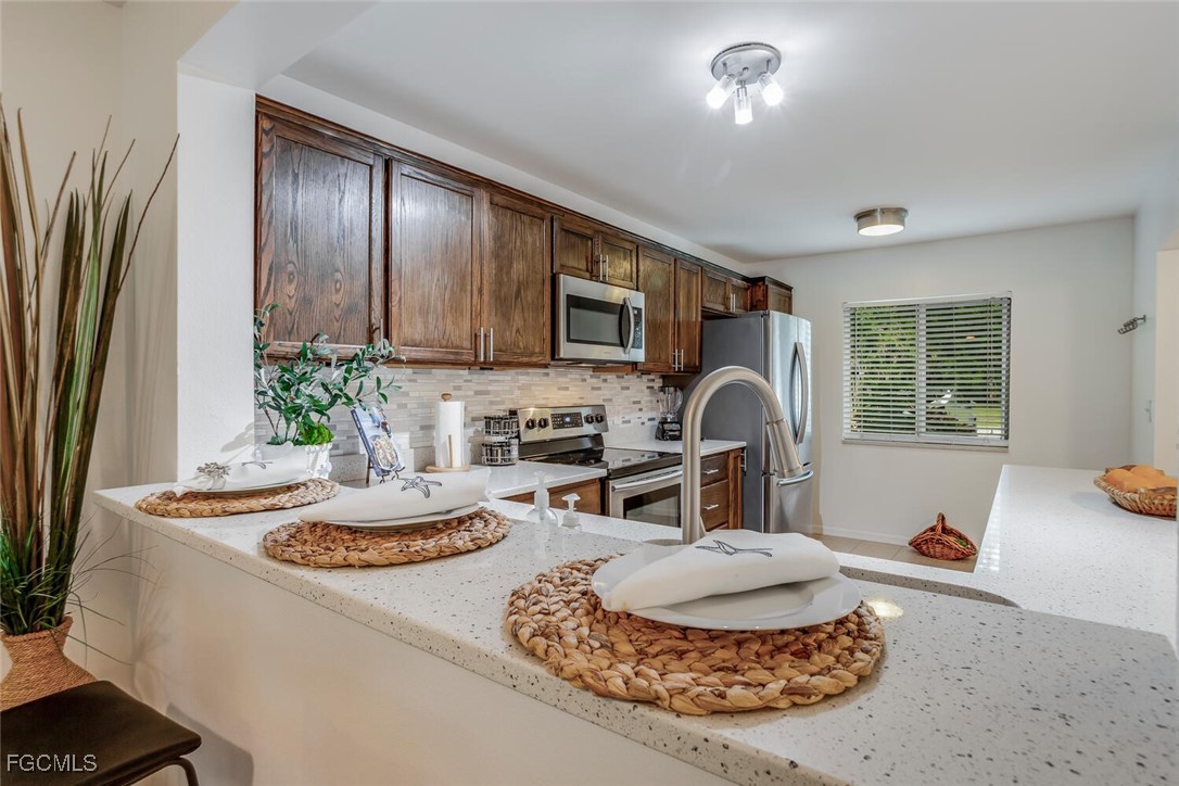 Welcome to your MODEL HOME in this slice of paradise with a serene water view in the secluded community of Timber Lake! PERFECTLY LOCATED NEAR EVERYTHING and set back with tranquility for the BEST OF BOTH WORLDS! This beautifully updated first-floor condo offers the perfect blend of comfort, convenience, and natural beauty. With 1,087 square feet under air, this 2-bedroom, 2-bathroom home provides easy living with no stairs, making it an ideal choice for anyone seeking a low-maintenance, accessible lifestyle in one of Naples’ best-kept secrets. Step inside to discover a thoughtfully remodeled kitchen that opens to the spacious living and dining area—shows like a model perfect for entertaining guests or enjoying peaceful evenings at home. The open floor plan flows seamlessly out to the screened lanai, where you’ll enjoy breathtaking sunset views over the sparkling lake. With southern exposure, the home is filled with warm, natural light throughout the day, creating a cheerful and inviting atmosphere. This condo was designed with peace of mind in mind, featuring all hurricane impact windows and doors for maximum storm protection and energy efficiency. Plus, the brand-new roof adds long-term value and eliminates one of the biggest worries for a new homeowner. Just steps away from the heated pool, clubhouse, and tennis court—giving you the resort-style amenities you want without the high price tag. Timber Lake is a quiet, tucked-away community with only 60 residences, surrounded by native pines and natural Florida beauty. It offers a relaxed, friendly atmosphere while still being close to everything Naples has to offer, including beautiful beaches, top-rated golf courses, shopping, dining, and more. Whether you're looking for a seasonal getaway or a full-time residence, this move-in-ready condo is an incredible opportunity to enjoy the Naples lifestyle at an affordable price. Don’t miss your chance to own in this charming lakefront community—first-floor units with this level of quality and views don’t come around often!