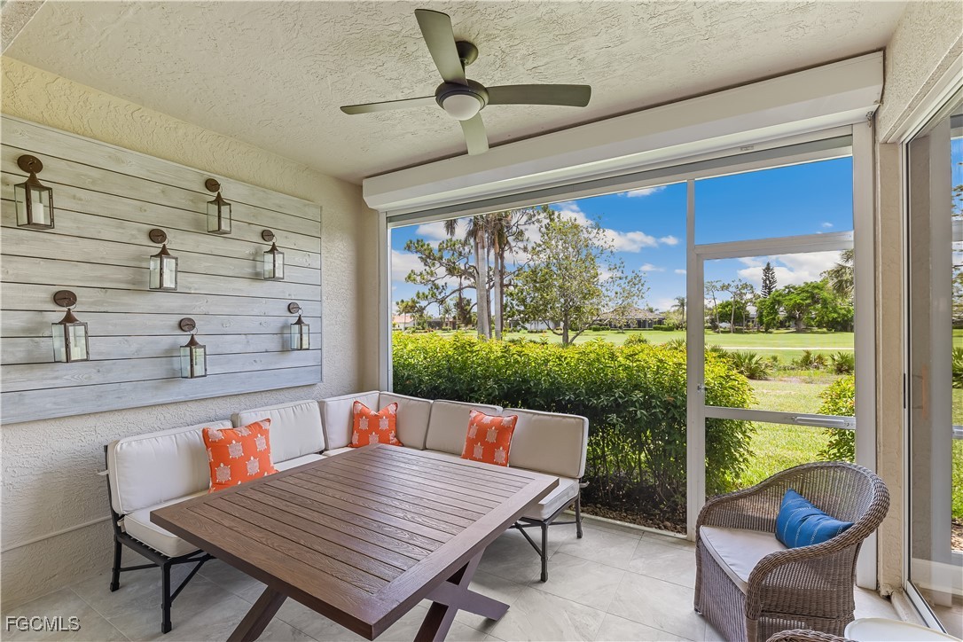 bright with a wall of windows and doors facing the golf course. The spacious kitchen offers center island, breakfast bar and breakfast nook overlooking the front lanai with stainless appliances and granite counter tops. The elegant primary bedroom has sliding glass doors out to the back lanai with a gorgeous view of the golf course. Not only has the home been fully renovated but also boasts new hurricane rated windows (2024), new roof (2024), hurricane shutters, hardwood flooring throughout and a Sonos Sound System. Enjoy the Florida lifestyle with this BUNDLED Golf community and a wealth of amenities, including pickleball, tennis courts, a resort-style pool, restaurant, bar and an exercise room. Located with easy access to I-75 and Daniels Corridor, minutes from beaches, baseball parks, and more. Olde Hickory, a place where every day feels like a vacation! Welcome home!