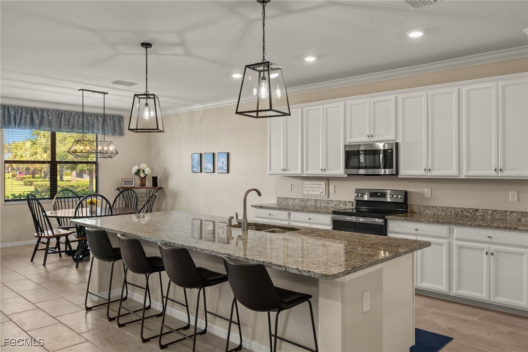 Located in the heart of Estero with resort-style amenities, this opportunity tends to be hard to beat. This lake view property is known as the Summerville floor plan which is an open concept, 1-story home with a 3-car garage. Inside offers just over 2,400 square feet which includes 3 spacious bedrooms, 3 full bathrooms and a den that many will also utilize as a bedroom. With this layout you'll notice the living area seamlessly flows into the kitchen and eating area. Within that very kitchen, you have stainless steel appliances, sleek granite countertops, an oversized island/ breakfast bar, walk-in pantry, and ample cabinet space. On it's own side of the home, you have your spacious primary suite that looks out and over the lake. Features in there include a bathroom with a walk-in glass shower, a separate tub, private bathroom, walk-in closet, and dual sinks. To give ample privacy to everyone residing, this home hosts two other guest rooms and a den on the other side of the home. Stepping outside onto your screened in lanai, you have the luxury of enjoying the long lake views for as long as you'd like! ALSO - You have plenty of room to put in your own custom pool! Outside of your home and within the gates of The Place at Corkscrew amenities include a resort style pool with 100-ft long water slide, café and marketplace, kids club, playground, tennis courts, pickleball courts, two story fitness center, basketball court and more! Come see why The Place has been one of the best selling communities. Your neighbors are waiting!