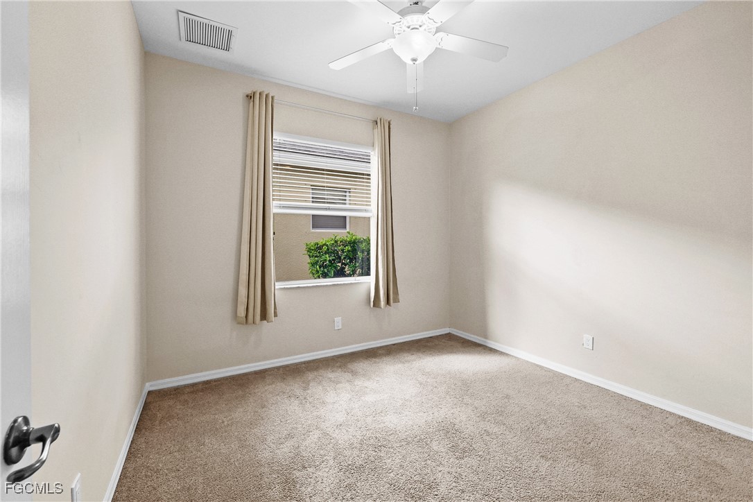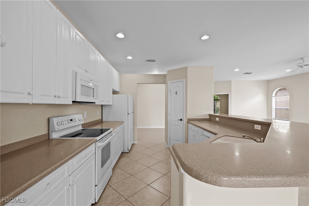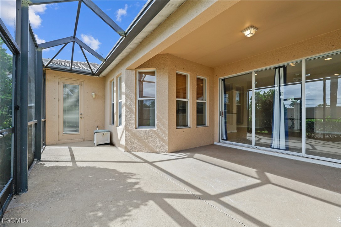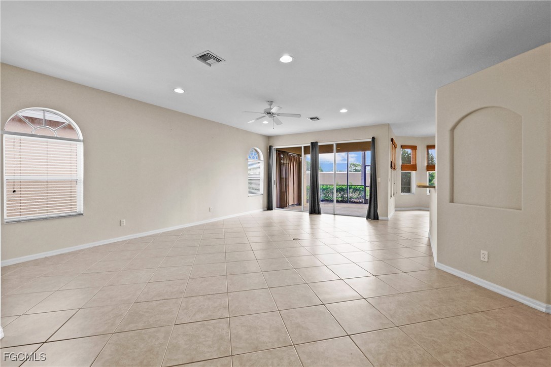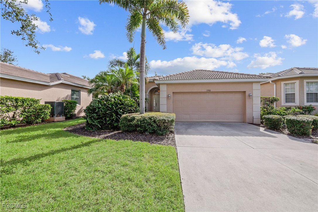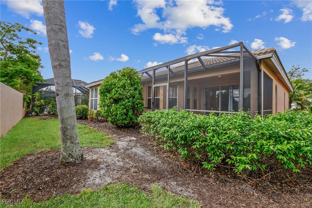 Welcome to this exceptional home in the gated Colonial Shores Community! This single-story home features 3 bedrooms + a spacious den, 2 full baths, and approximately 2,019 square feet of living space. Built in 2004, the property includes a 2-car attached garage. There is a screened lanai perfect for lounging or enjoying dinners and morning coffee. Inside, enjoy an open floor plan with light tile flooring throughout the main areas, a large breakfast nook, and a formal dining area. The master suite boasts dual closets, one of which is a walk-in closet. The master bathroom has a garden tub, separate shower, and dual sinks. French doors separate the spacious den/office from the Living room. Work in peace with beautiful natural light. The guest wing features a private hallway and pocket door, two oversized bedrooms and a full bathroom. Residents also gain access to community amenities such as clubhouse, pool, fitness center, and more, just steps away. The home is minutes away from sugar sand beaches, shopping, dining, and RSW Airport, this home offers both style and convenience. Schedule your showing today!