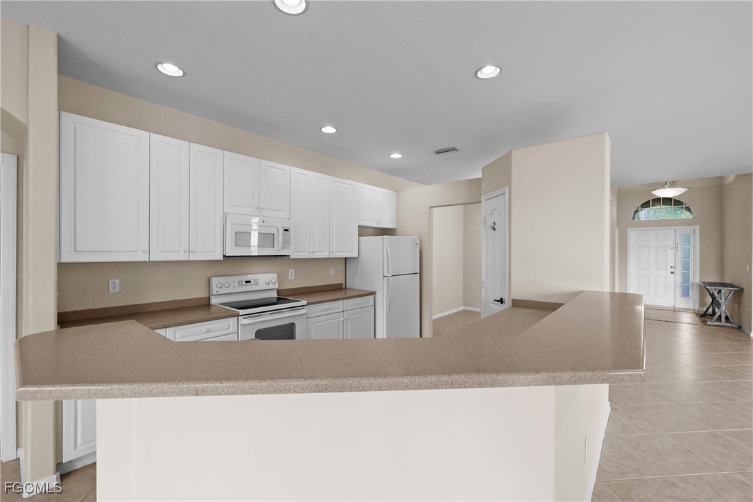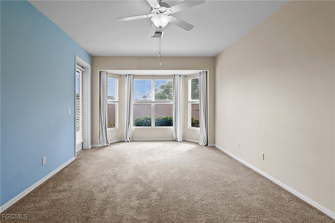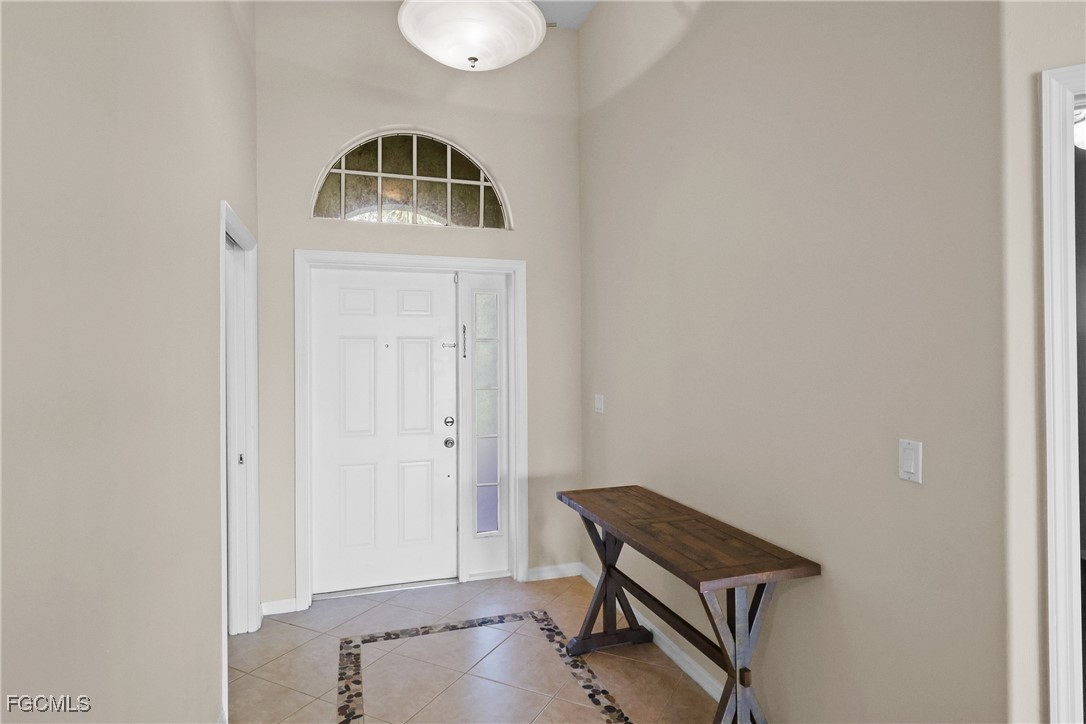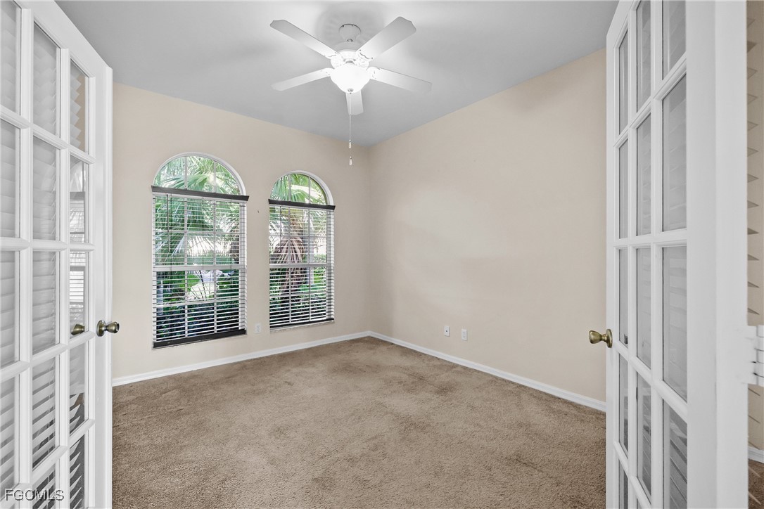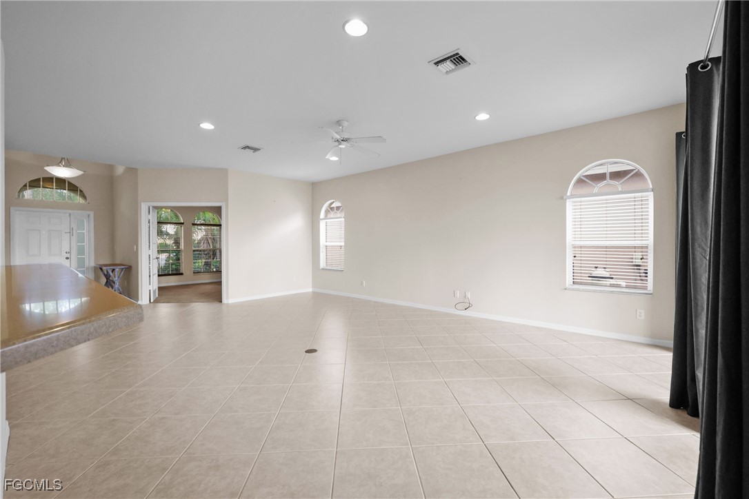 Welcome to this exceptional home in the gated Colonial Shores Community! This single-story home features 3 bedrooms + a spacious den, 2 full baths, and approximately 2,019 square feet of living space. Built in 2004, the property includes a 2-car attached garage. There is a screened lanai perfect for lounging or enjoying dinners and morning coffee. Inside, enjoy an open floor plan with light tile flooring throughout the main areas, a large breakfast nook, and a formal dining area. The master suite boasts dual closets, one of which is a walk-in closet. The master bathroom has a garden tub, separate shower, and dual sinks. French doors separate the spacious den/office from the Living room. Work in peace with beautiful natural light. The guest wing features a private hallway and pocket door, two oversized bedrooms and a full bathroom. Residents also gain access to community amenities such as clubhouse, pool, fitness center, and more, just steps away. The home is minutes away from sugar sand beaches, shopping, dining, and RSW Airport, this home offers both style and convenience. Schedule your showing today!