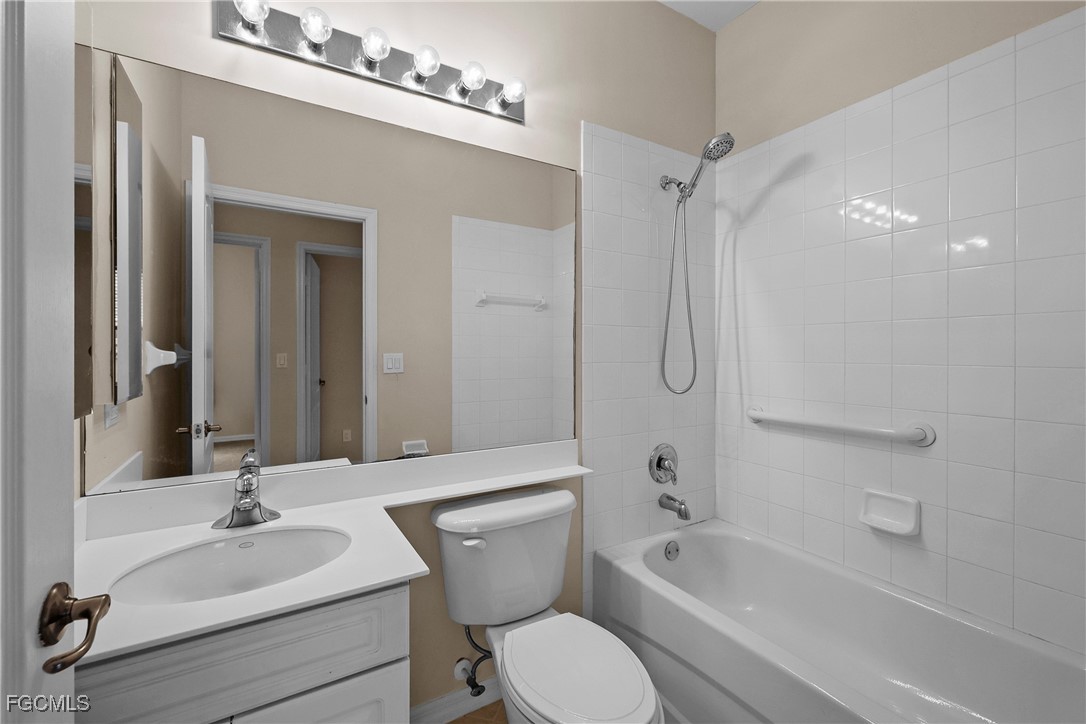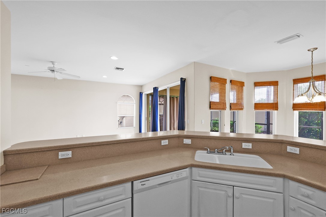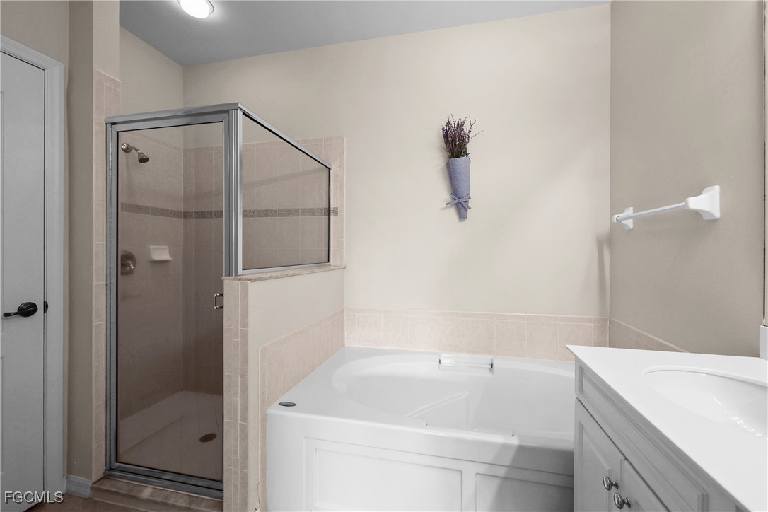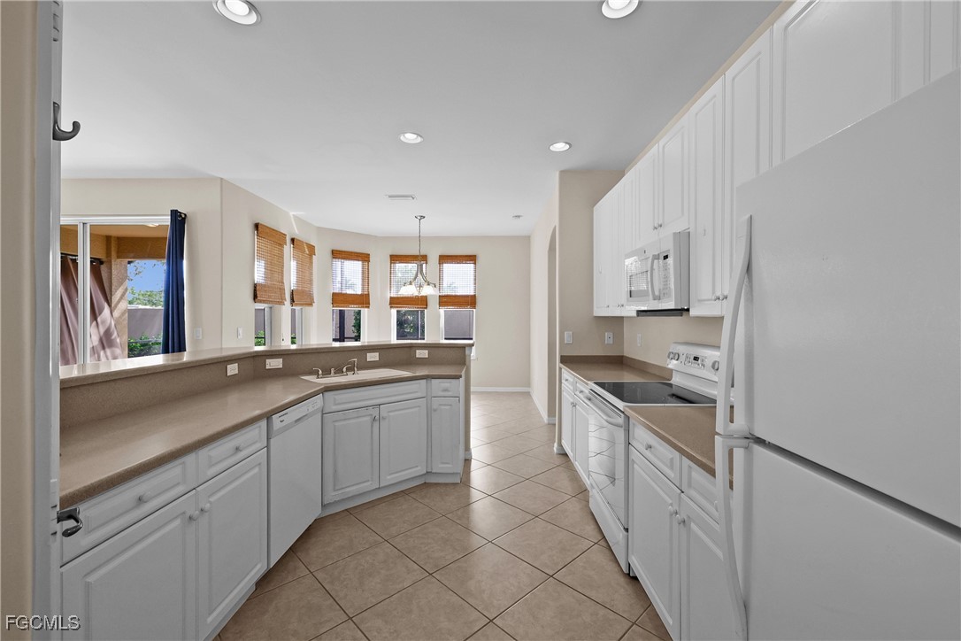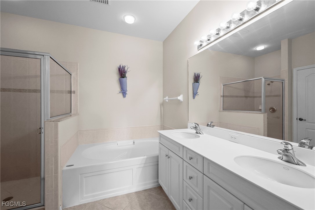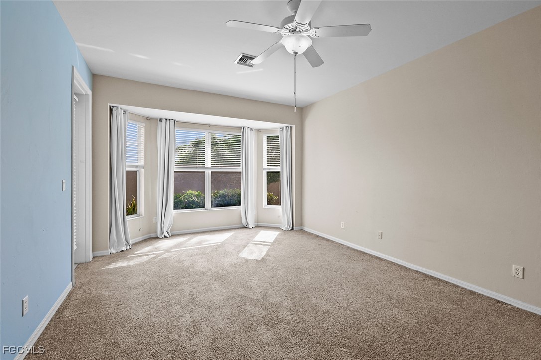 Welcome to this exceptional home in the gated Colonial Shores Community! This single-story home features 3 bedrooms + a spacious den, 2 full baths, and approximately 2,019 square feet of living space. Built in 2004, the property includes a 2-car attached garage. There is a screened lanai perfect for lounging or enjoying dinners and morning coffee. Inside, enjoy an open floor plan with light tile flooring throughout the main areas, a large breakfast nook, and a formal dining area. The master suite boasts dual closets, one of which is a walk-in closet. The master bathroom has a garden tub, separate shower, and dual sinks. French doors separate the spacious den/office from the Living room. Work in peace with beautiful natural light. The guest wing features a private hallway and pocket door, two oversized bedrooms and a full bathroom. Residents also gain access to community amenities such as clubhouse, pool, fitness center, and more, just steps away. The home is minutes away from sugar sand beaches, shopping, dining, and RSW Airport, this home offers both style and convenience. Schedule your showing today!