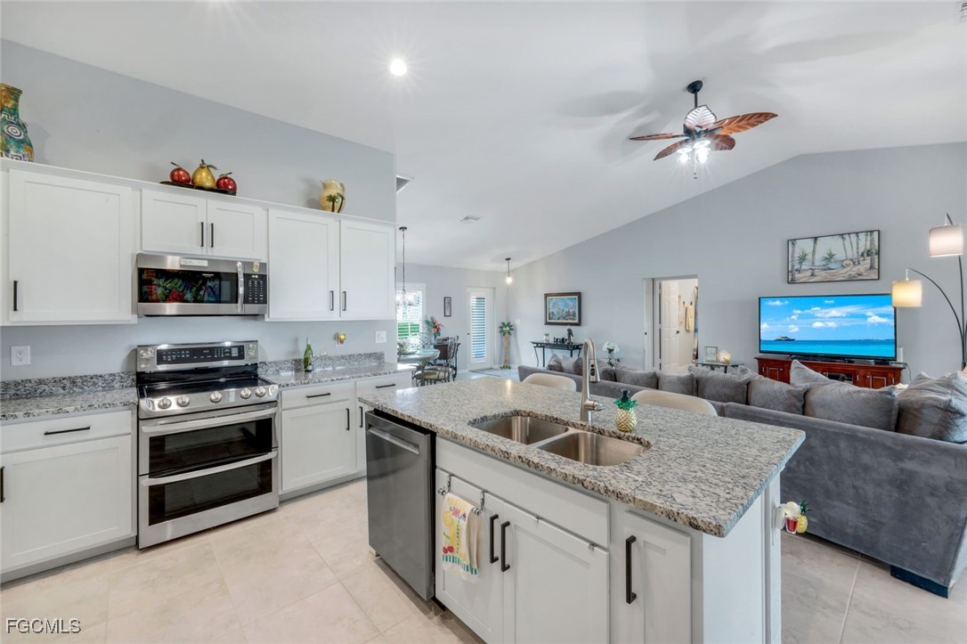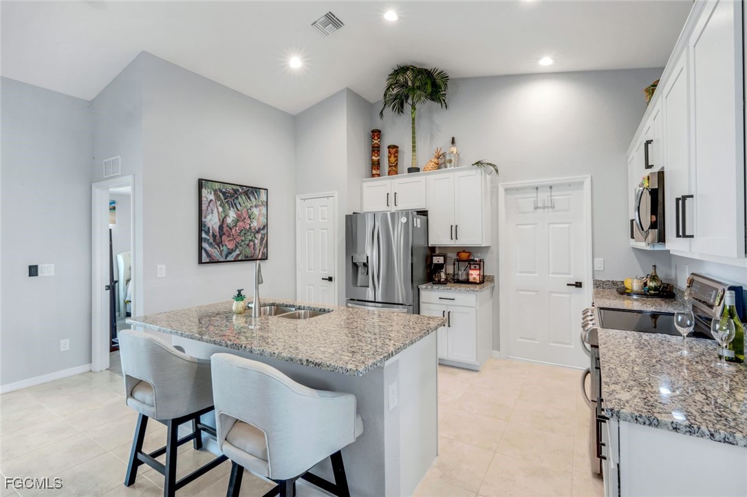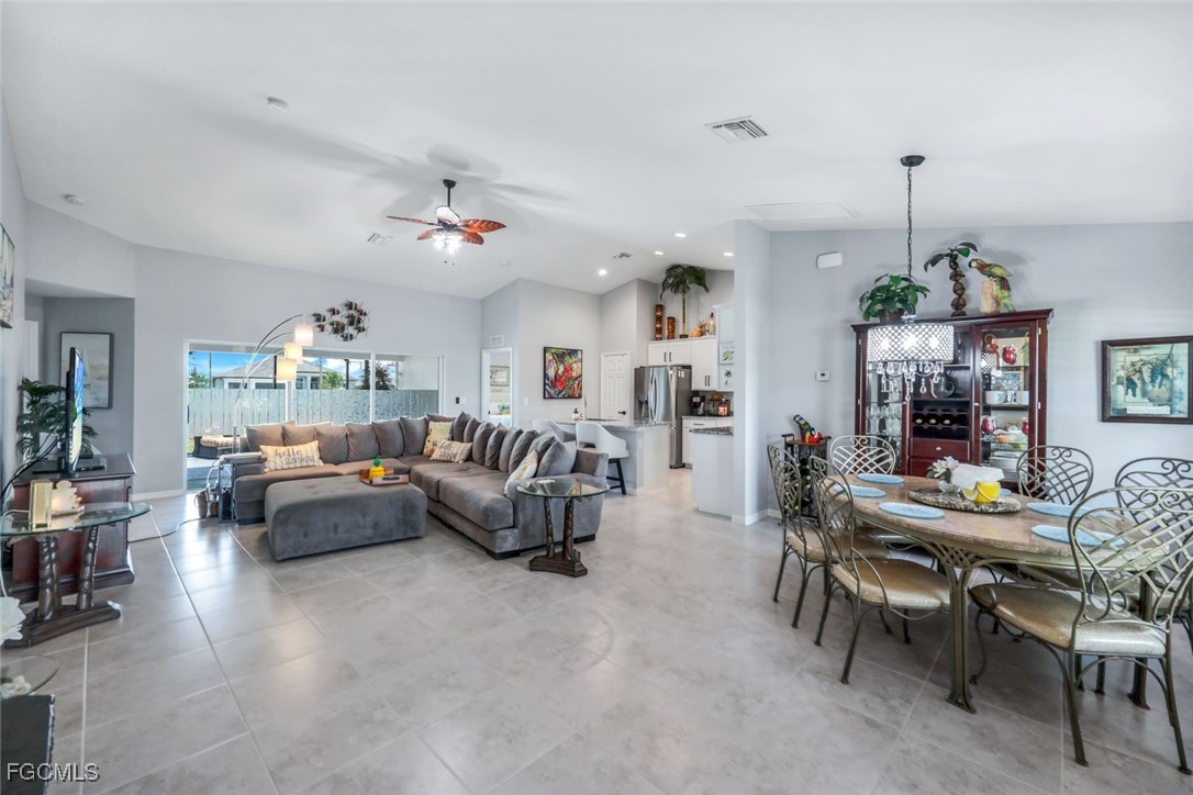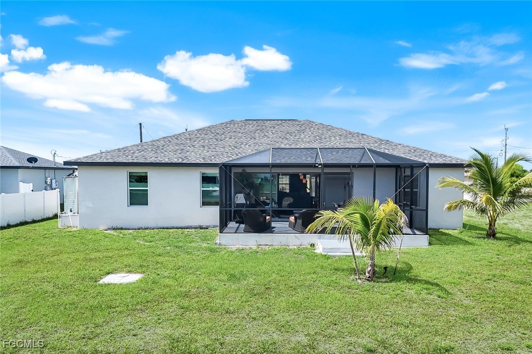 Better Than New – Upgraded 4-Bedroom, 3-Car Garage Home with Designer Touches in NW Cape Coral! The adjacent lot at 4321 NW 34th Ln is also available for purchase separately—imagine the possibilities! This is not your typical builder-grade home— loaded with upgrades and pride of ownership throughout. From the moment you arrive, you’ll notice the difference: a brick paver driveway, custom lighting, and lush landscaping set the tone for what’s to come. Step inside and be impressed by plantation shutters, elegant upgraded lighting, and energy-efficient LED recessed can lights in the kitchen and baths. The open kitchen is a showstopper with upgraded appliances (double oven range, quiet dishwasher, double-door refrigerator—all included and photographed for detail), a center island, pantry, and sleek upgraded cabinet hardware. This immaculately maintained 4-bedroom, 2-bath home offers a split-bedroom layout for privacy, and every door features enhanced handles and hardware for a refined finish. The home is also equipped with a whole-house reverse osmosis system (just 3 years old), ensuring clean water throughout. The outdoor living space is a true retreat—enjoy your morning coffee or evening glass of wine on the extended 10x17 under-roof lanai, complete with added ceiling fan, and step out to the spacious 12x24 caged patio—ideal for entertaining, lounging, or future outdoor kitchen. The backyard has room for a dream pool, a playground for the kids, or room for your pets to roam free. Additional features include ceiling fans throughout, sealed grout on tile flooring for like-new appearance, and a 3-car garage for added convenience and storage. Located just off Burnt Store Rd., you’re just minutes from grocery stores, gas stations, local boat ramps, and Crystal Lake Park. A brand-new neighborhood playground is just two streets away, and world-class beaches, golf, dining, and entertainment are just a short drive. Bonus: Don’t miss this one-of-a-kind opportunity to own a truly standout home in one of NW Cape Coral’s fastest-growing neighborhoods.