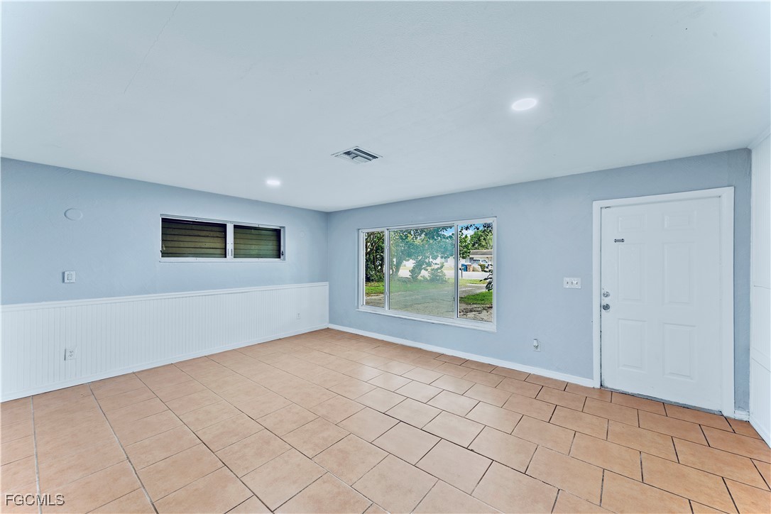 Welcome to this recently REMODELED & updated 4/2 + BONUS room home with CITY WATER that is nestled away on an oversized corner lot surrounded by mature landscaping. It has been freshly painted & spotlighting a newer (2021) DIMENSIONAL shingle roof, (2021) HVAC system, newer STAINLESS STEEL appliances, appealing Wainscot paneling & chair rail, and has porcelain tile plus newer luxury vinyl flooring in bedrooms. This spacious split floor plan highlights refreshing newer vast sliding windows, a desirable tiled soaking tub, custom mirrors, recessed lighting, a favorable Jack & Jill door, and a generous 10 by 20 storage shed with plenty of storage. This peaceful property is conveniently located just minutes from all major amenities & a quick commute to Fort Myers. Schedule your showing today! **property is under video surveillance**