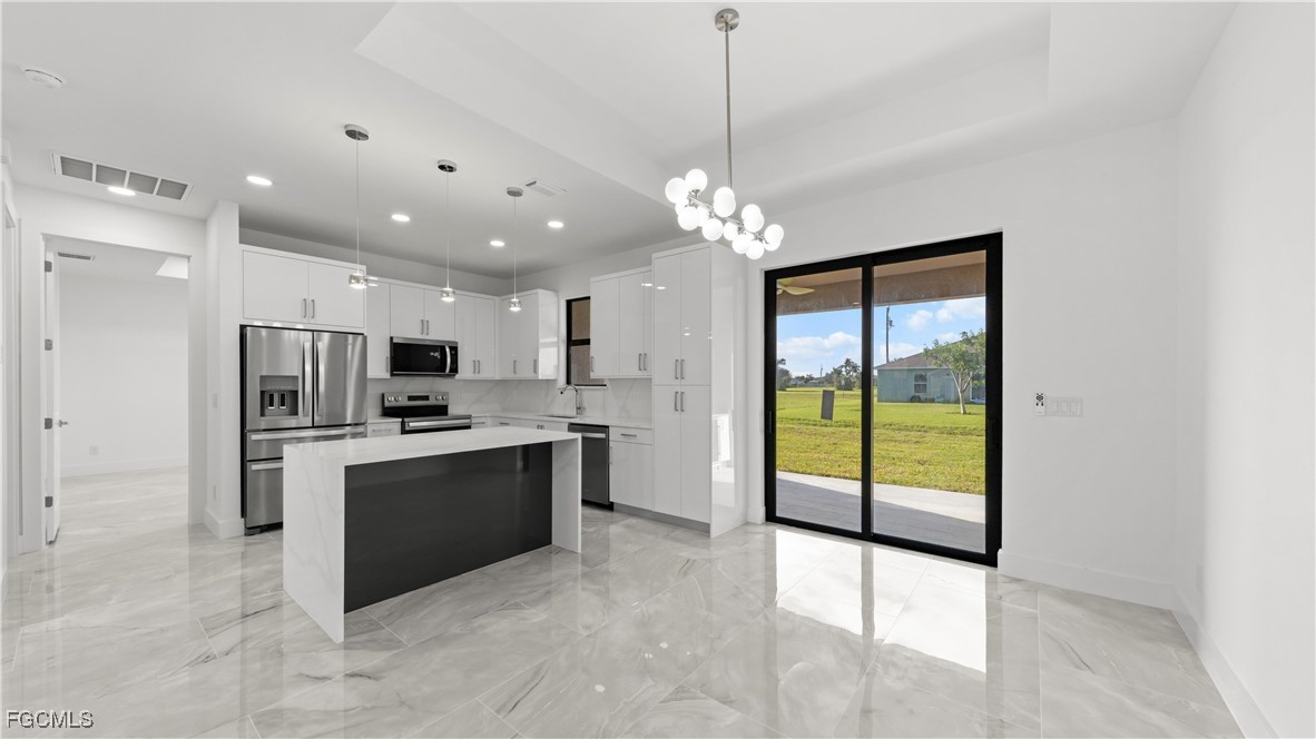 From the moment you step inside, you’ll be captivated by its open-concept design, soaring ceilings, and natural light that fills every corner. The porcelain tile floors and modern chandeliers set a refined tone throughout the home.Featuring two fully equipped gourmet kitchens, this property is perfect for those who enjoy entertaining or value versatility for guests and family. Every detail reflects quality — from the custom cabinetry and stainless-steel appliances to the spacious master suite with a spa-style bathroom.Nestled in one of Cape Coral’s most desirable and fast-growing areas, this home offers the perfect balance of luxury and convenience. Enjoy being close to top-rated restaurants, hotels, parks, and navigable canals, embracing the true Florida lifestyle?• Two full kitchens with premium finishes and 2 1/2 bathroom.?? Live the modern Cape Coral lifestyle — where elegance meets innovation