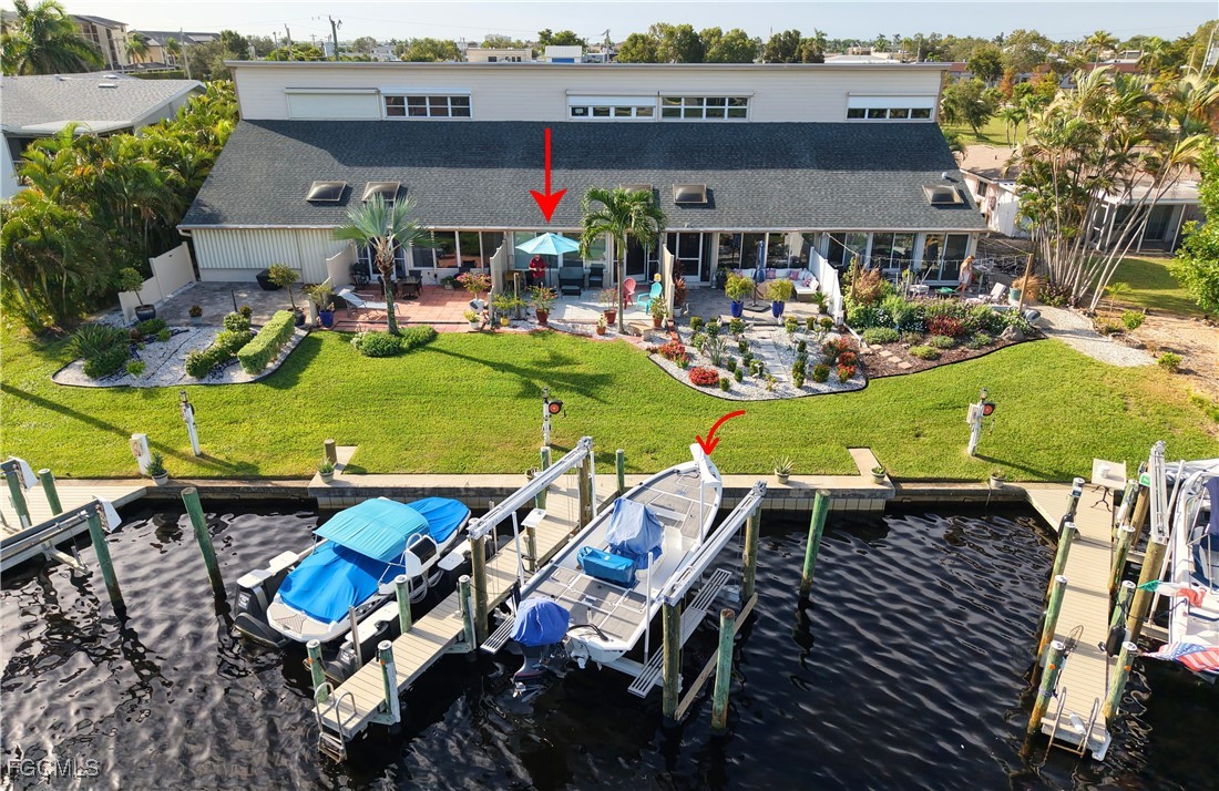 Boater’s dream in Downtown Cape Coral! This 2-bedroom, 2-bath, 2-story townhouse (1,251 sq. ft.) offers direct deep-water sailboat Gulf access with a boat slip, brand-new 10,000 lb boat lift, and a rare 2-car garage. Split floor plan with one bedroom and bath downstairs. Enjoy a private backyard overlooking your boat—no bridges to the Gulf and marina access just down the canal. Upgraded kitchen with granite counters, gray shaker cabinets, and custom backsplash. Soaring 2-story living room with water views, washer/dryer off kitchen, electric hurricane shutters with remote, Bahama shutters, new roof, new Trex dock with water & electric, and reinforced seawall. Walk to restaurants, festivals, and shopping. No assessments and strong association with reserves. Enjoy boating, fishing, and sunsets right from your patio!