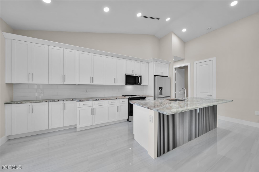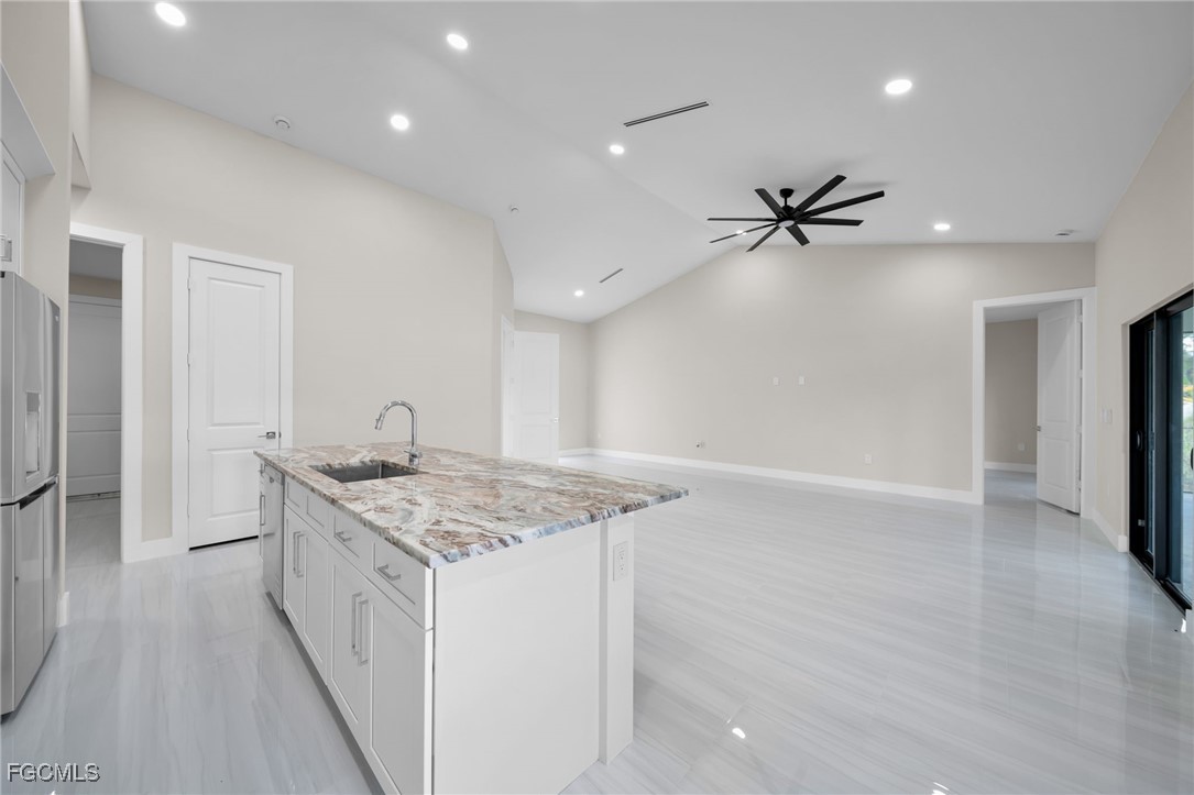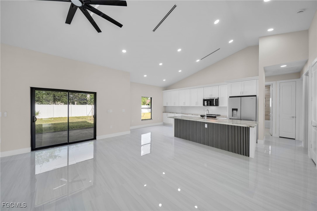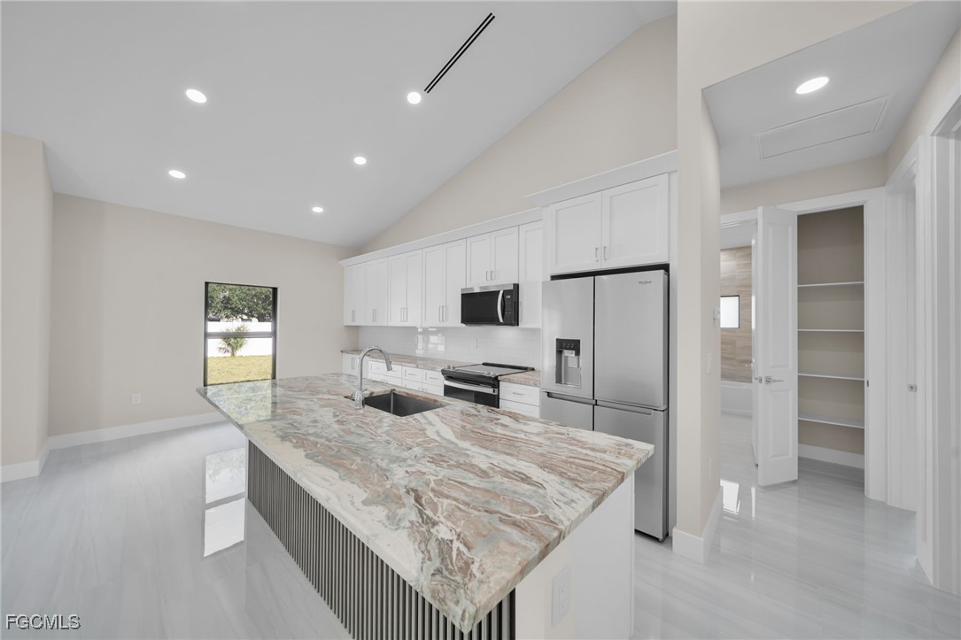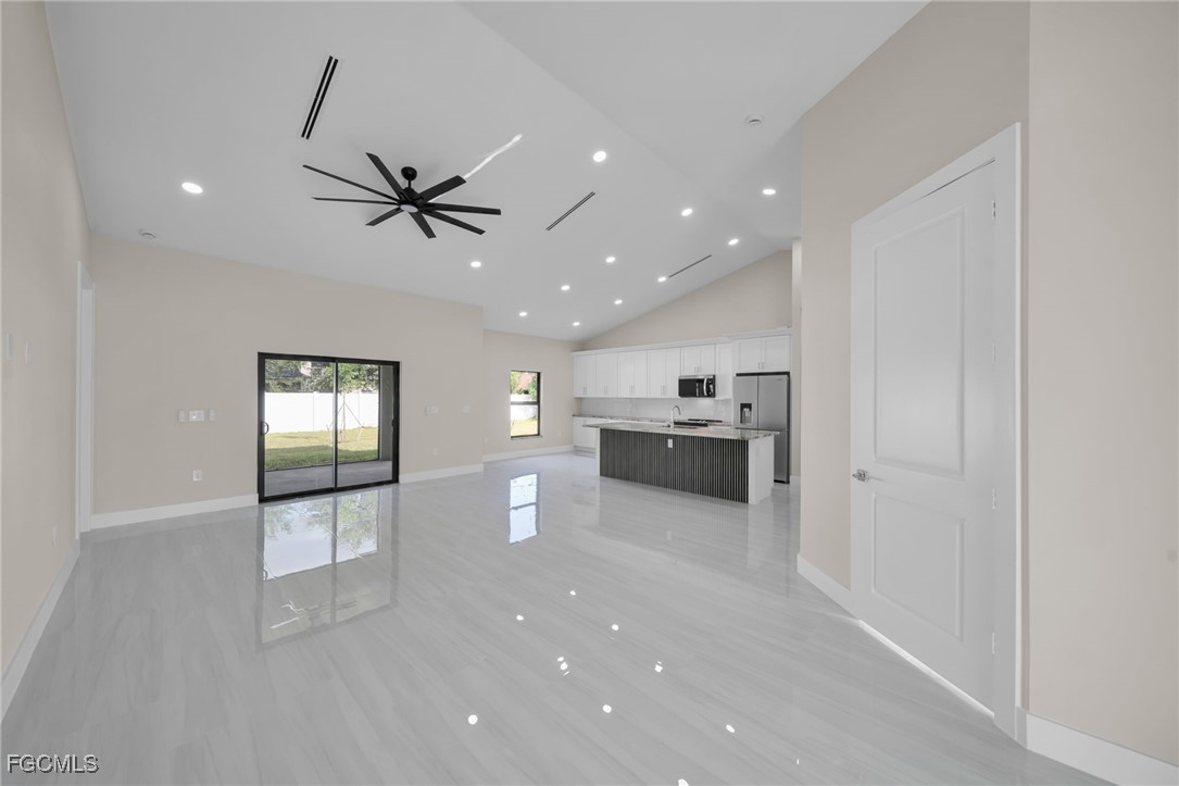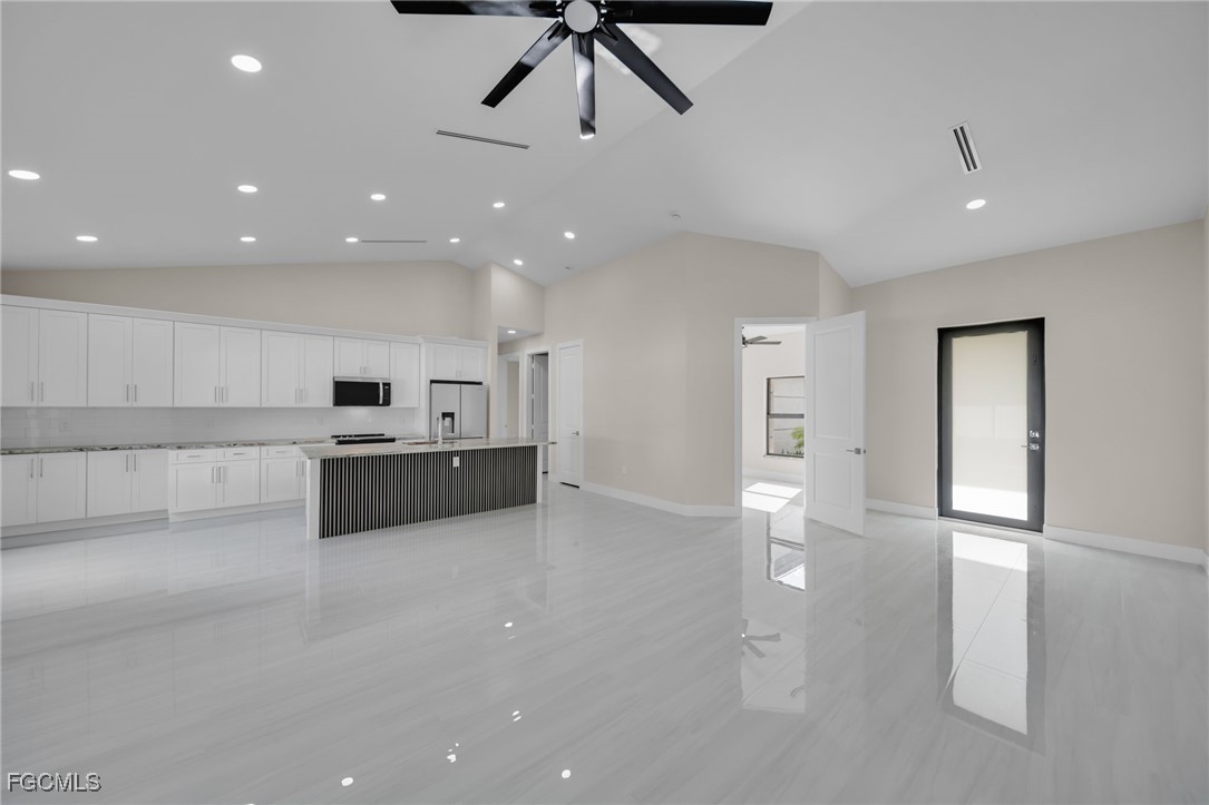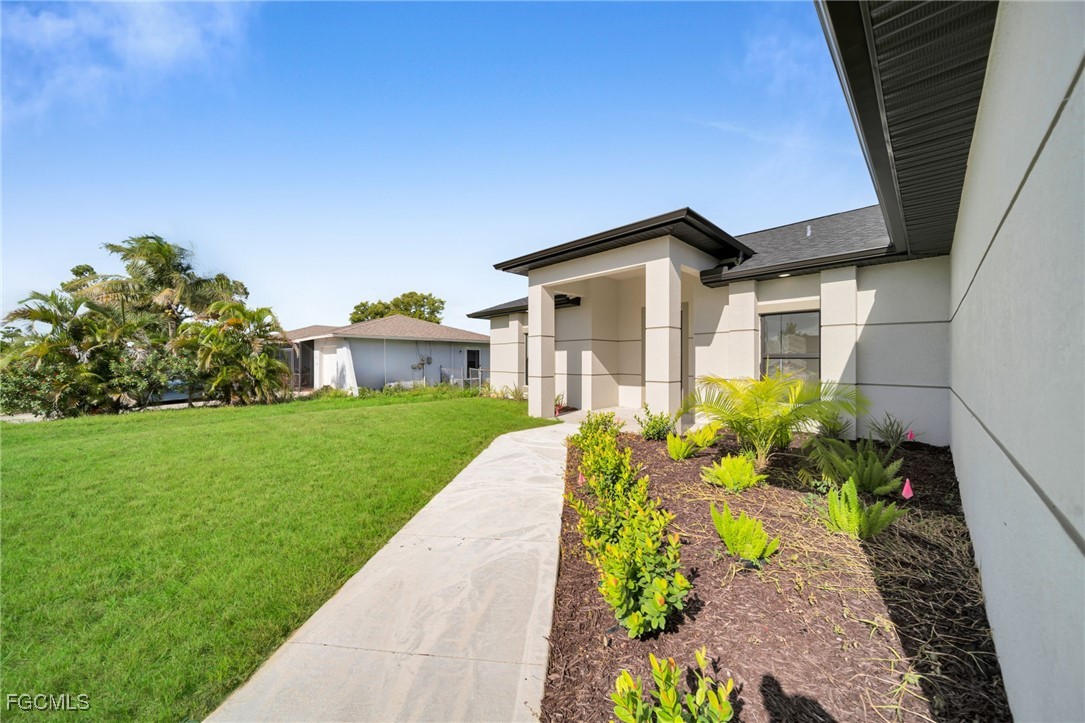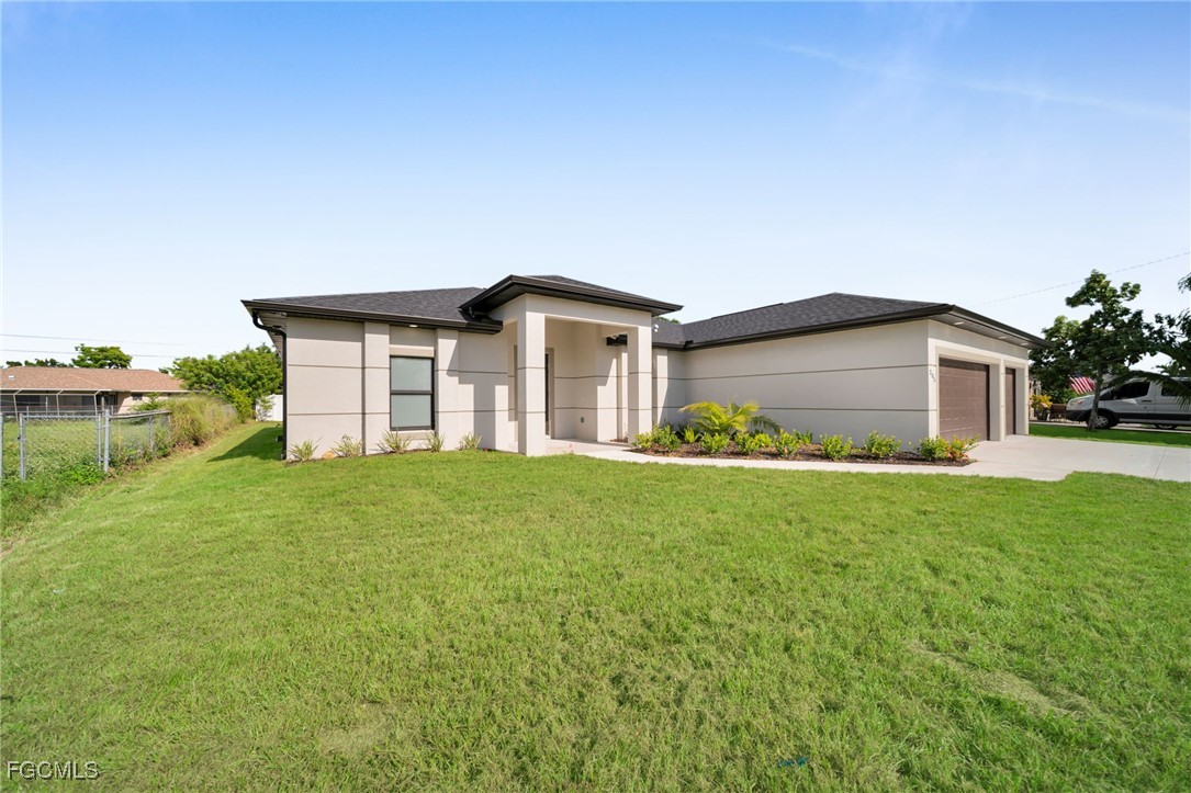 Location, Location, Location!! Welcome to effortless Florida living! This exquisite, brand-new construction home offers the perfect blend of modern luxury and unbeatable convenience in Cape Coral. Featuring 4 bedrooms and 2 full baths, this thoughtfully designed home has everything you need. The huge 3-car garage provides ample storage, and the impact windows and doors offer superior protection. HUGE SAVINGS! All Assessments are PAID,You simply can't beat this location—situated extremely close to NE Pine Island Rd and Cultural Park Blvd, you'll enjoy quick access to every amenity, restaurant, and shop the area has to offer.you'll find soaring vaulted ceilings, 8' interior doors, and stunning 24" x 48" tile flooring throughout. The kitchen and living spaces are designed with an abundance of cabinetry, offering both style and functionality. Built with hurricane-impact windows for added security and peace of mind, the home also includes a paver driveway, a generous 3-car garage, and is connected to city water and sewer with all assessments fully paid. This is your chance to own a luxury home in one of the most convenient and desirable areas in town.