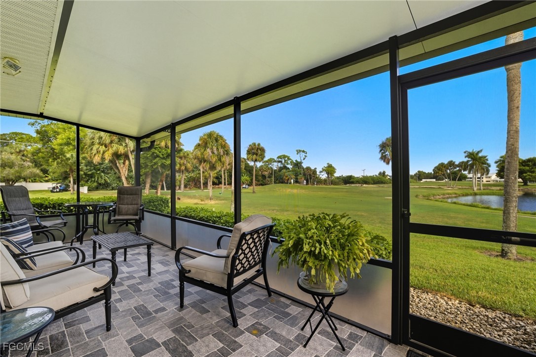 The spacious, absolutely gorgeous, open kitchen is a true highlight, featuring custom countertops and cabinetry, as well as stainless-steel appliances. Tile flooring flows throughout the home, enhancing the clean, modern feel. Relax or entertain on the screened lanai overlooking the golf course, where you can enjoy tranquil views year-round.