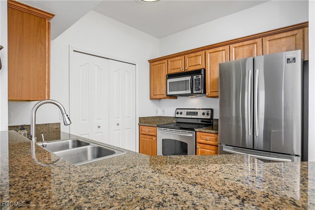 Welcome to Positano Place, where LOCATION truly matters! This stunning and immaculate two-bedroom, two-bathroom condo offers an affordable opportunity to live or rent in the highly coveted 34105 zip code, known for its A+ rated schools. Ideally situated on the 3rd floor, this unit provides the perfect balance of privacy and convenience, with easy access via stairs or a common elevator. Enjoy the short walk to the resort-style clubhouse, where you can indulge in a warm-heated swimming pool and spa, clubrooms, fitness center, and internet access. For added convenience, there’s an option to purchase a deeded garage—just ask for details. The interior boasts a bright and open concept living and dining area, complemented by a beautifully appointed kitchen featuring granite countertops, stainless steel appliances, a raised bar height counter, and a cozy eat-in dining nook. The main living areas are tiled, while the bedrooms offer plush carpeting. A private terrace provides the perfect spot to sip your morning coffee and take in the serene surroundings. Additional features include a split bedroom layout and a convenient in-home laundry room with a concealed washer/dryer area. Living in Positano Place means being just a short 10-minute ride to the pristine white sandy beaches and the vibrant shopping and dining scenes of 5th Avenue and Mercato. The area offers an array of conveniences, including nearby Starbucks, fitness centers, Pilates studios, restaurants, ice cream shops, a kids’ medical center, and more. Embrace the Naples lifestyle in this prime location and enjoy everything the 34105 zip code has to offer!