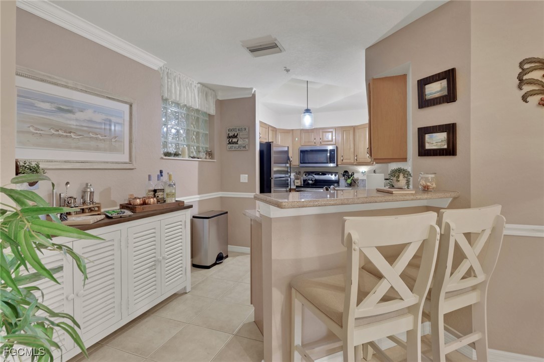 Welcome to your slice of paradise! This beautifully maintained 2-bedroom, 2-bathroom ground-floor condo offers the perfect blend of comfort, convenience, and coastal charm. Nestled just steps from the sparkling community pool, this home invites you to relax and unwind in style. Home has loads of upgrades, tile throughout, upgraded solid wood kitchen cabinets,,upscale appliances, breakfast bar. Volume ceilings, walk in closets.