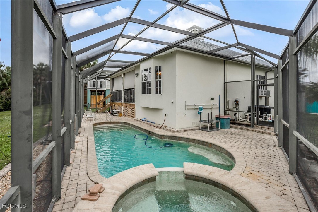 Extremely rare GULF ACCESS POOL home in Waterway Bay! Come discover one of the only two properties in Waterway Bay with a pool and spa. Inside you'll find vaulted ceilings, with wood and tile flooring. NO CARPET! High elevation as no water intrusion in the living area during Hurricane Ian, Milton, and Helene. NEW ROOF in 2023! Screened in deck with shade blinds that takes you down to your private screened-in pool. Community boat ramp only for Island Park Woods residents on the ten-mile canal that leads right to the Gulf. Low monthly HOA fees only $155 month that includes lawn care. Freedom to park your boat in your own spacious driveway! Primary bedroom includes expanded walk-in closet, while the primary bathroom boasts dual vanities. Schedule your tour to see what your boater's paradise can look like. Easy to show, call today!