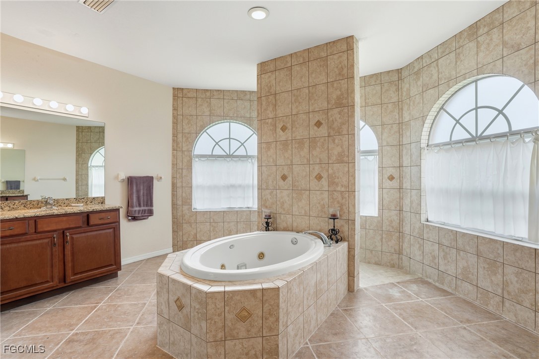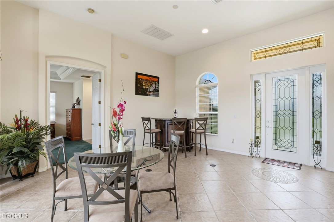 Priced BELOW Recent Appraisal! (Seller had home appraised prior to listing) If you love the curb appeal of this sprawling pool home, just wait until you see the inside. From the moment you step through the raised covered entry and leaded glass front door with sidelights, you’ll be greeted by an abundance of natural light and an immediate sense of space. This expansive 3-bedroom, 2-bath home offers a bright and open floor plan where every room feels oversized — from the generous bedrooms to the airy main living areas. The great room design features soaring ceilings and a seamless flow between the living, dining, and kitchen areas — ideal for both daily living and entertaining. The large kitchen offers ample cabinetry and counter space, with plenty of room to add an island if desired. Sliding glass doors from the kitchen, dining, and living areas open directly to the screened pool lanai, blurring the line between indoor and outdoor living and filling the home with sunlight. The guest bath conveniently doubles as a pool bath with direct access to the lanai, and an indoor laundry room adds to the home’s functionality. The master suite is a luxurious retreat all its own, featuring dual walk-in closets, private pool access, and a spa-inspired ensuite with dual vanities, a large garden soaking tub, and a carwash-style walk-through shower. Step outside to your private paradise — a stunning screened-in pavered lanai with a sparkling inground pool. The covered seating area provides a shady spot to relax, while the open paver deck offers plenty of room to lounge in the sun. The property backs to a freshwater canal where you can enjoy peaceful views or cast a line for a little fishing right from your backyard. Additional features include tile flooring throughout the main living areas, cozy carpeted bedrooms, and a new roof installed in 2023 for peace of mind. Newer AC and pool pump/timer too! This home truly embodies Florida living — spacious, bright, and designed for both comfort and connection to the outdoors.