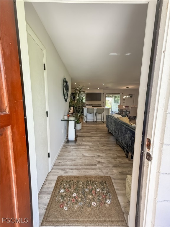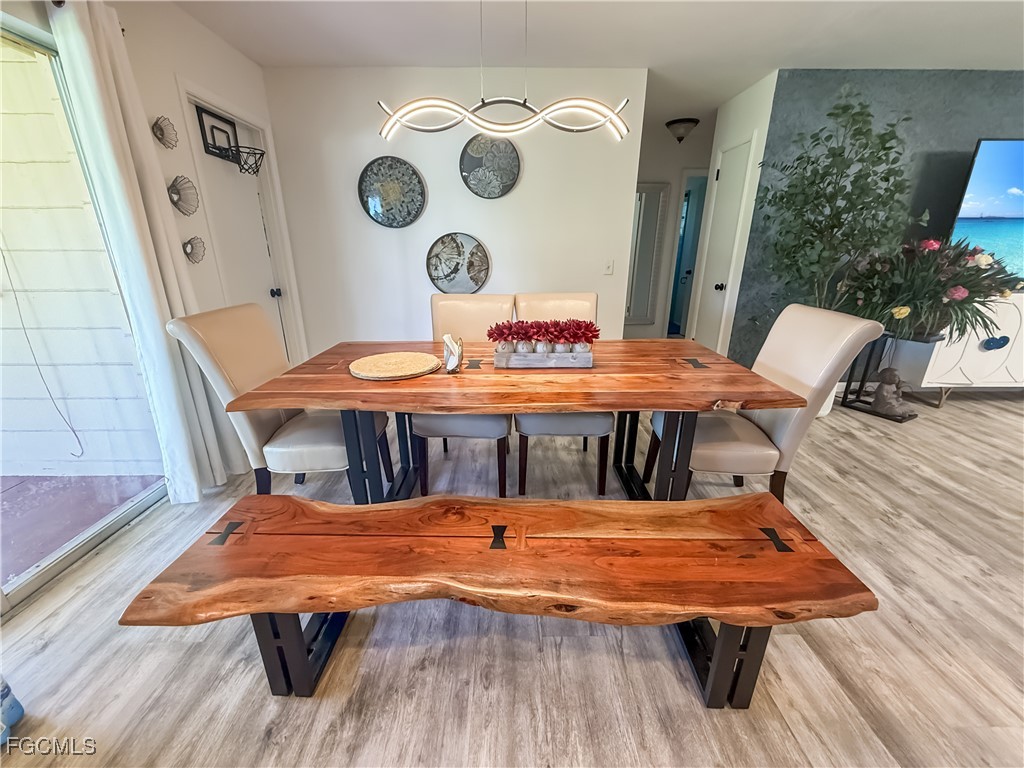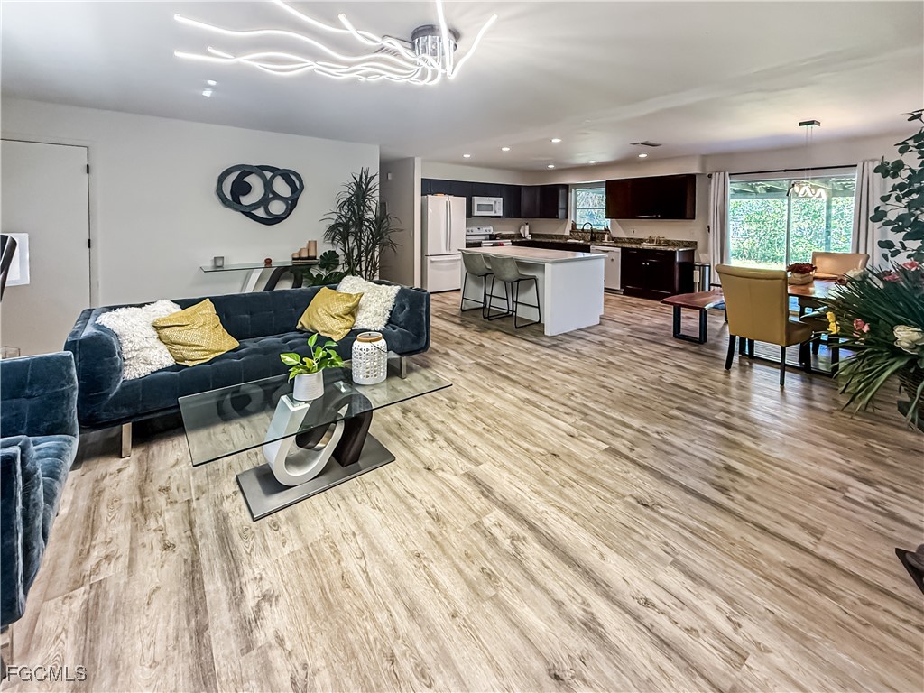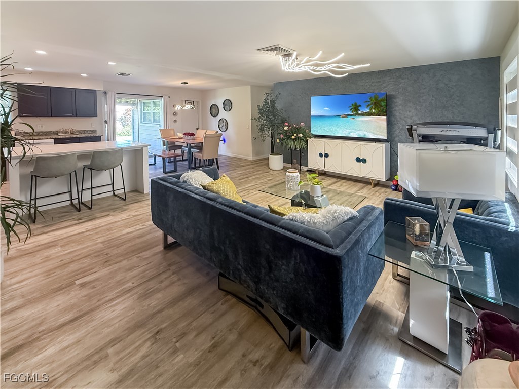 Brand-new 2025 roof! This beautifully updated 4-bedroom, 2-bath single-family home blends modern comfort with classic Florida charm. Featuring solid CBS construction, fresh exterior paint, and stylish wood flooring throughout. The open-concept layout offers a spacious living and dining area filled with natural light, complemented by a contemporary kitchen with granite countertops, stainless steel appliances, and a large island — perfect for entertaining. The bedrooms are generously sized with updated lighting and neutral tones for a serene atmosphere. Bathrooms feature granite vanities and modern fixtures. Enjoy a fully fenced backyard with lush greenery and plenty of outdoor space. Centrally located in Fort Myers, just minutes to US-41, shopping, dining, and beaches. No HOA or restrictions — move-in ready and ideal for both homeowners and investors! Don’t wait — schedule your private showing today!