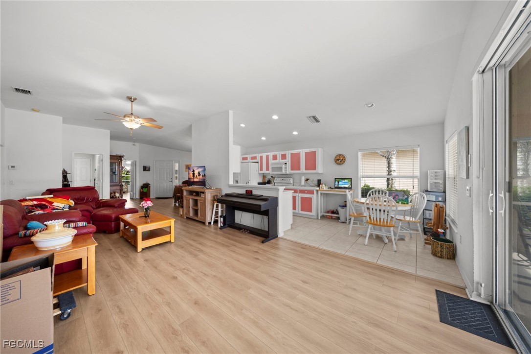 Welcome to this beautiful 3-bedroom, 2-bathroom pool home with a spa, perfectly positioned on one of Sandoval’s most desirable wide lakefront lots. Built by Pulte and lovingly maintained by its original owner, this 1,726 SF home offers a bright, open-concept floor plan with cathedral ceilings, abundant natural light, and breathtaking lake views where the water opens wide and the fountain sparkles in the sun. The updated kitchen features bar-top seating and a waterfront dining area, seamlessly connecting to the spacious living room with sliding glass doors that lead to your private lanai. The master suite overlooks the pool and lake, creating the perfect retreat to wake up to water views every morning. The master bathroom offers dual vanities, a makeup counter, and a walk-in shower. Two additional bedrooms provide plenty of space for family, guests, or a home office. Step outside to your own private Florida oasis with a screened-in pool and spa, where you can relax, entertain, and enjoy some of the best waterfront views available in Cape Coral at this price point. With a brand-new A/C installed in 2024, this home is move-in ready and built for both comfort and convenience. Living in Sandoval means more than just owning a home, it’s about enjoying a vibrant, gated community with resort-style amenities. Residents have access to a lagoon-style pool with a water slide, a modern fitness center, tennis and pickleball courts, basketball, bocce, sand volleyball, and a spacious clubhouse for community events.