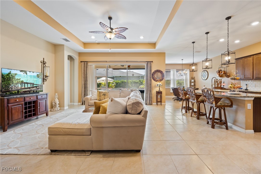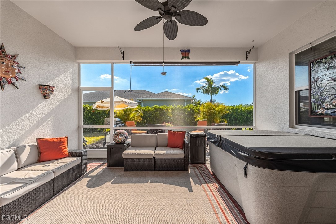 A must see beautiful home in the gated community of Entrada in Cape Coral. With low HOA fee, No CDD, low taxes and insurance and all the resort style amenities possible to live the sought after Florida lifestyle. This Impressive and stunning Wheaton floor plan home is perfectly positioned on a sweeping corner lot. Over 2,500 square feet of well designed living space featuring 3 bedrooms plus a den, 3.5 bathrooms, and a 3 car garage. Surrounded by lush, custom Florida landscaping, the oversized backyard provides plenty of room to add a pool and create your own private paradise. The grand foyer welcomes you into a bright and airy great room that seamlessly connects the living, dining, and kitchen areas. The huge kitchen is a showstopper with a massive center island, granite countertops, stainless steel appliances, stylish backsplash, soft close cabinetry, and an oversized, walk-in pantry. Each bedroom offers privacy with its own bath, while the primary suite is a true retreat featuring a spa-like walk-in shower, dual vanities, and 2 walk-in closets. Outside provides a screened lanai and an extended paver patio, the perfect place for morning coffee and sunset gatherings in the tranquility of your private backyard. Additional highlights in this home include tile flooring throughout the main living areas, carpet in the bedrooms, new lighting & ceiling fans, a large laundry room with sink, Hurricane shutters for peace of mind and Smart home technology that control locks, garage, and lighting from your phone! Enjoy Entrada’s resort-style amenities, including a massive sparkling pool, clubhouse, tennis & pickleball courts, play area, and more, all in a golf cart–friendly community. This home checks every box for space, style, and value. Schedule your private tour today and discover why Entrada is one of Cape Coral’s premier places to live!