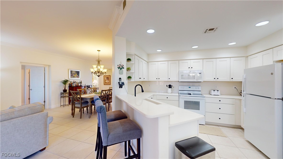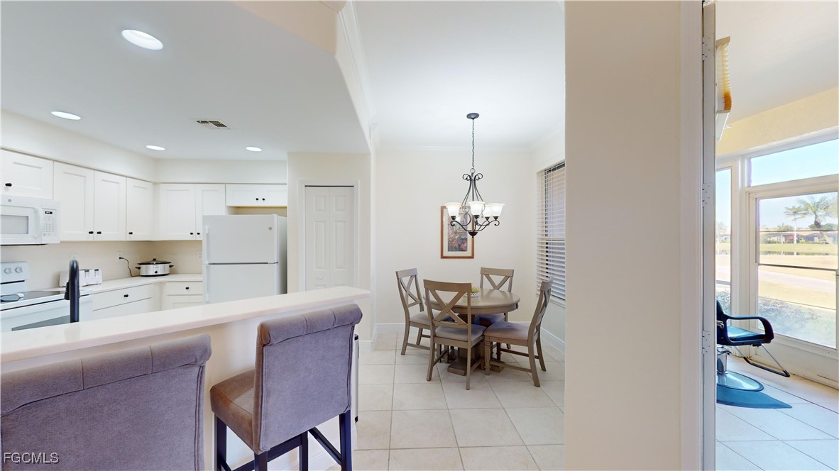 This fully furnished (with exceptions) and beautifully maintained first floor 3 bedroom 2 bath "Nottingham" carriage home is located just minutes from Sanibel and Ft Myers Beach in the Lexington Country Club "Golf Village." You'll find 20" porcelain tiles throughout the this carriage home with new furniture, lighting, cabinets, and appliances, including the washer and dryer. The AC handler & condenser were new in June 2020; water heater new in 2019. Hurricane panels on many windows. The large lanai allows you to look out to a beautiful view of water on hole 12. A new Club Car golf cart is being sold separately. The Lexington community offers all the features of an active lifestyle with the 18-hole championship golf course, 12 lighted tennis courts with designated pickleball courts, 6 heated swimming pools, a fitness center with onsite group classes, lending library, tiki bar/restaurant, beach area, clubhouse restaurant, 3 bocce courts; onsite coffee shop. You will be wowed by the beautifully maintained grounds and appreciate the onsite 24 hr security. The community also offers special events like Music Monday at the Island Club, Bingo at the Clubhouse and an abundance of clubs to join depending on your interests. Offered furnished so you can move right in and start enjoying the fabulous Lexington lifestyle! Just minutes from the beaches, RSW Airport, shopping, dining, and hospitals. Don’t forget to look at the virtual tour--either play it or click to walk-through each room.