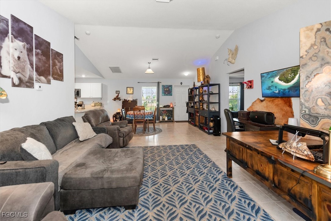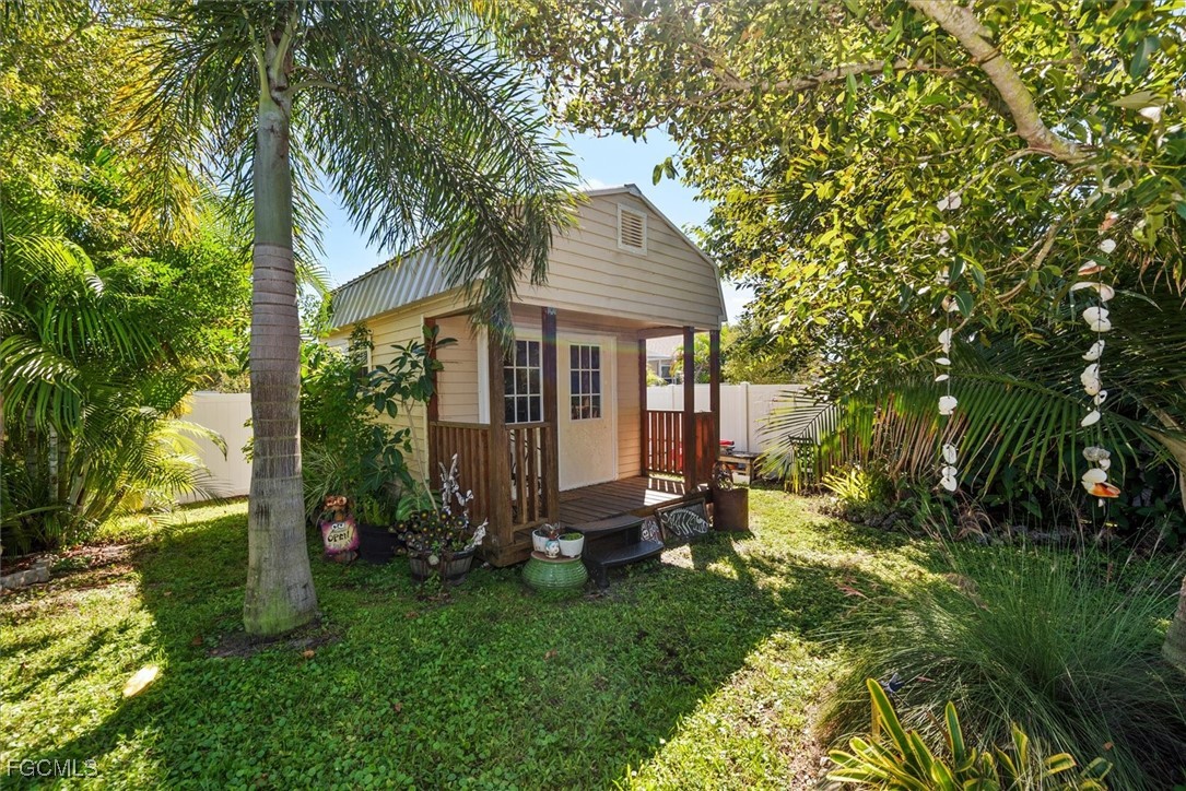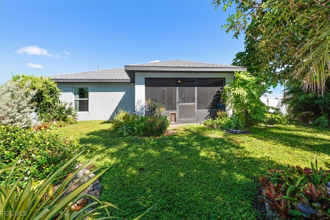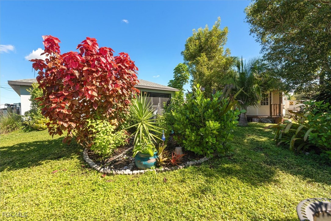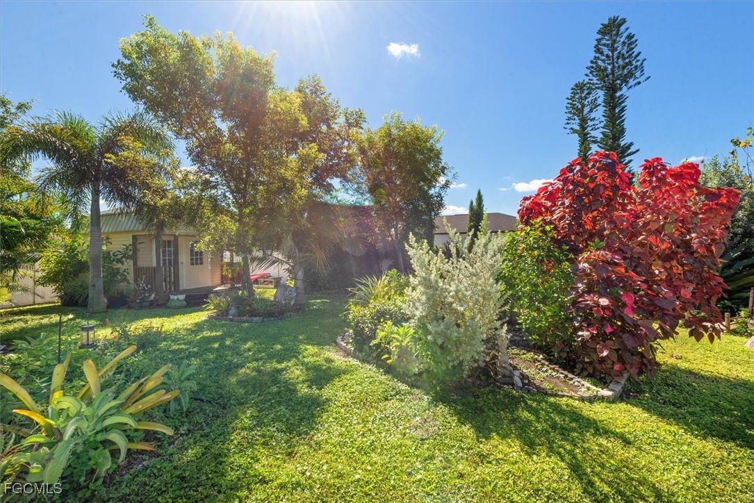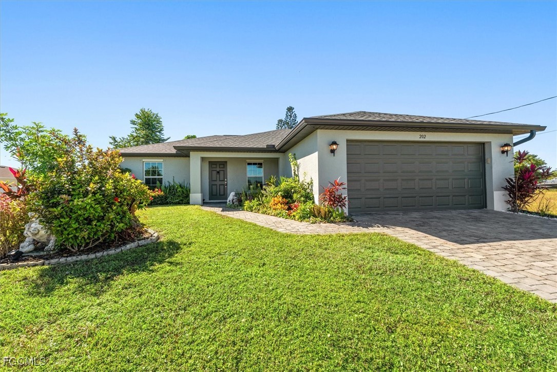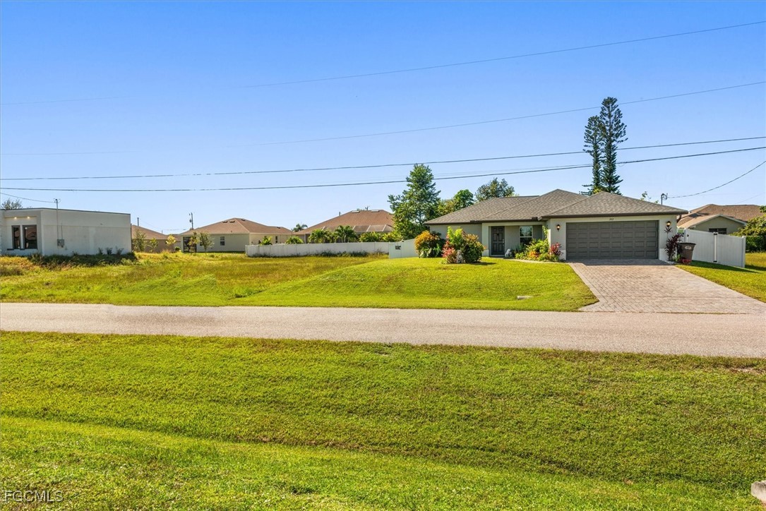 Almost half acre property now looking for a new owner... This Sanibel floorplan from Christopher Alan is a beautiful 3 bedroom, 2 bathroom home that sits on almost 1/2 acre in Cape Coral! NO Flood zone! Build a detached garage on the second lot, fence the whole thing in for a huge play area for your family or split it off and build another house. (The possibilities are endless) The open floor plan with cathedral ceilings and center island kitchen is perfect for entertaining. Spacious living room leads to large covered lanai so you can enjoy the SW Florida lifestyle! This backyard is a retreat! Owner currently has an artist studio in the shed in backyard- (electric & AC unit installed as well) Built in 2020, so big ticket items are newer, Moen plumbing fixtures, privacy fence, PGT Low E Insulated windows, water treatment system, upgraded paver driveway, 18" tile in kitchen and baths, walk in shower in master bathroom, large walk in closet as well. Schedule a showing today!