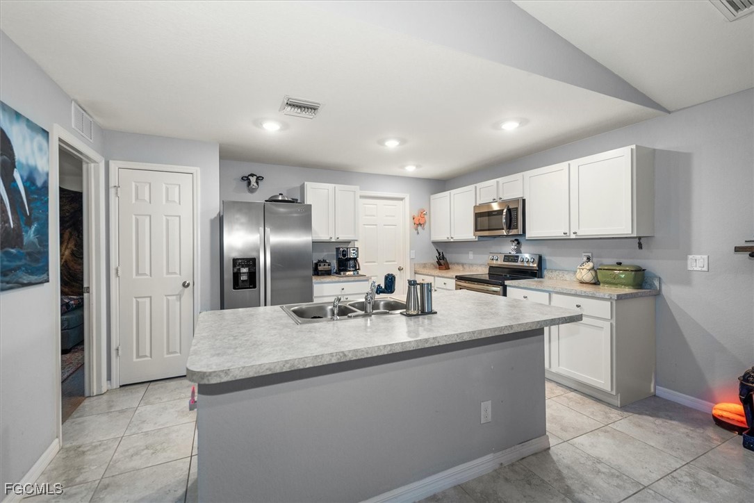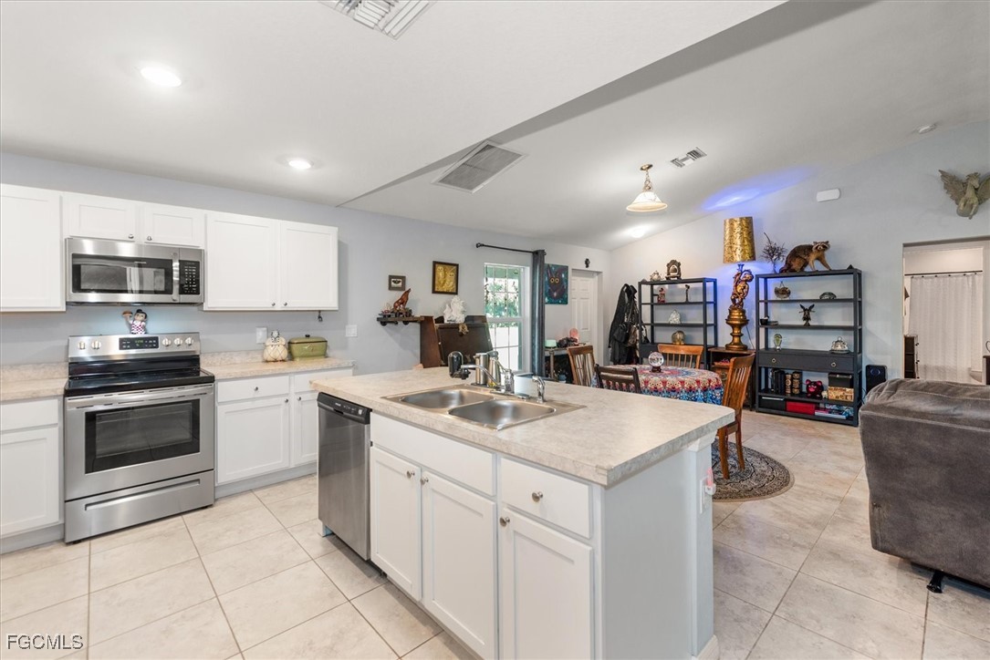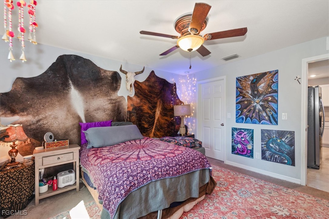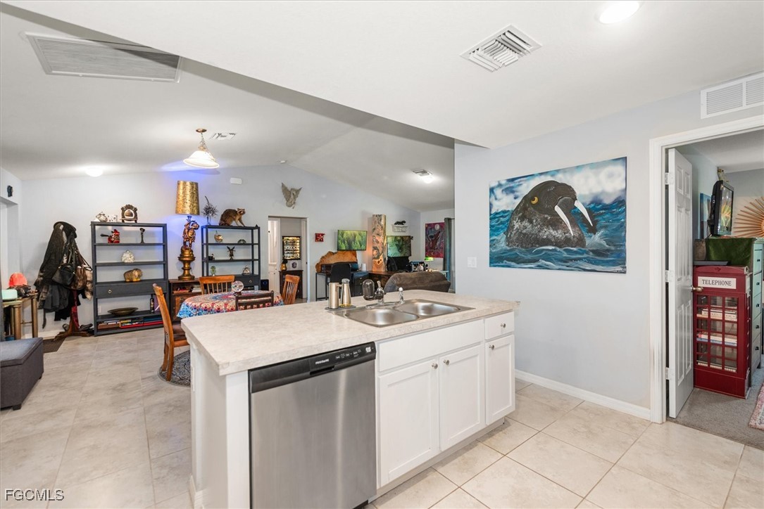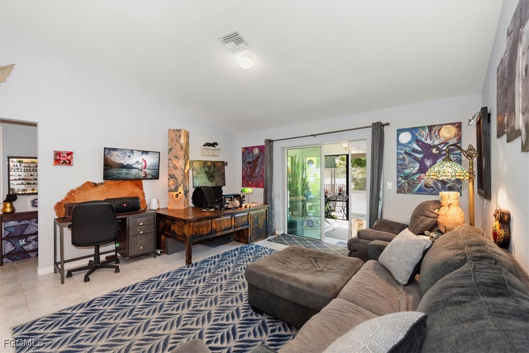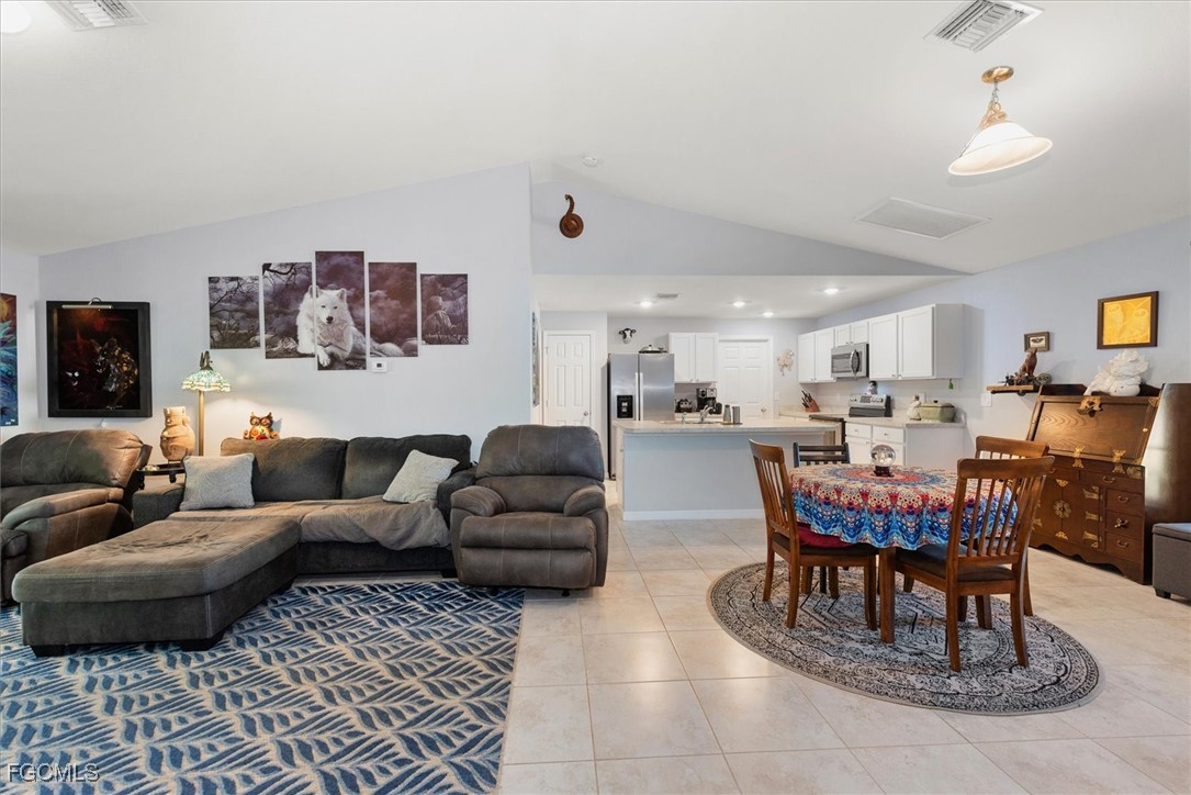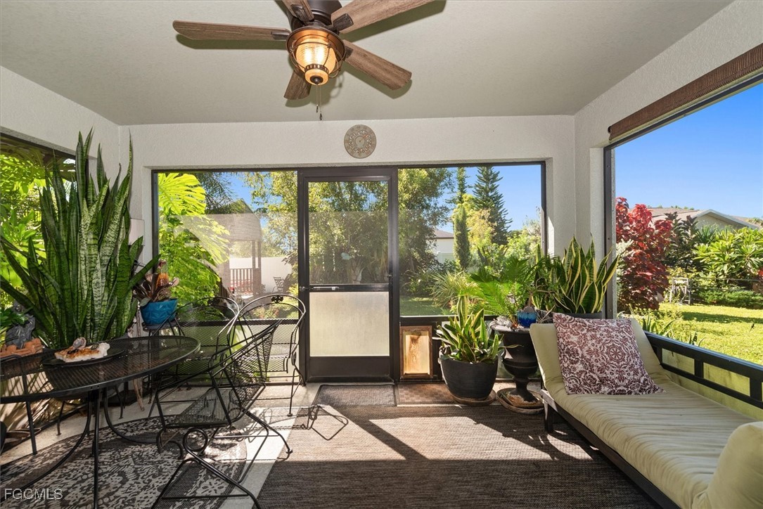 Almost half acre property now looking for a new owner... This Sanibel floorplan from Christopher Alan is a beautiful 3 bedroom, 2 bathroom home that sits on almost 1/2 acre in Cape Coral! NO Flood zone! Build a detached garage on the second lot, fence the whole thing in for a huge play area for your family or split it off and build another house. (The possibilities are endless) The open floor plan with cathedral ceilings and center island kitchen is perfect for entertaining. Spacious living room leads to large covered lanai so you can enjoy the SW Florida lifestyle! This backyard is a retreat! Owner currently has an artist studio in the shed in backyard- (electric & AC unit installed as well) Built in 2020, so big ticket items are newer, Moen plumbing fixtures, privacy fence, PGT Low E Insulated windows, water treatment system, upgraded paver driveway, 18" tile in kitchen and baths, walk in shower in master bathroom, large walk in closet as well. Schedule a showing today!