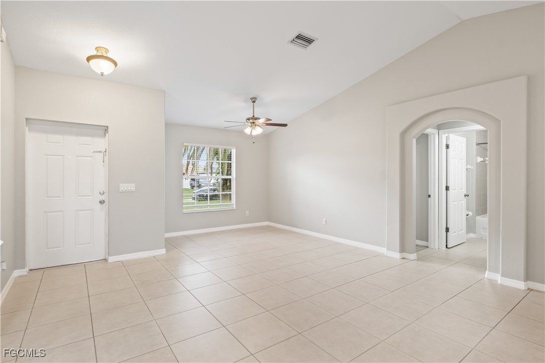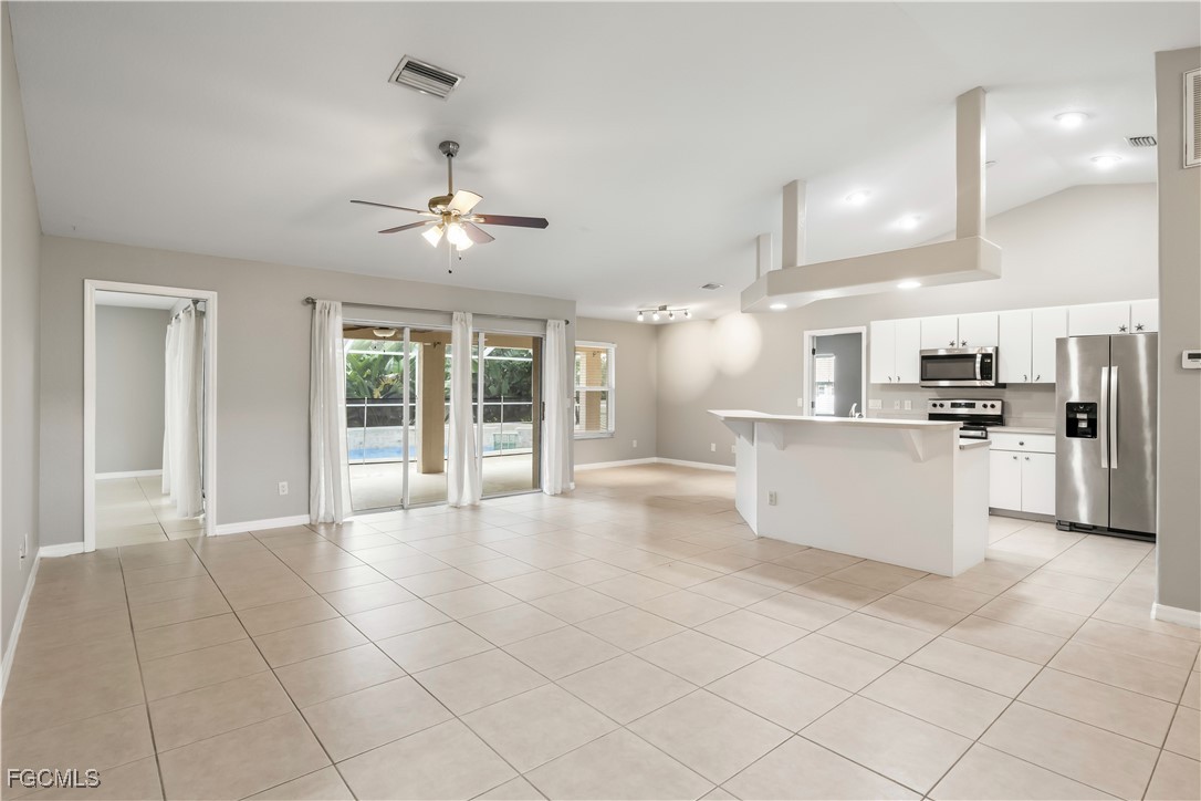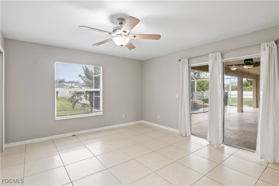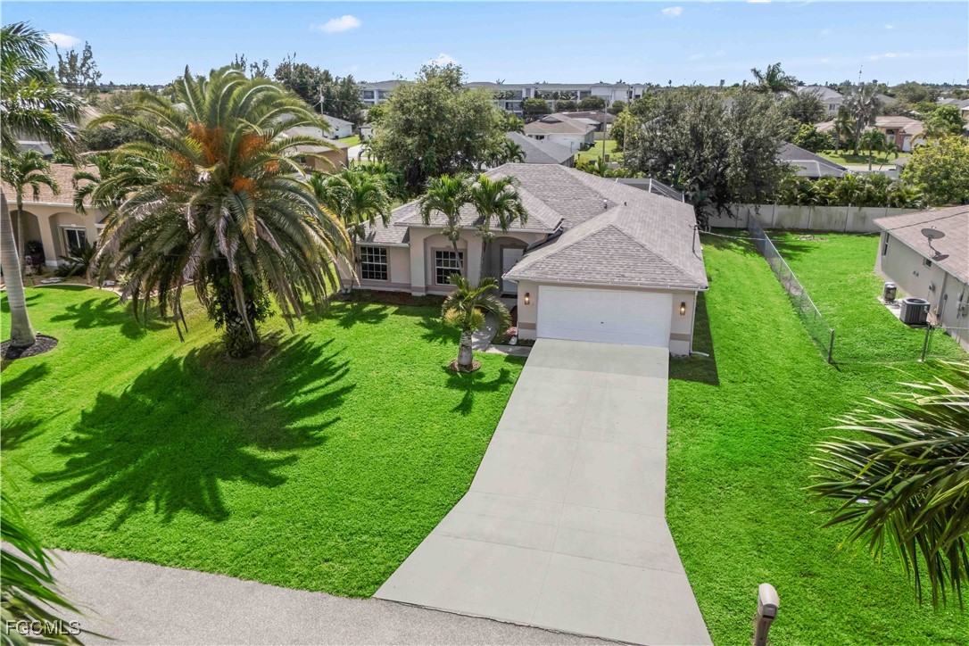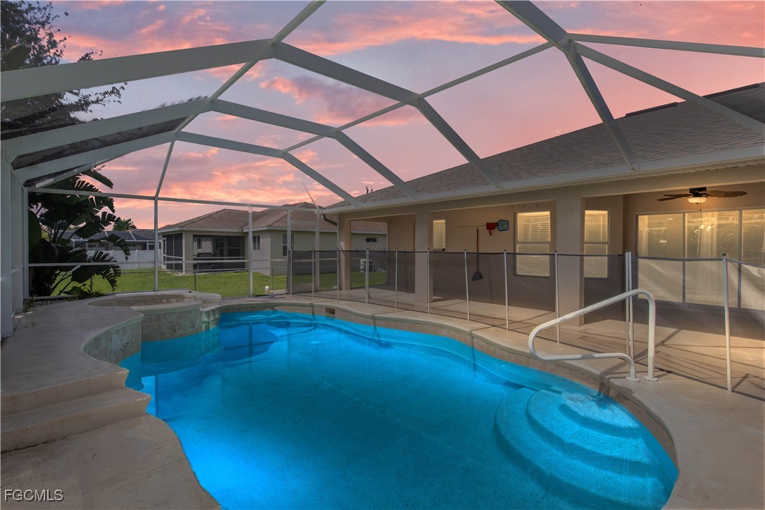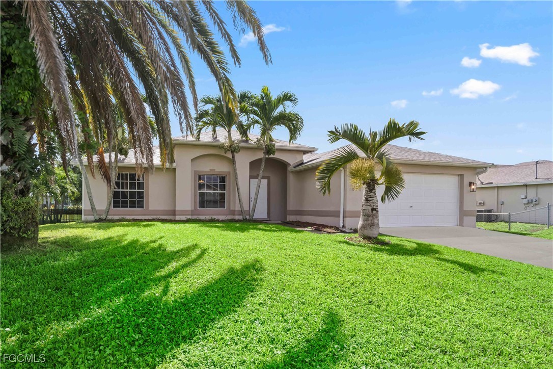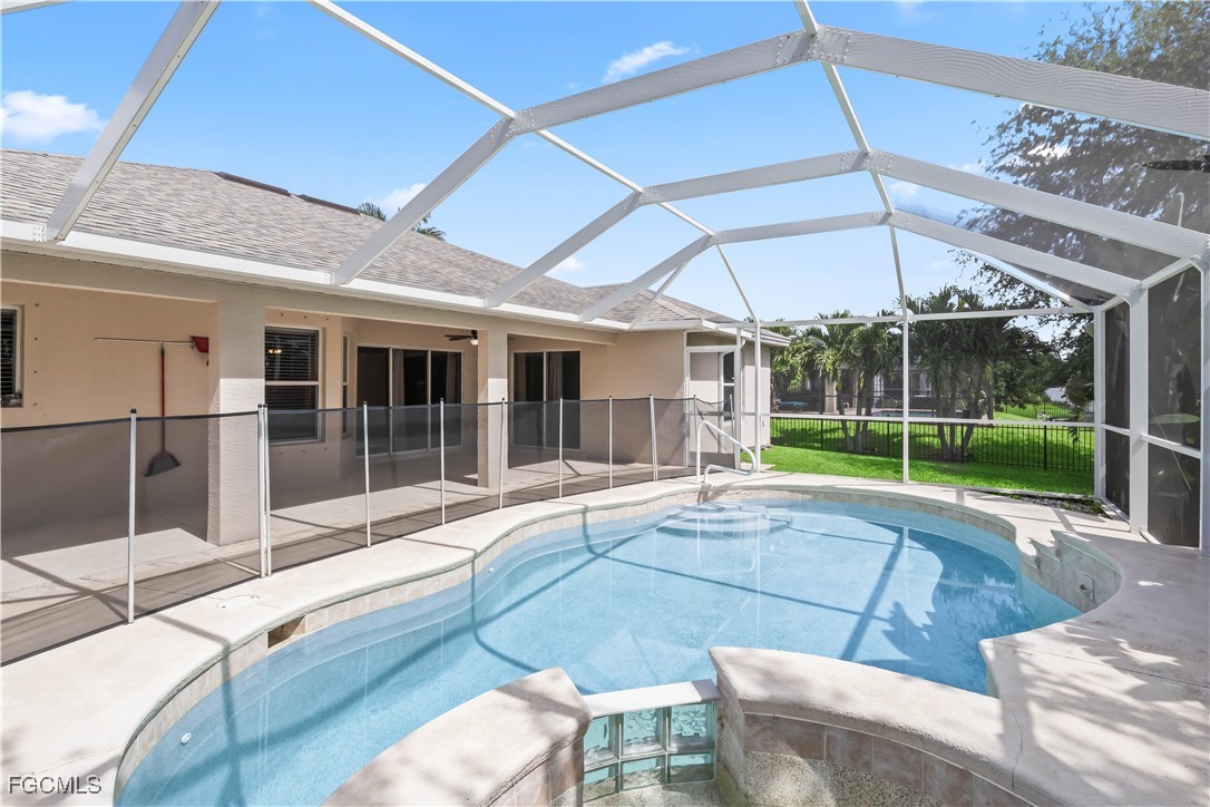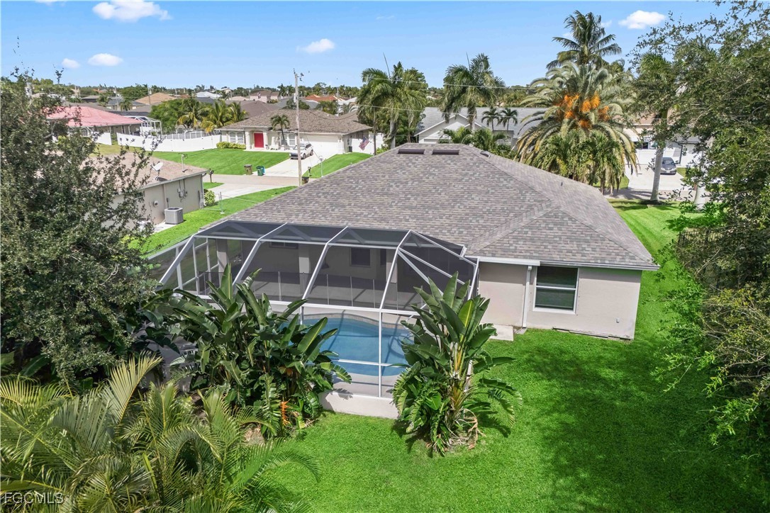 Welcome to your Florida paradise in beautiful Cape Coral! This stunning 4-bedroom, 2-bath pool home is the perfect mix of comfort, style, and Florida living. Step inside to a bright, open floor plan with soaring ceilings, neutral tones, and an abundance of natural light that makes every room feel warm and inviting. The spacious kitchen flows seamlessly into the living and dining areas—ideal for entertaining friends and family or enjoying cozy nights at home. The split-bedroom layout offers ultimate privacy for the primary suite, featuring a walk-in closet and a luxurious en-suite bath with dual sinks, a soaking tub, and a separate walk-in shower. Three additional bedrooms provide versatility for guests, a home office, or hobbies. Step outside to your private screened lanai and sparkling pool—perfect for soaking up the Florida sun, hosting weekend barbecues, or relaxing under the stars. Located in a highly desirable SW Cape Coral neighborhood near shopping, dining, top-rated schools, and parks, this home truly has it all. Move-in ready and waiting for its next owner—don’t miss your chance to experience the ultimate Florida lifestyle!