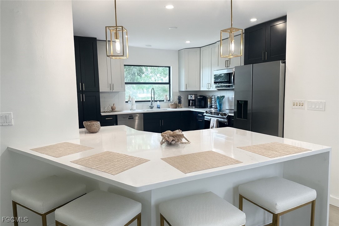 Impeccably Updated Lakeview Home with Modern Coastal Charm Welcome to this beautifully renovated home offering serene lake views, elegant finishes, and modern comforts throughout. Every detail has been thoughtfully designed to create a light, open, and inviting atmosphere that feels like home from the moment you walk in. Interior Features: Step into the spacious open-concept living area with new luxury plank flooring, neutral tones, and abundant natural light. The modern kitchen is a showstopper—featuring two-tone shaker cabinetry, quartz countertops, brass hardware, stainless steel appliances, and designer pendant lighting over a large breakfast bar perfect for casual dining or entertaining. The adjoining dining area provides a warm, intimate space for gatherings, while the living room opens to the enclosed lanai, blending indoor and outdoor living seamlessly. Both bedrooms are generously sized, each designed for comfort and relaxation. The primary suite features a stylish ensuite bath with a frameless glass shower, designer tile, and a contemporary vanity. The guest bathroom mirrors the same high-end aesthetic with modern lighting and a sleek soaking tub. Outdoor Living: Enjoy tranquil mornings or sunset evenings in the screened-in lanai overlooking lush greenery and flowering hedges for privacy. The backyard opens up to a pristine lake, framed by tropical landscaping and swaying palms—offering the perfect backdrop for peaceful living or entertaining friends and family. Additional Highlights: Modern fixtures and lighting throughout Energy-efficient windows and doors Attached garage and manicured landscaping Low-maintenance living in a quiet, desirable community Perfect as a year-round residence, seasonal retreat, or investment property, this home combines modern luxury with relaxed Florida living. Enjoy the best of comfort, style, and serenity — all just minutes from beaches, shopping, and dining. Flood insurance included in the HOA, as well as landscaping, gated security, community amenities, fresh interior paint every 10-12 years, as well as a new roof every 12-14 years. 3 miles to Fort Myers Beach, and 3 Miles to Sanibel Captiva causeway. 55+ HOA.